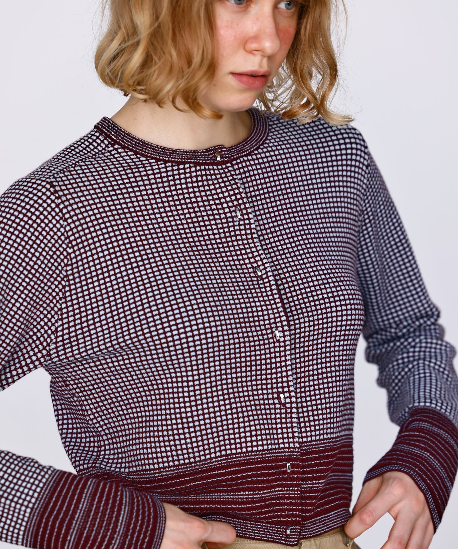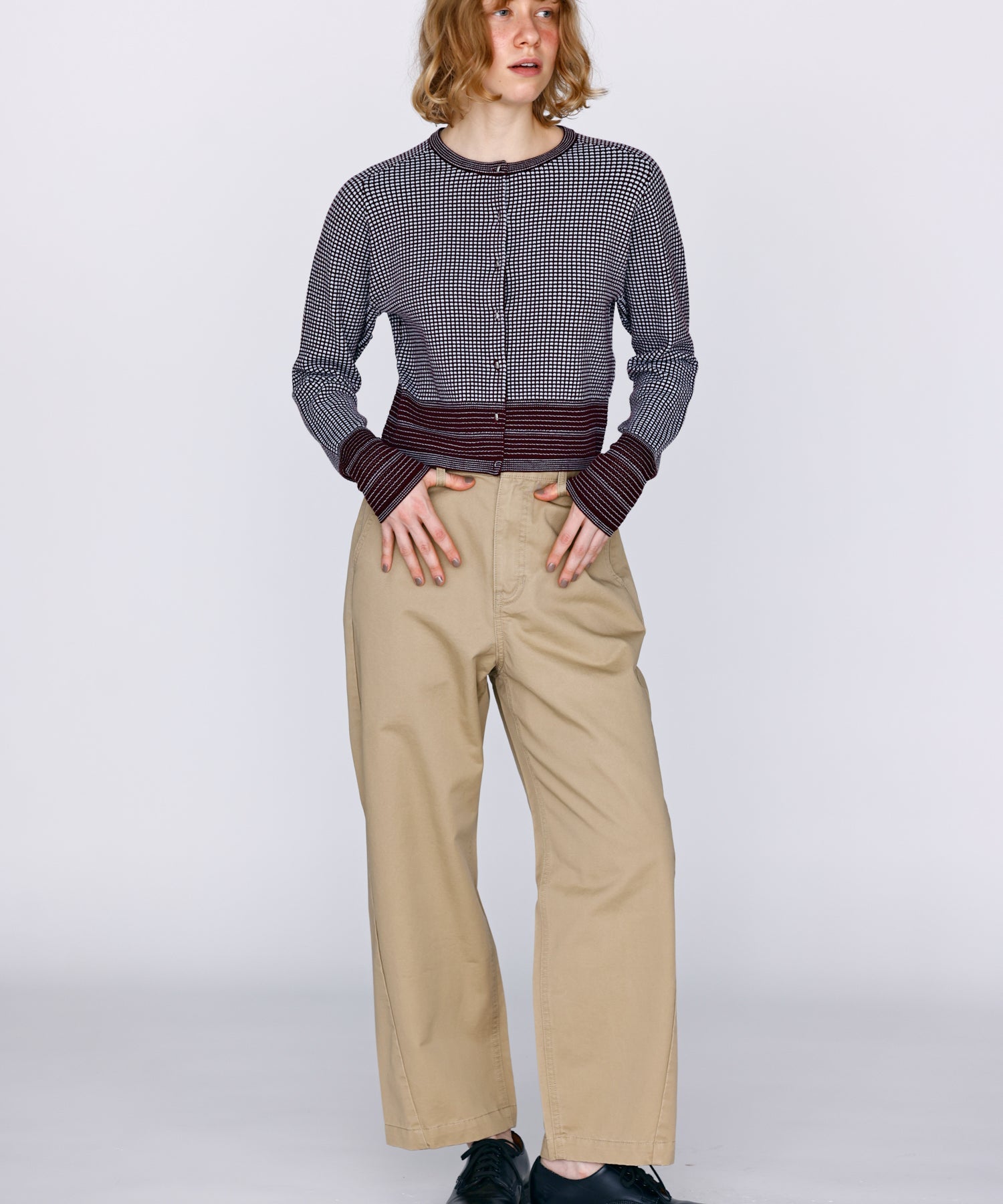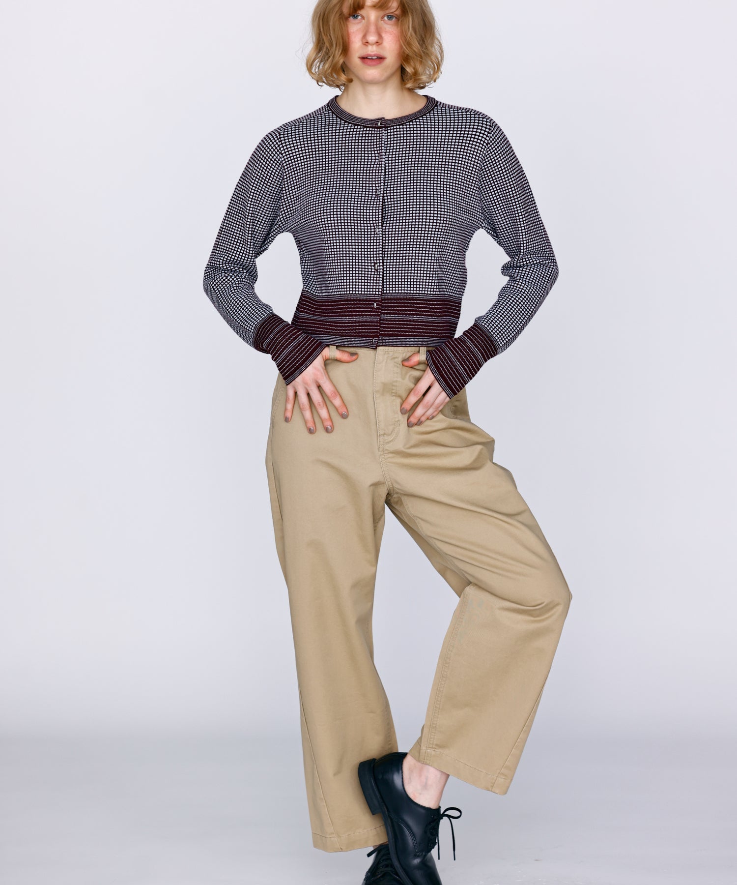 クラシカルな配色とコンパクトな丈感が魅力のショートカーディガン。