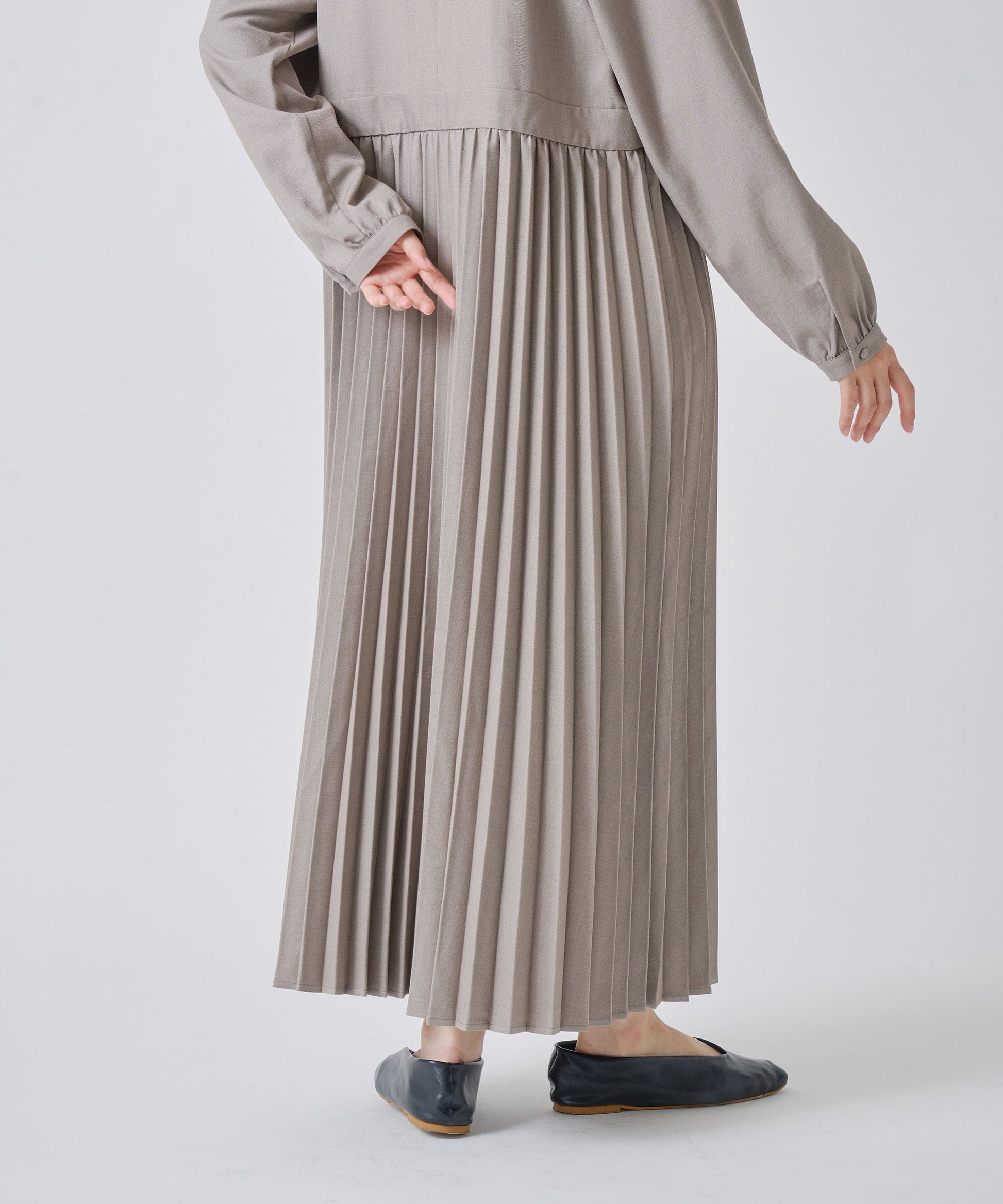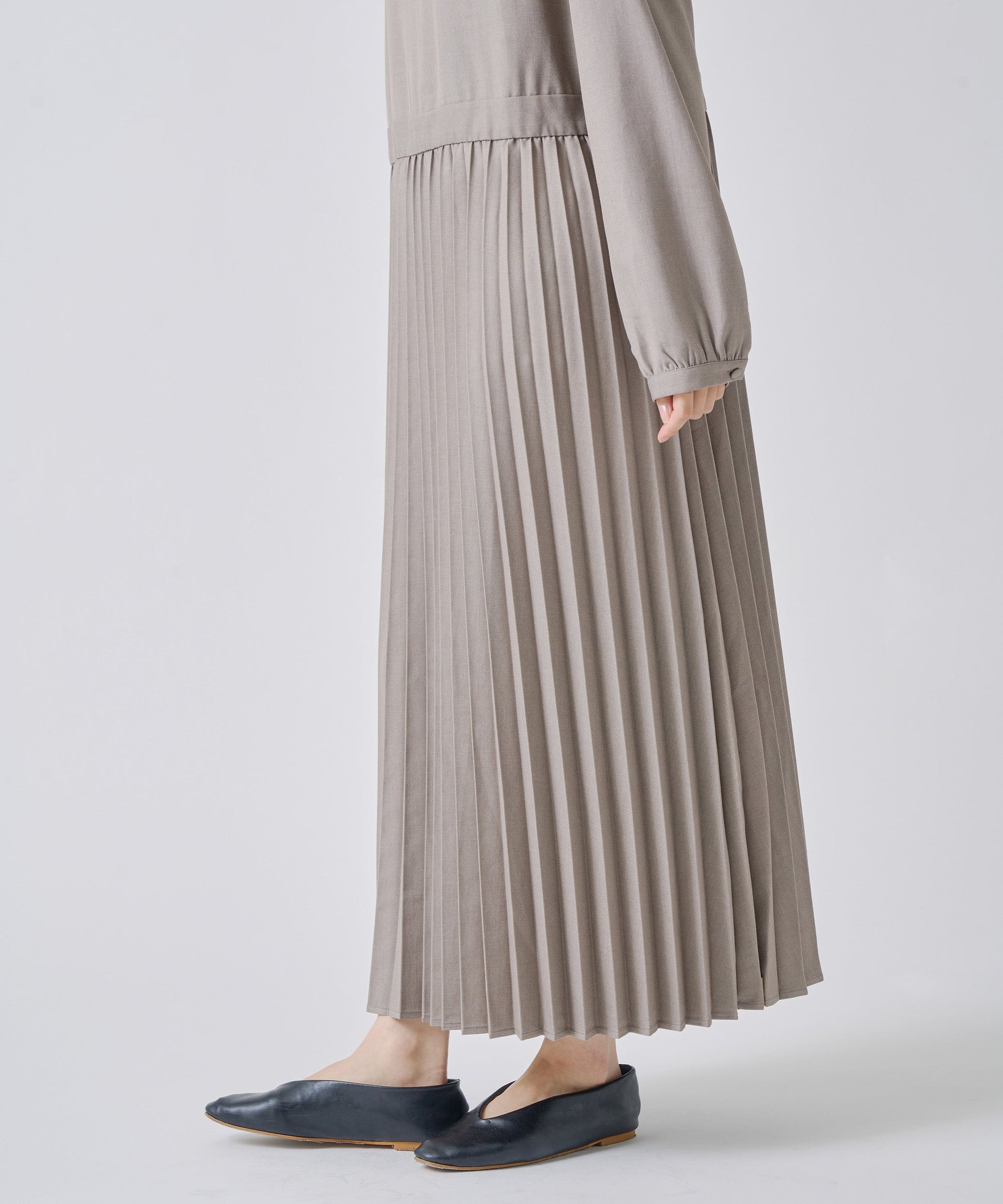 繊細なアコーディオンプリーツデザインを取り入れたワンピースです。