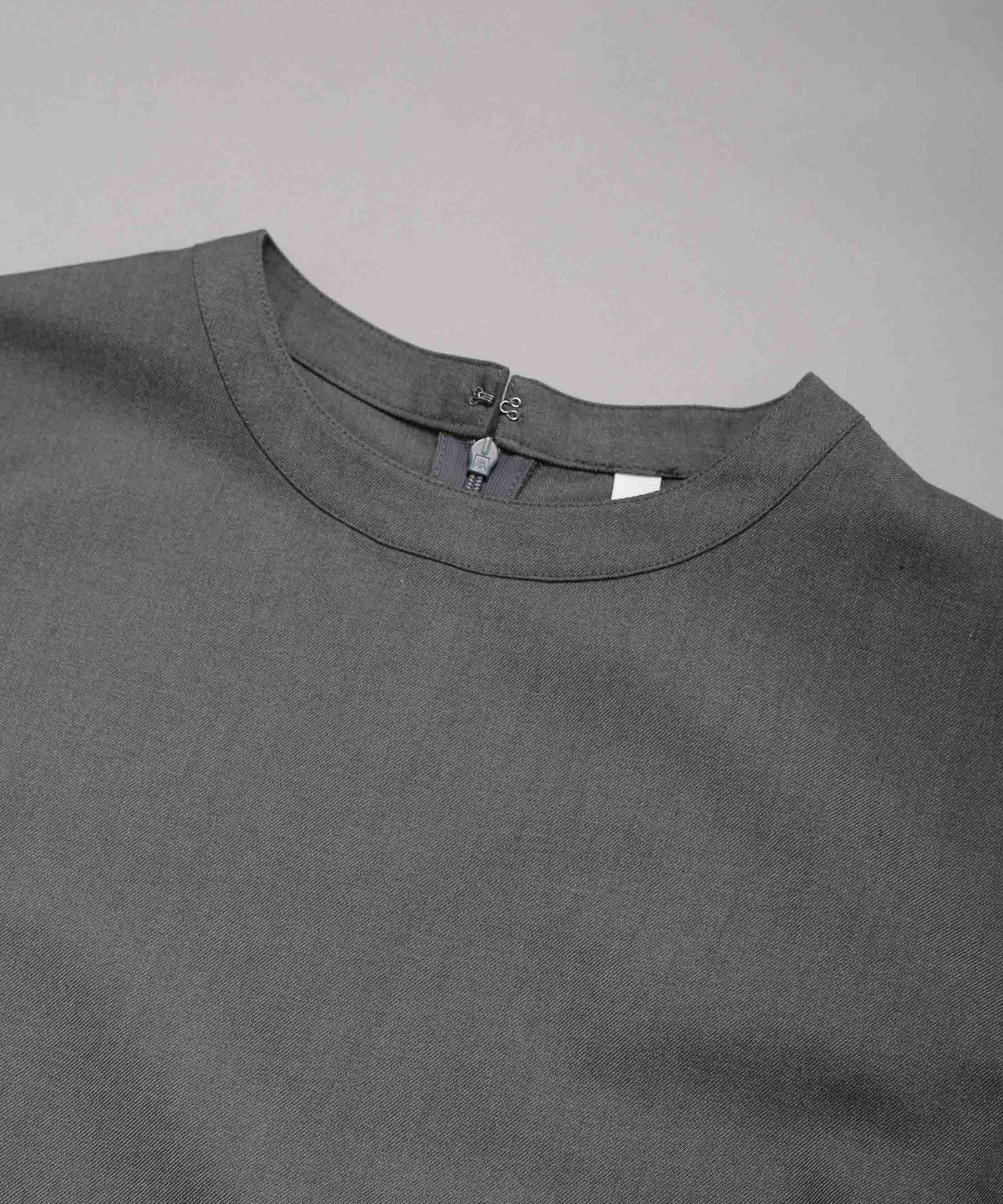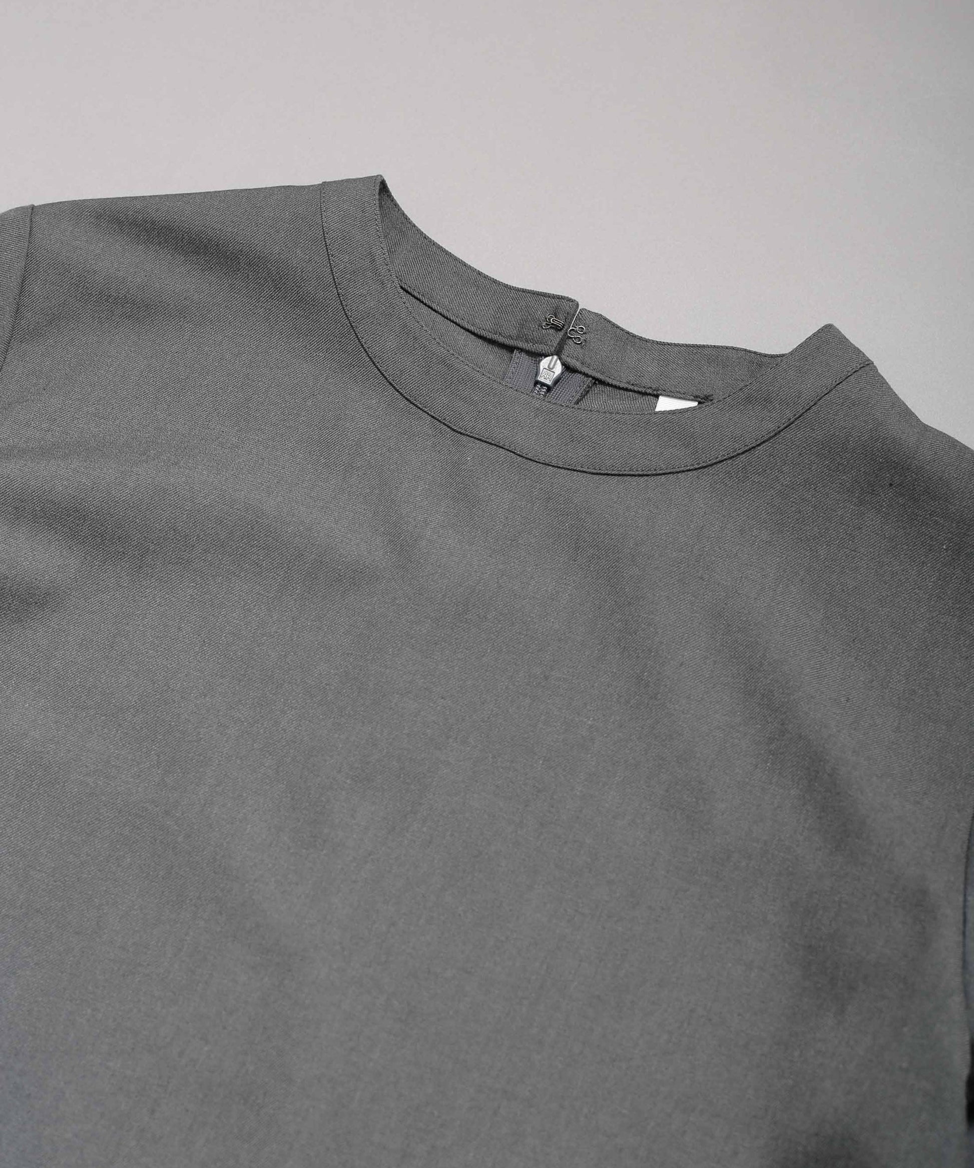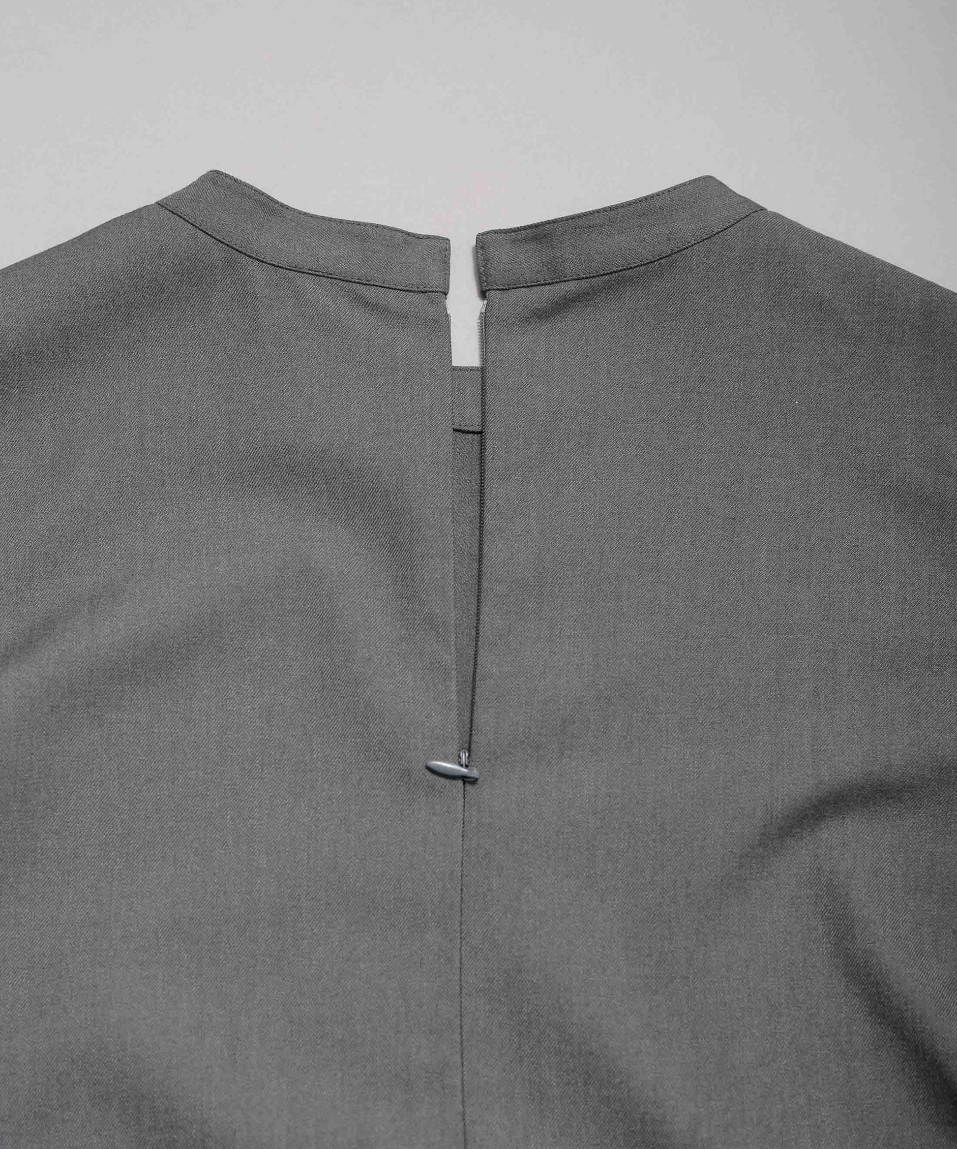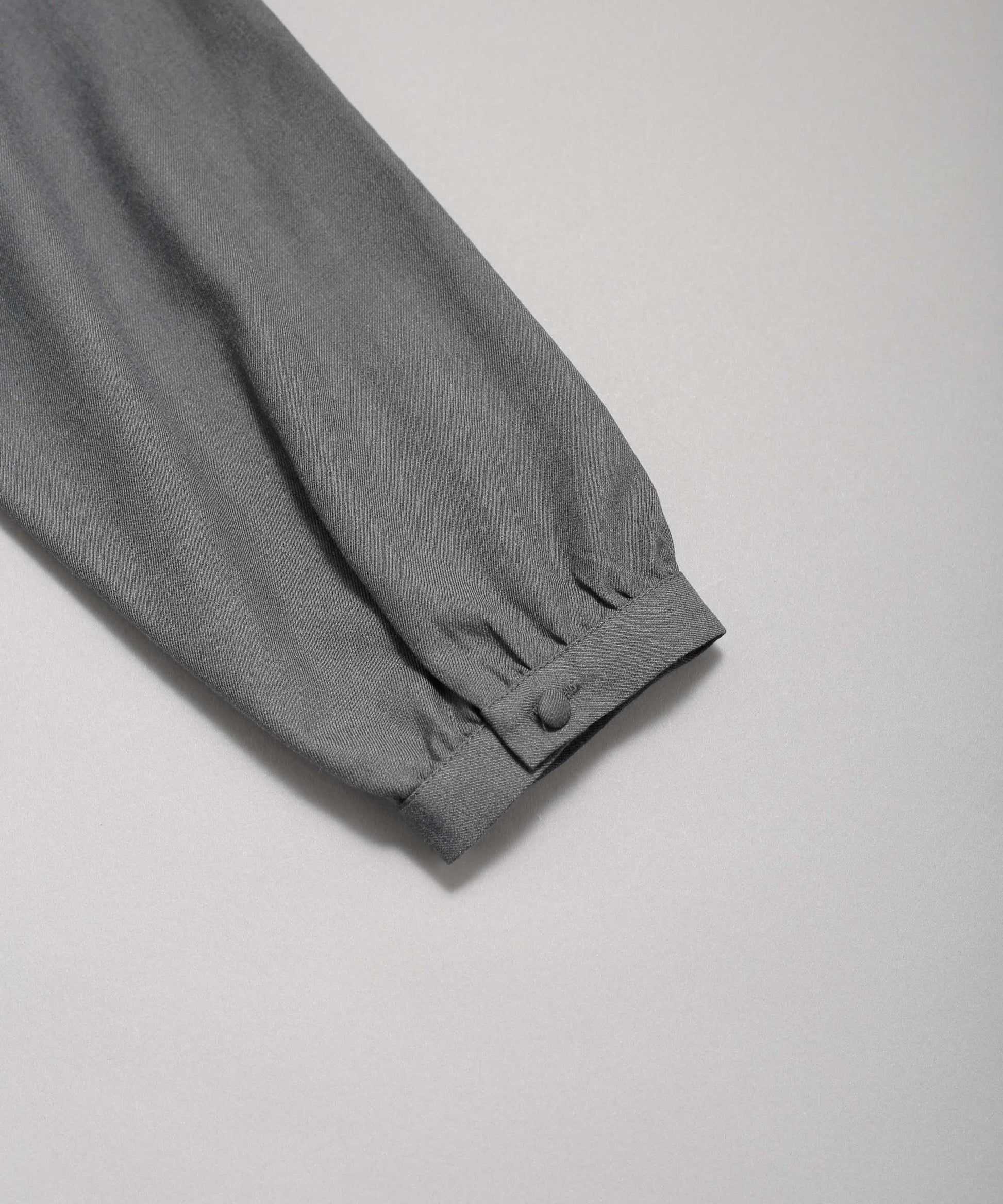 さりげないバンドカラーや袖口のギャザーが上品な1枚。