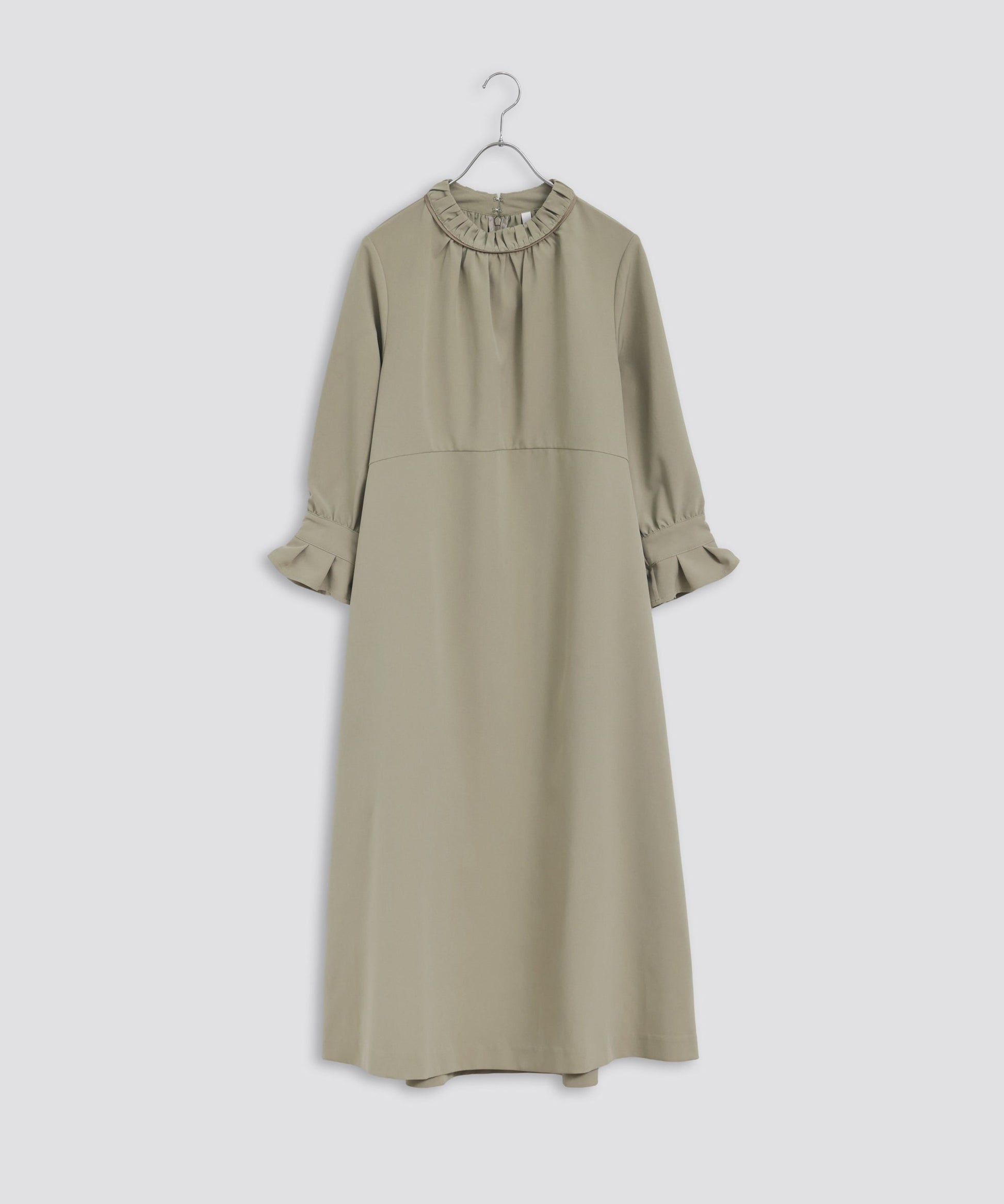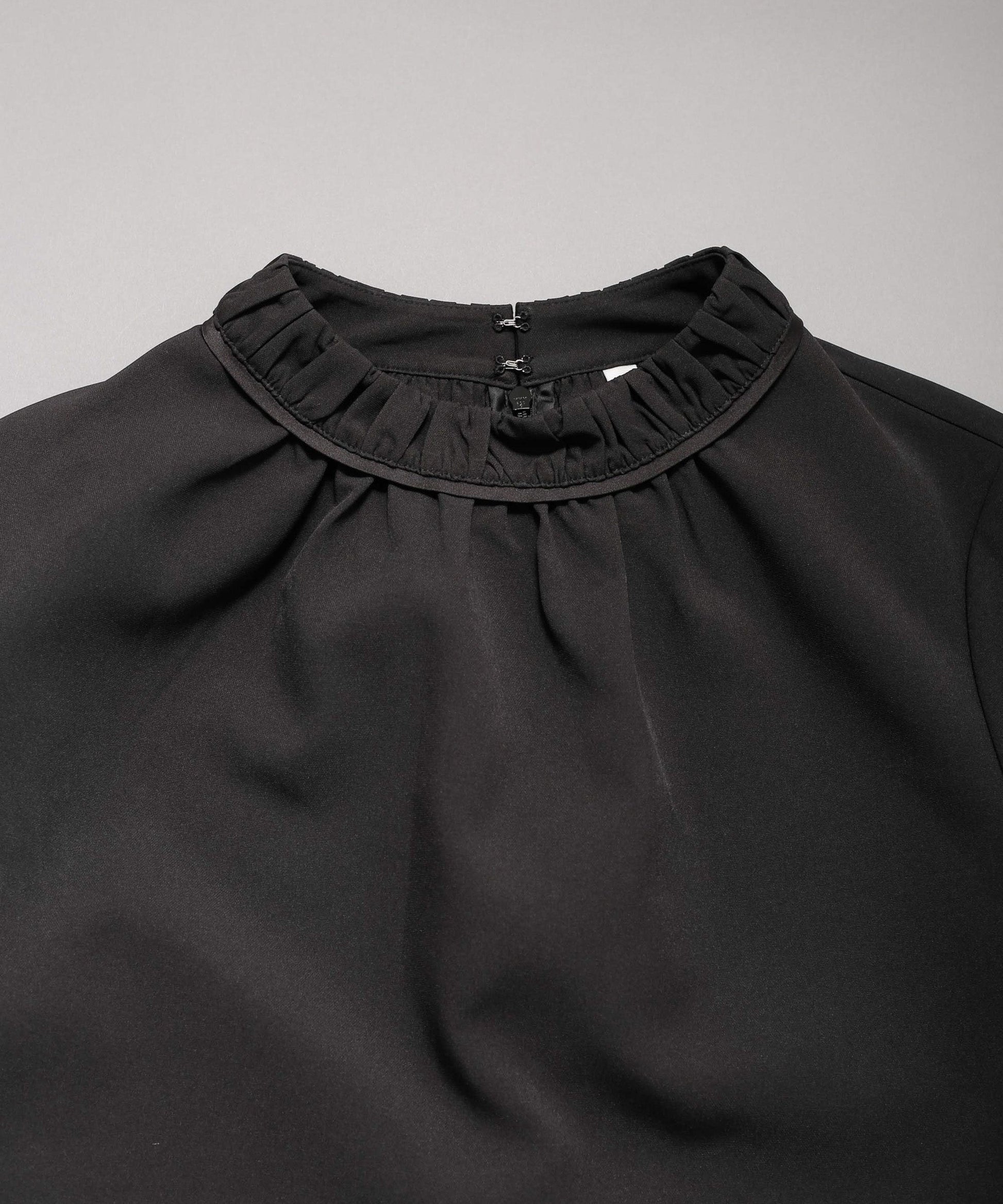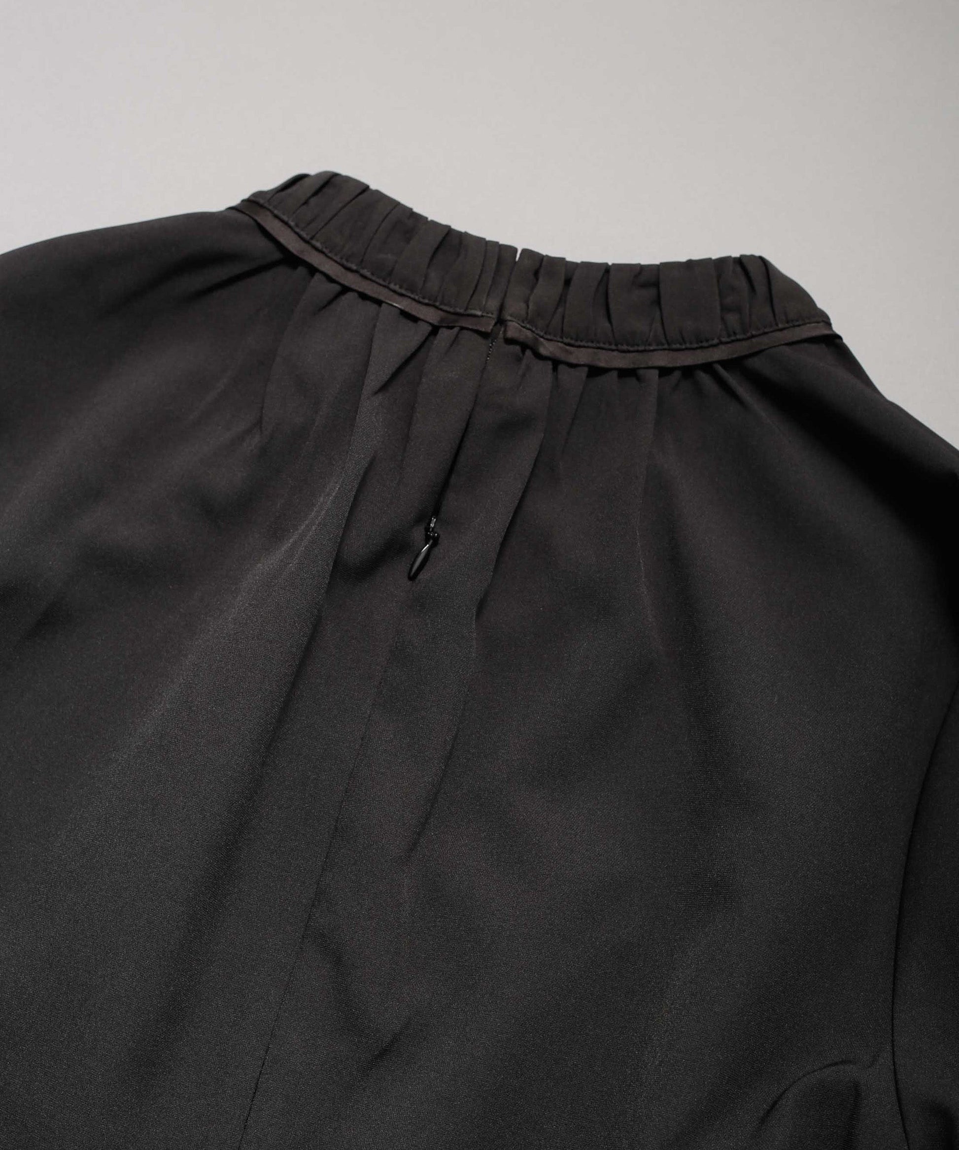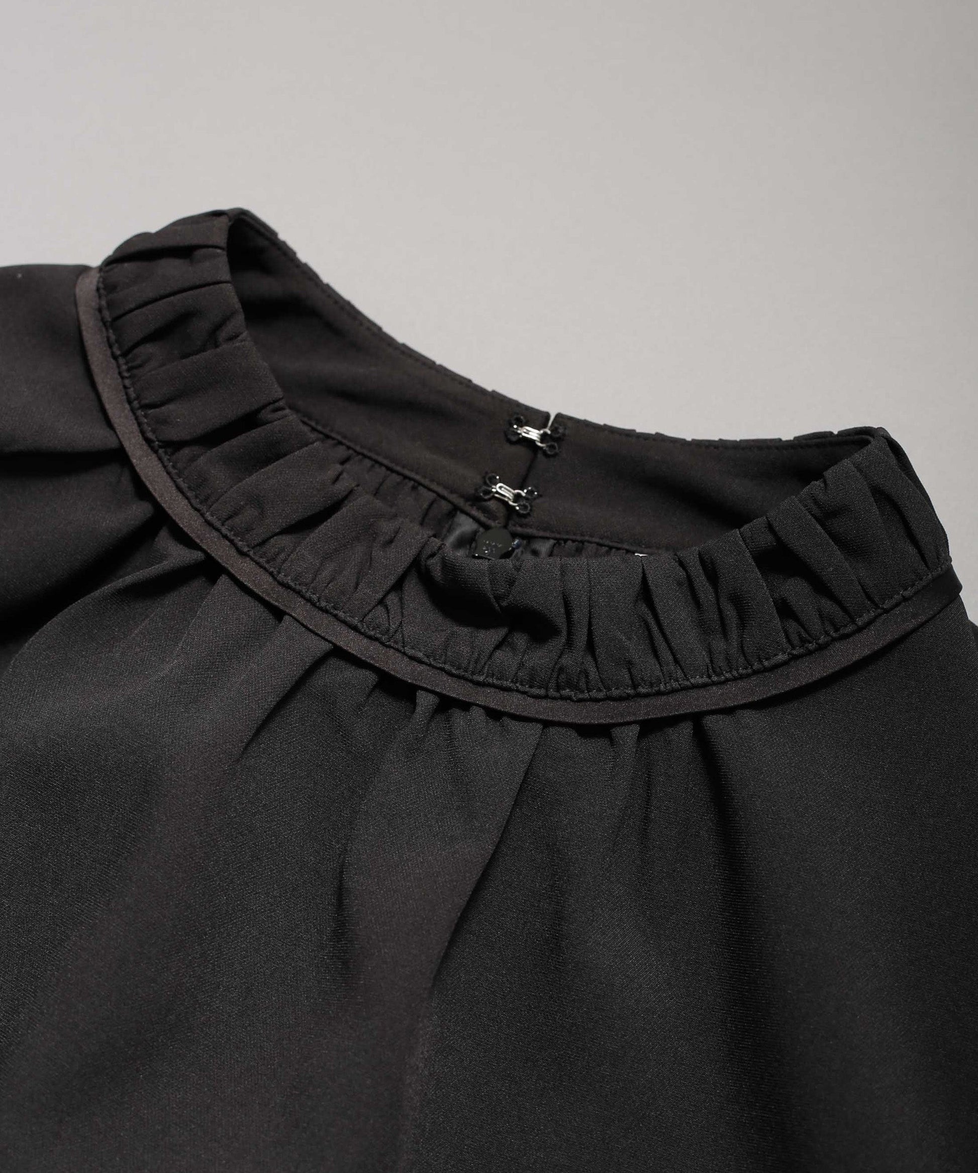 襟には細やかなギャザーを寄せ、首元を華やかに演出しています。