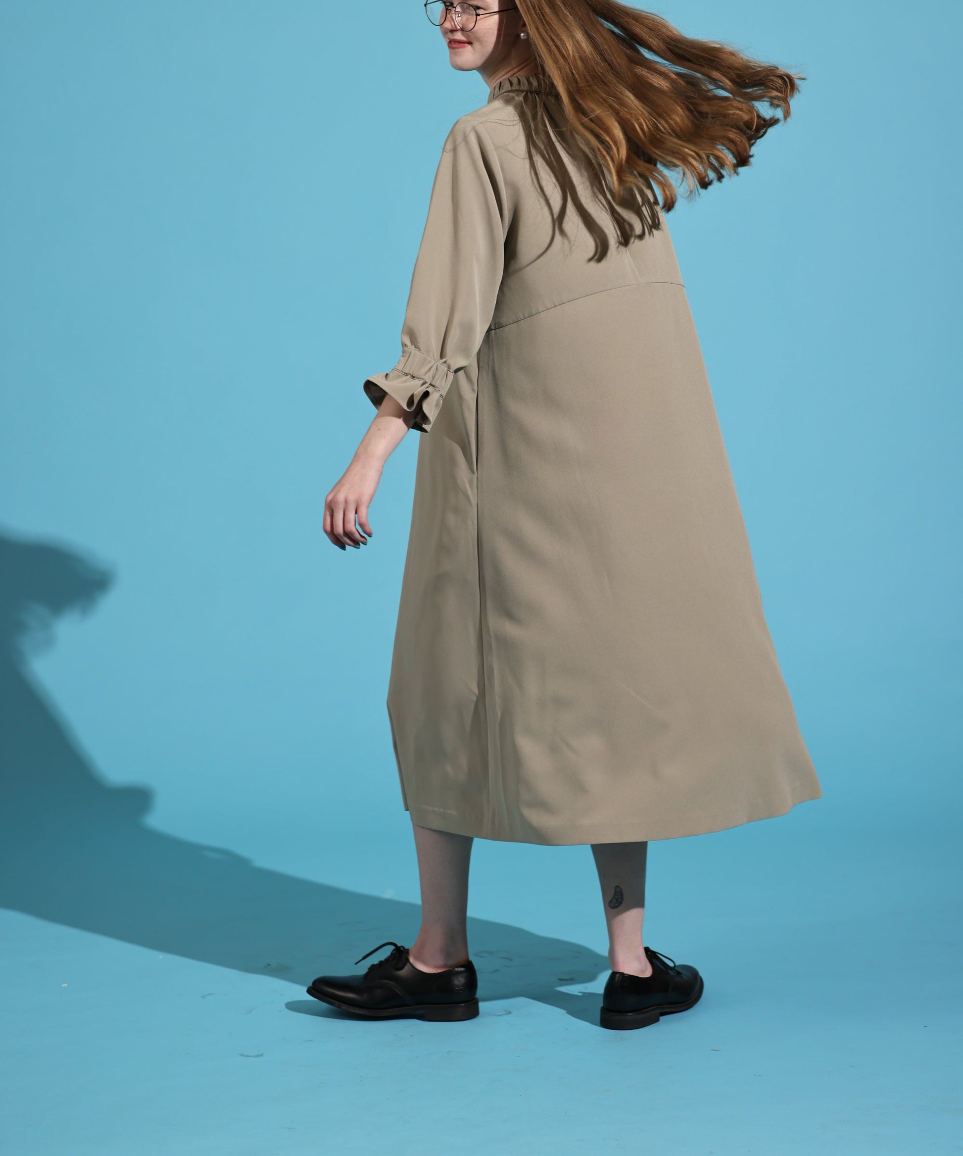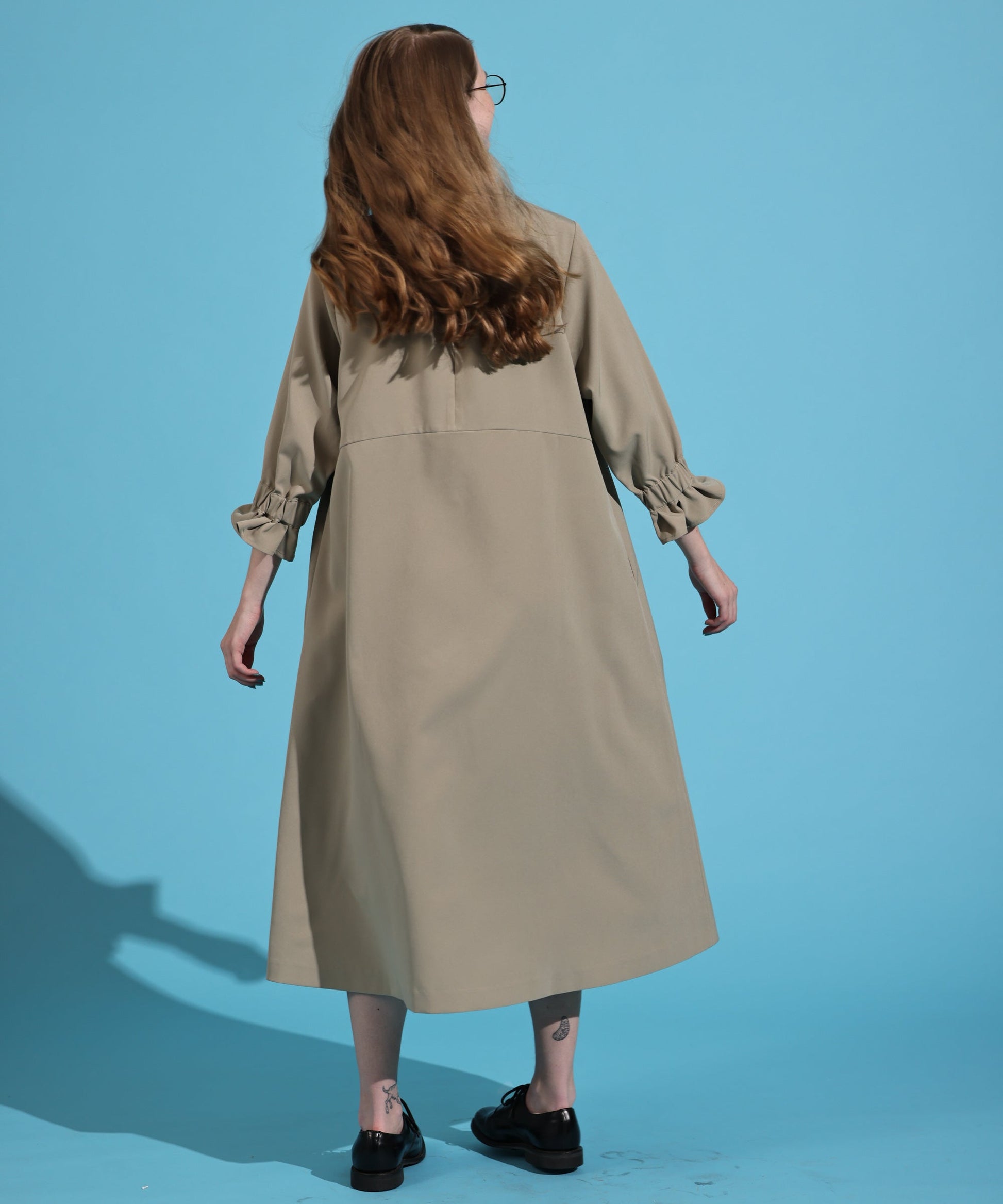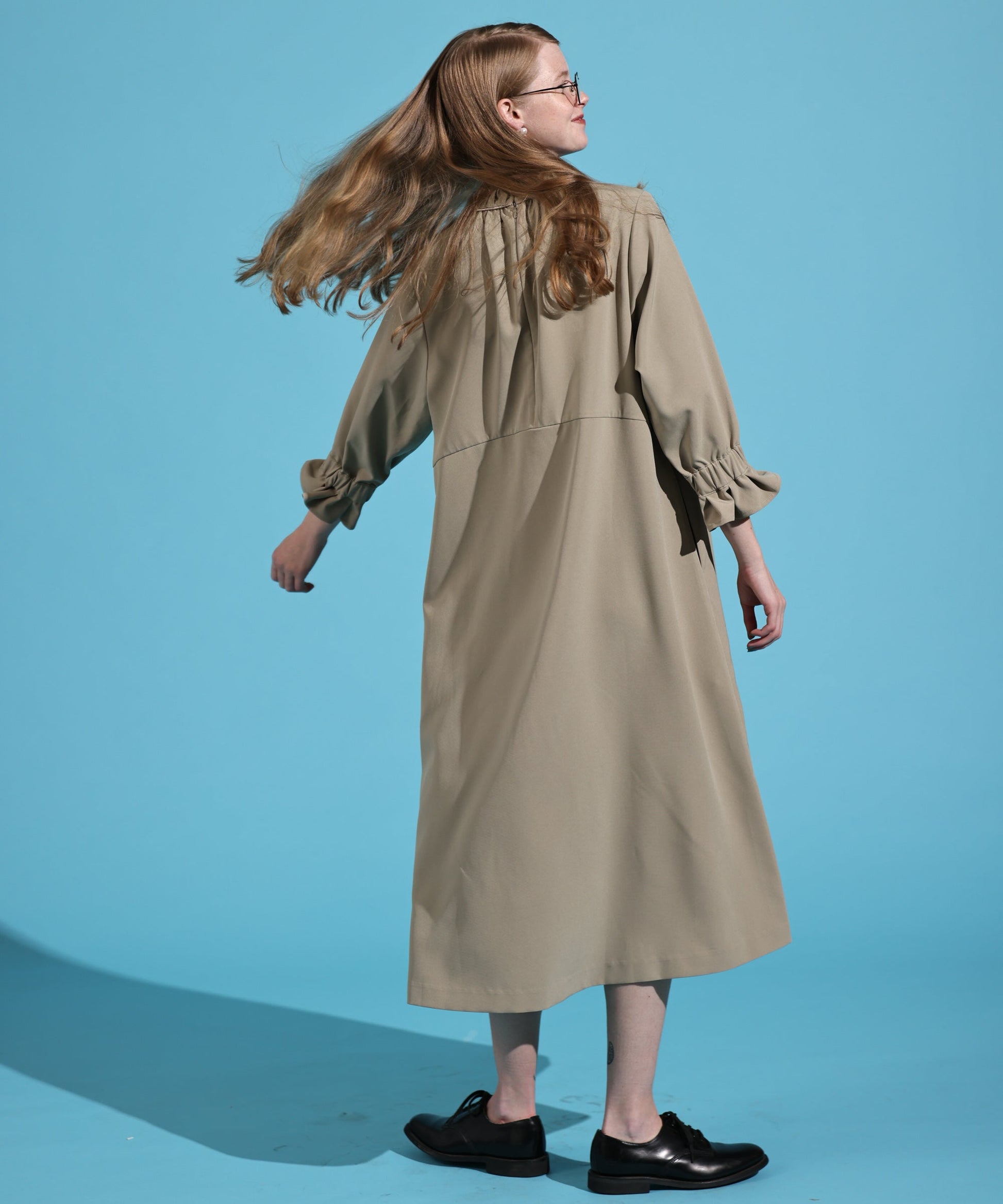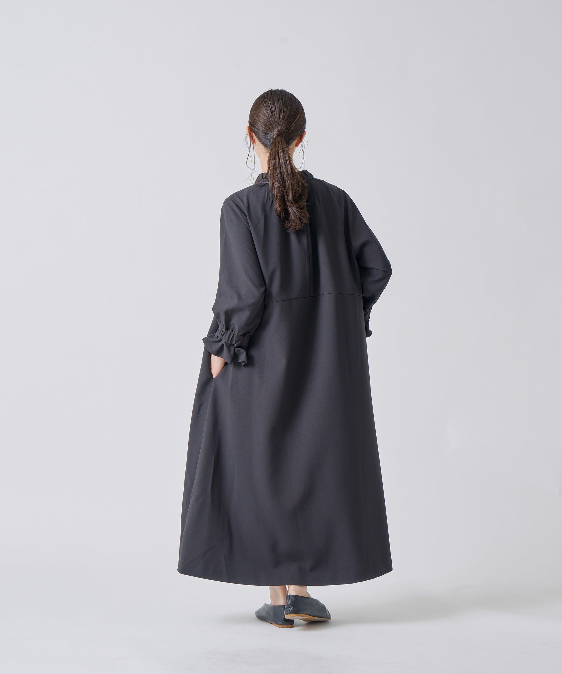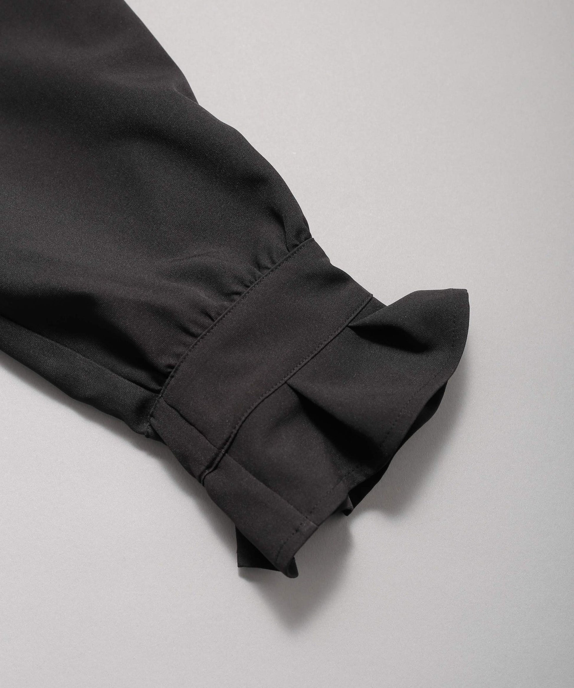 襟には細やかなギャザーを寄せ、首元を華やかに演出しています。