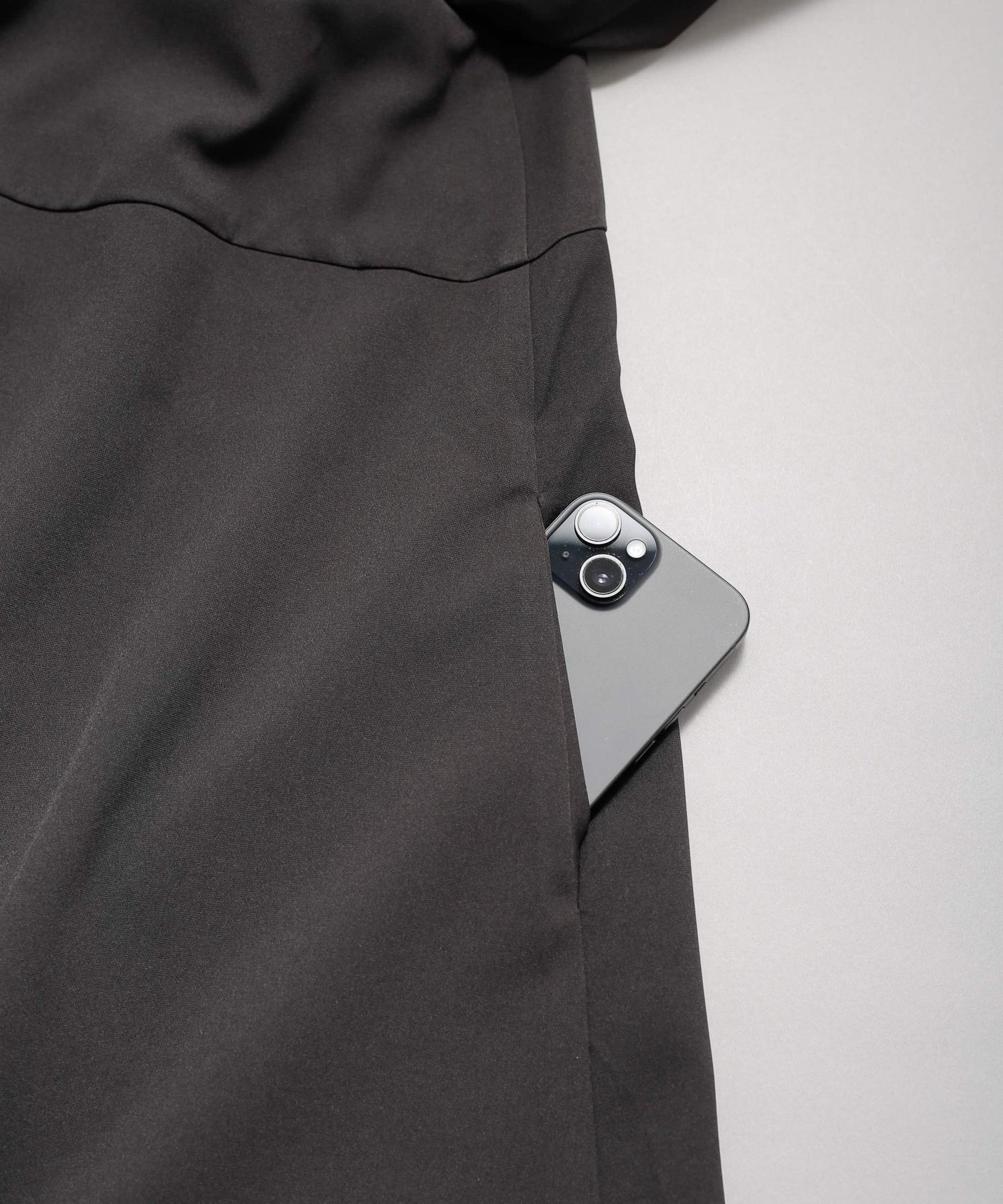 素材はポリエステルストレッチクロスを使用しているので動きやすく、シワになりにくくお手入れも簡単なのが嬉しいポイント。