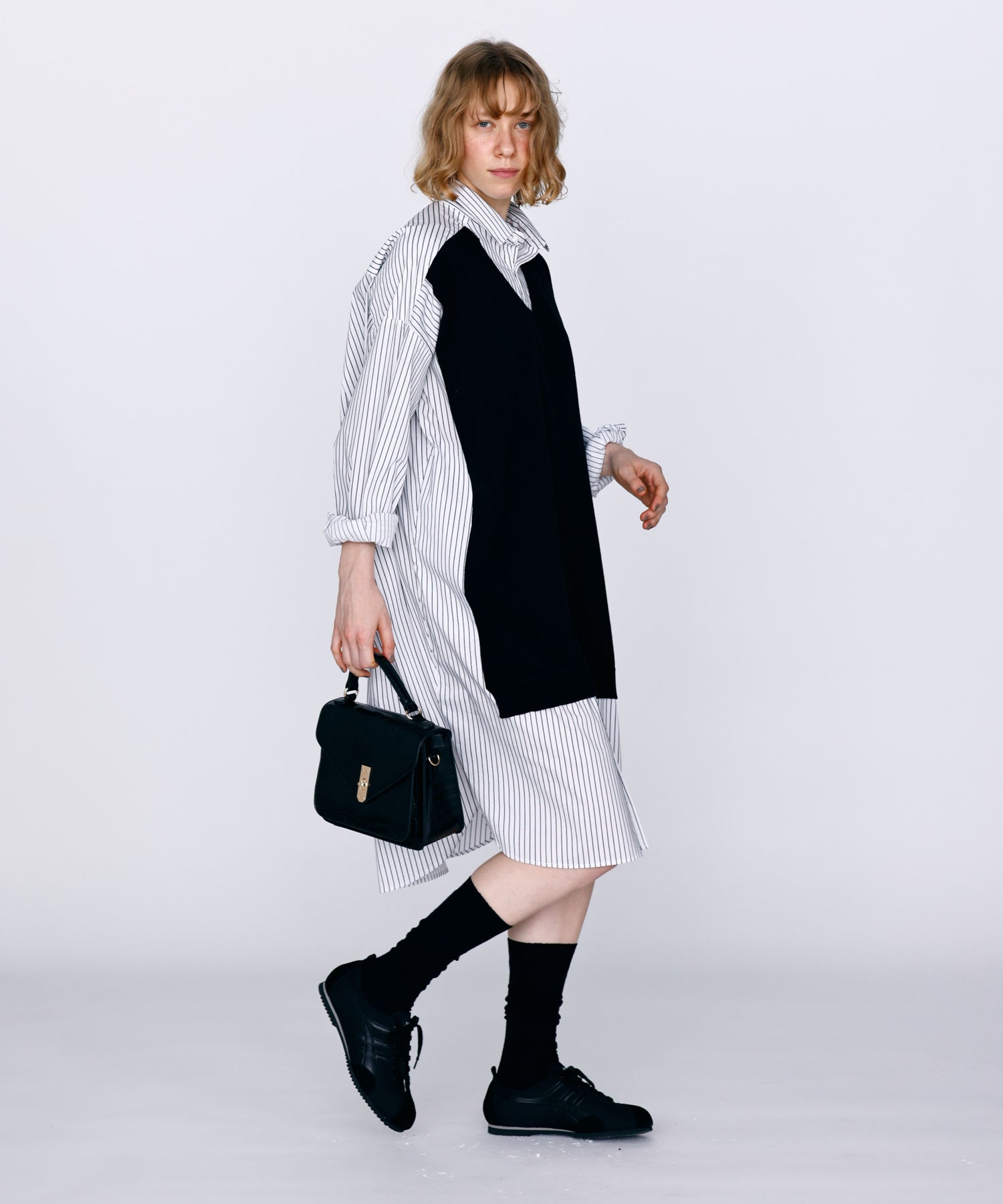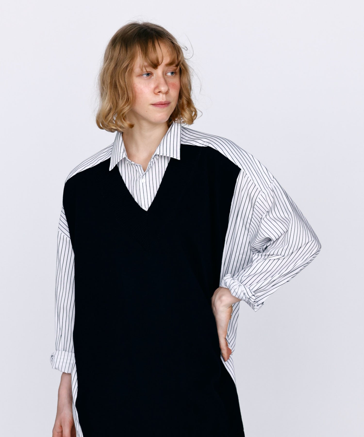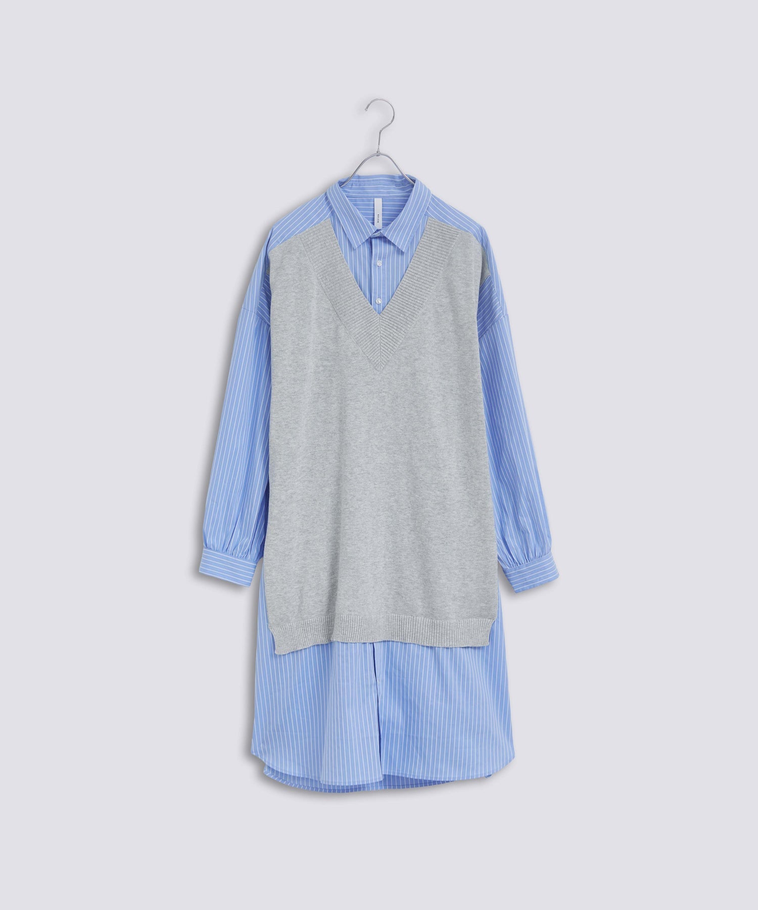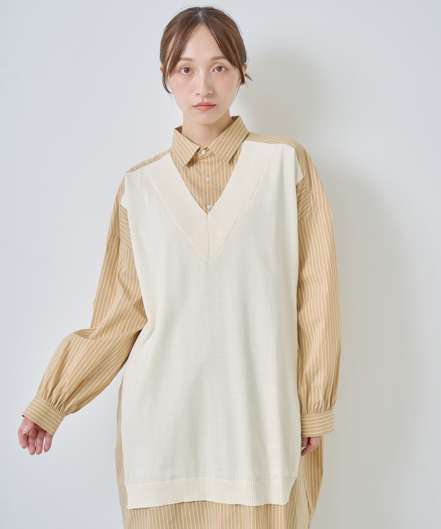 ニットベスト重ね着風ストライプシャツワンピース APOLU