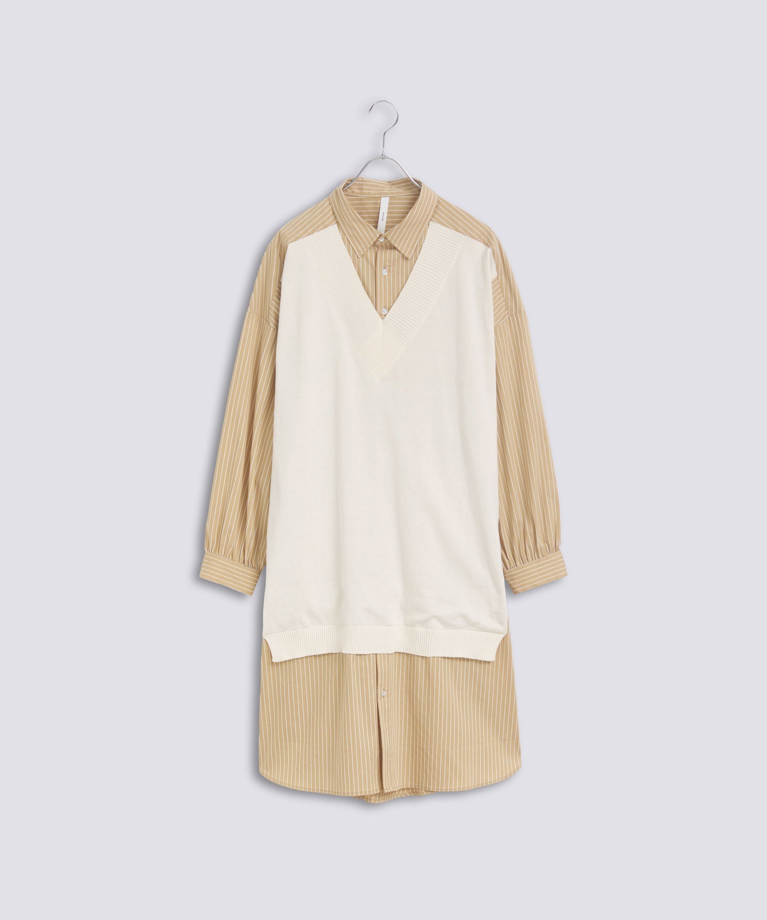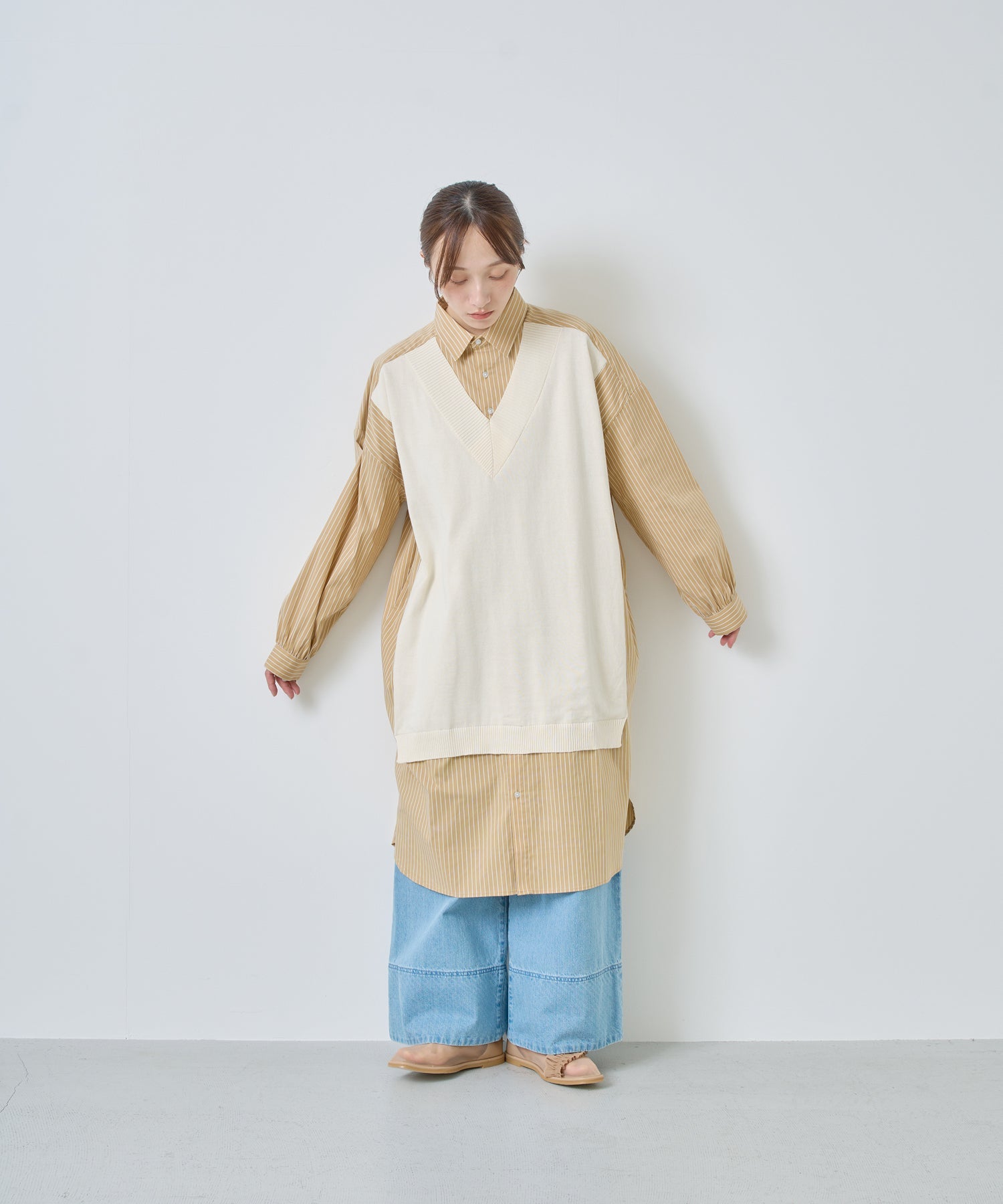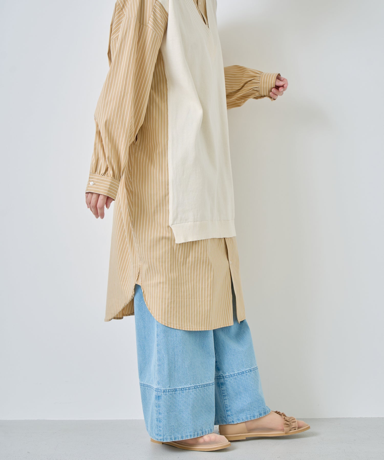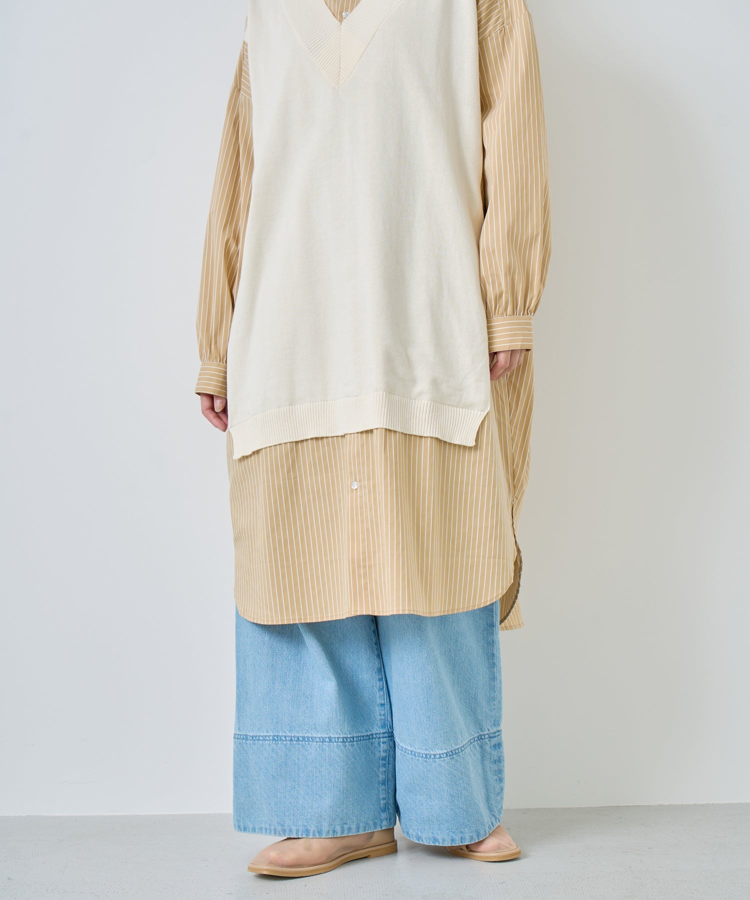 ニットベスト重ね着風ストライプシャツワンピース APOLU