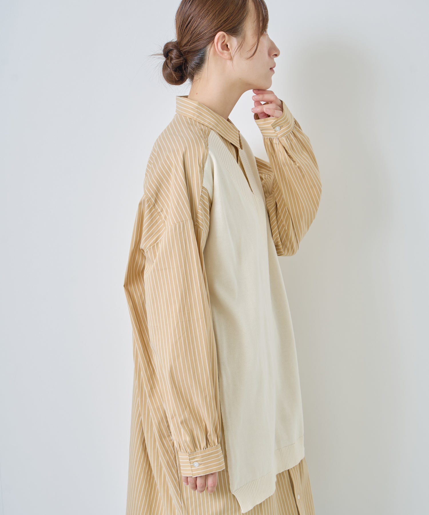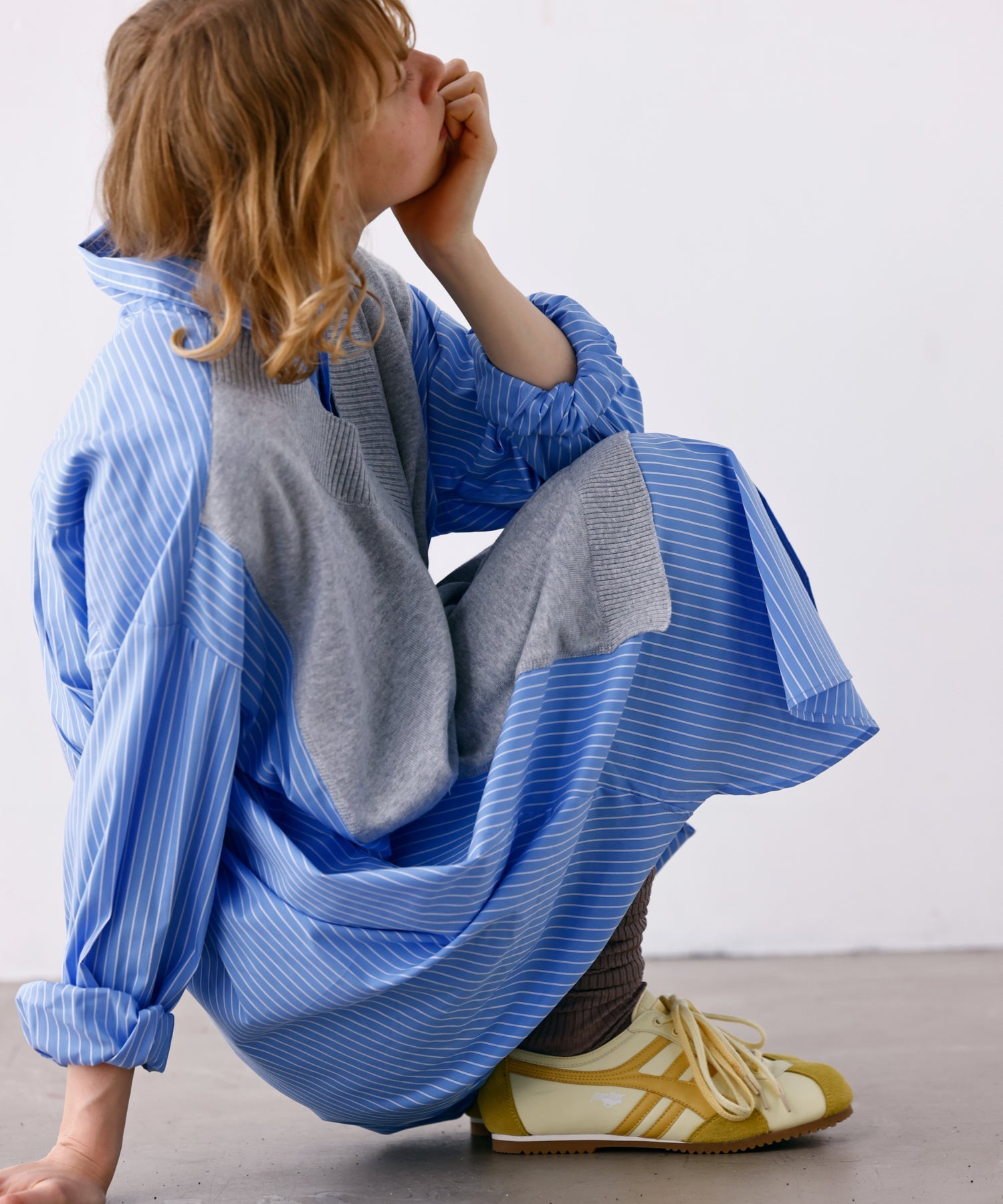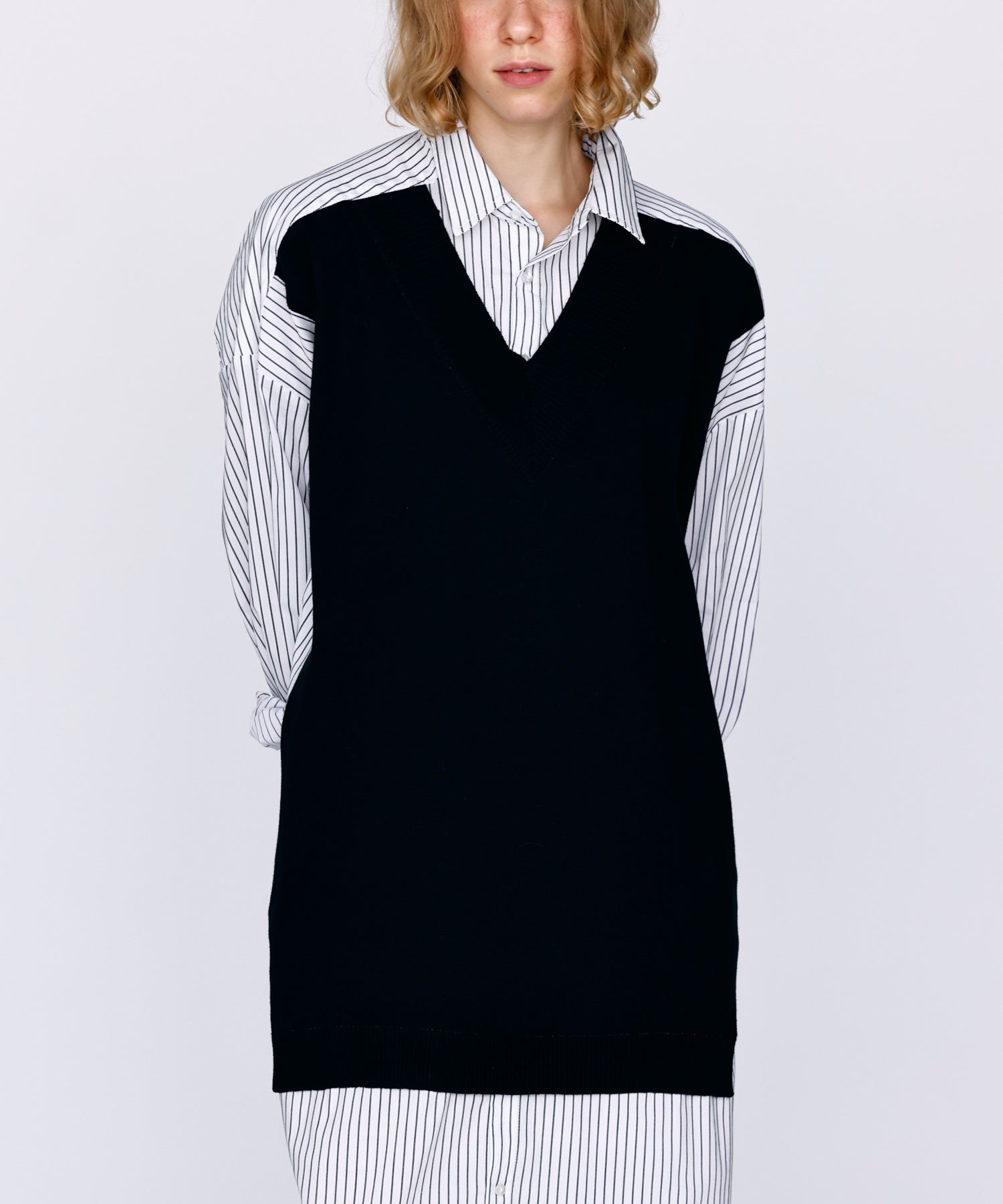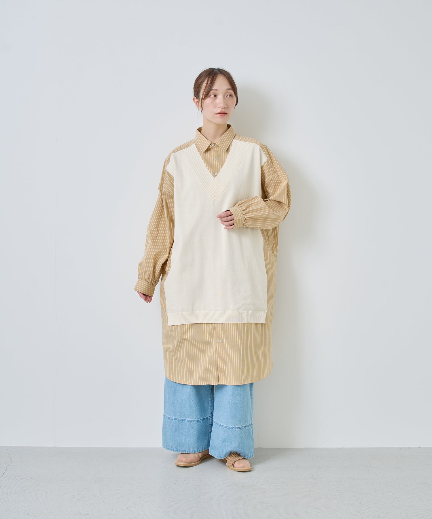 ニットベスト重ね着風ストライプシャツワンピース APOLU