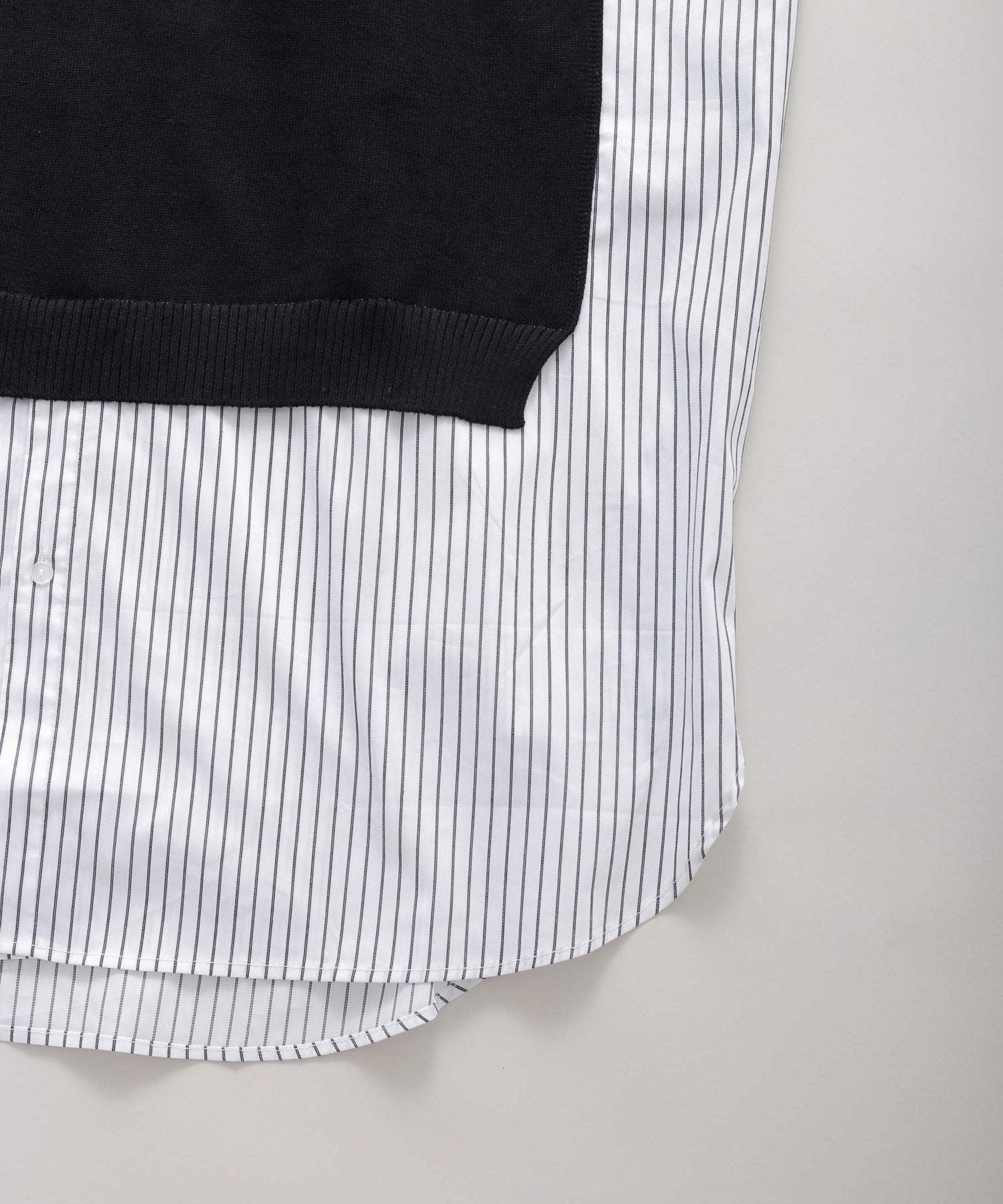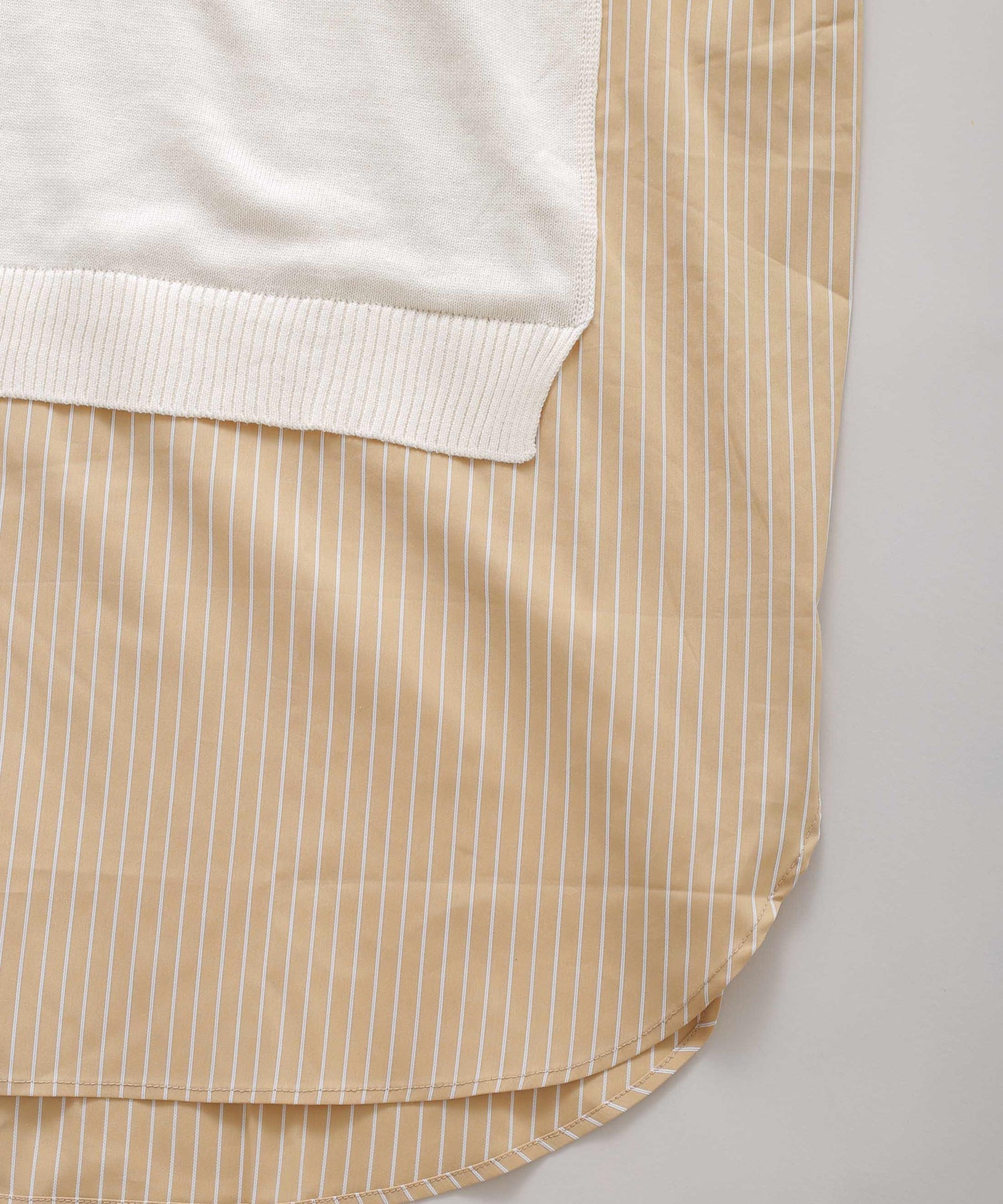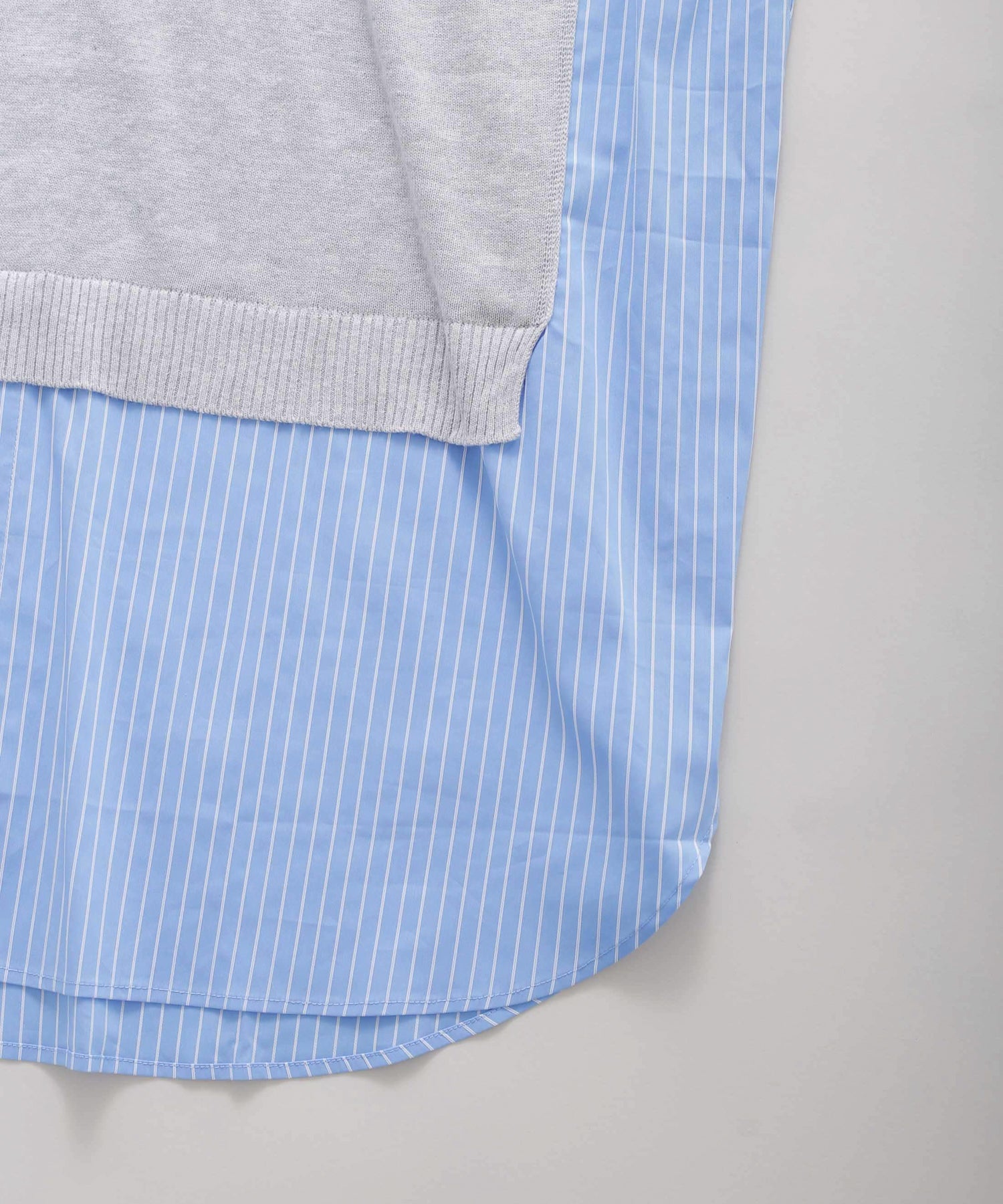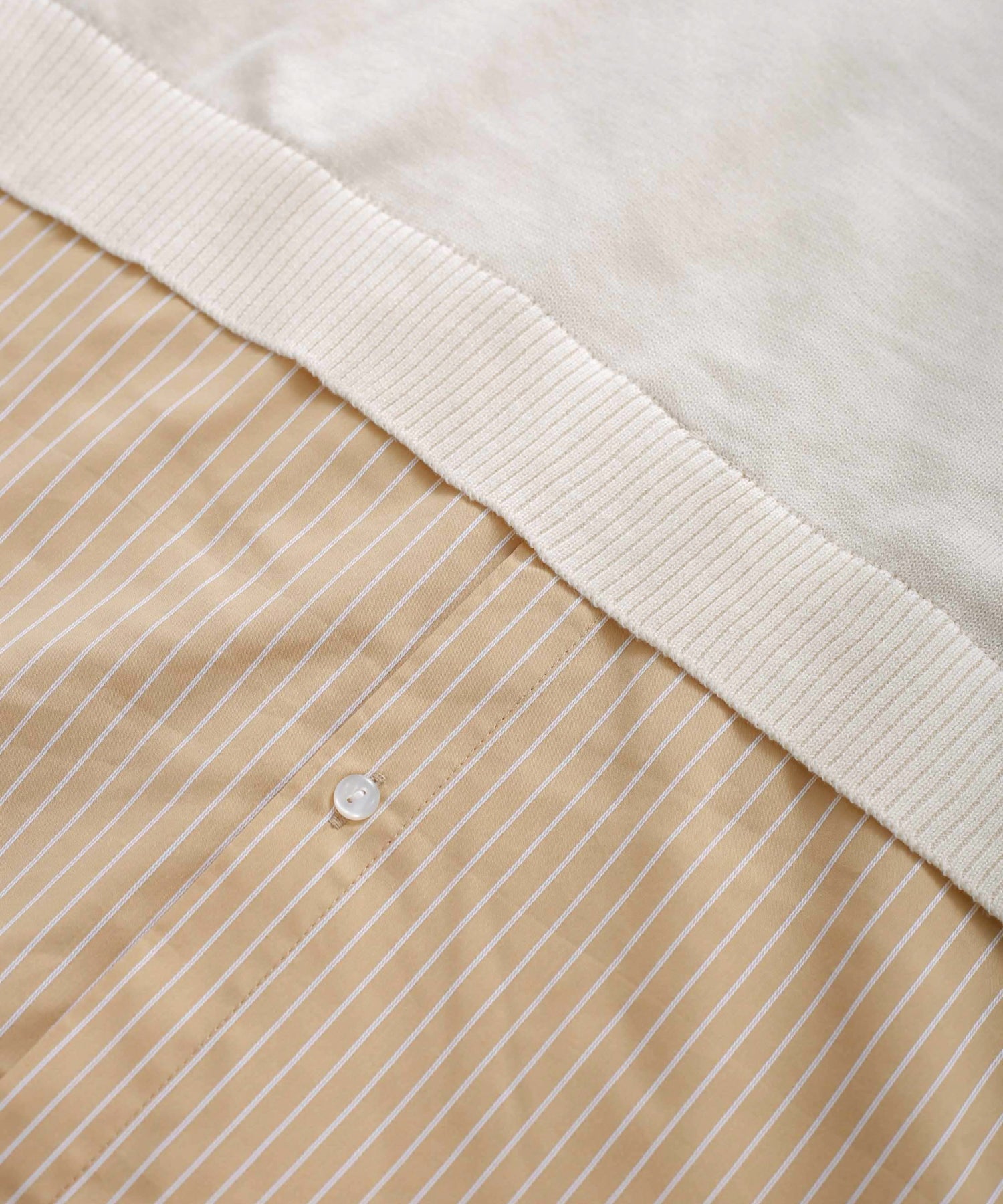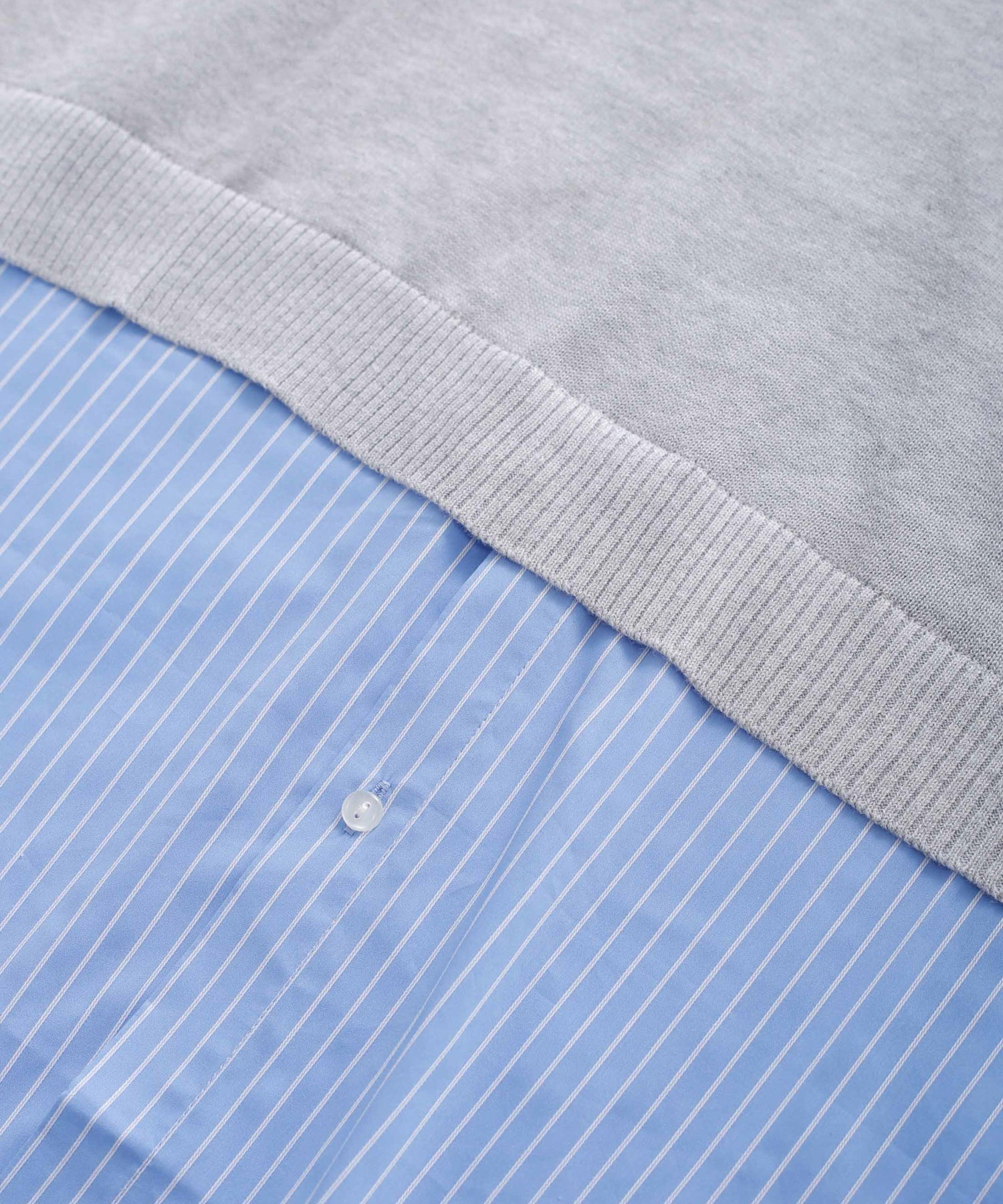 シャツ部分はストレッチ混の程良いハリ感のある素材を使用し、ニット部分は涼しげなコットン素材を使用。