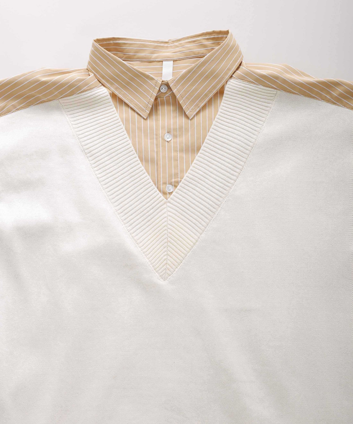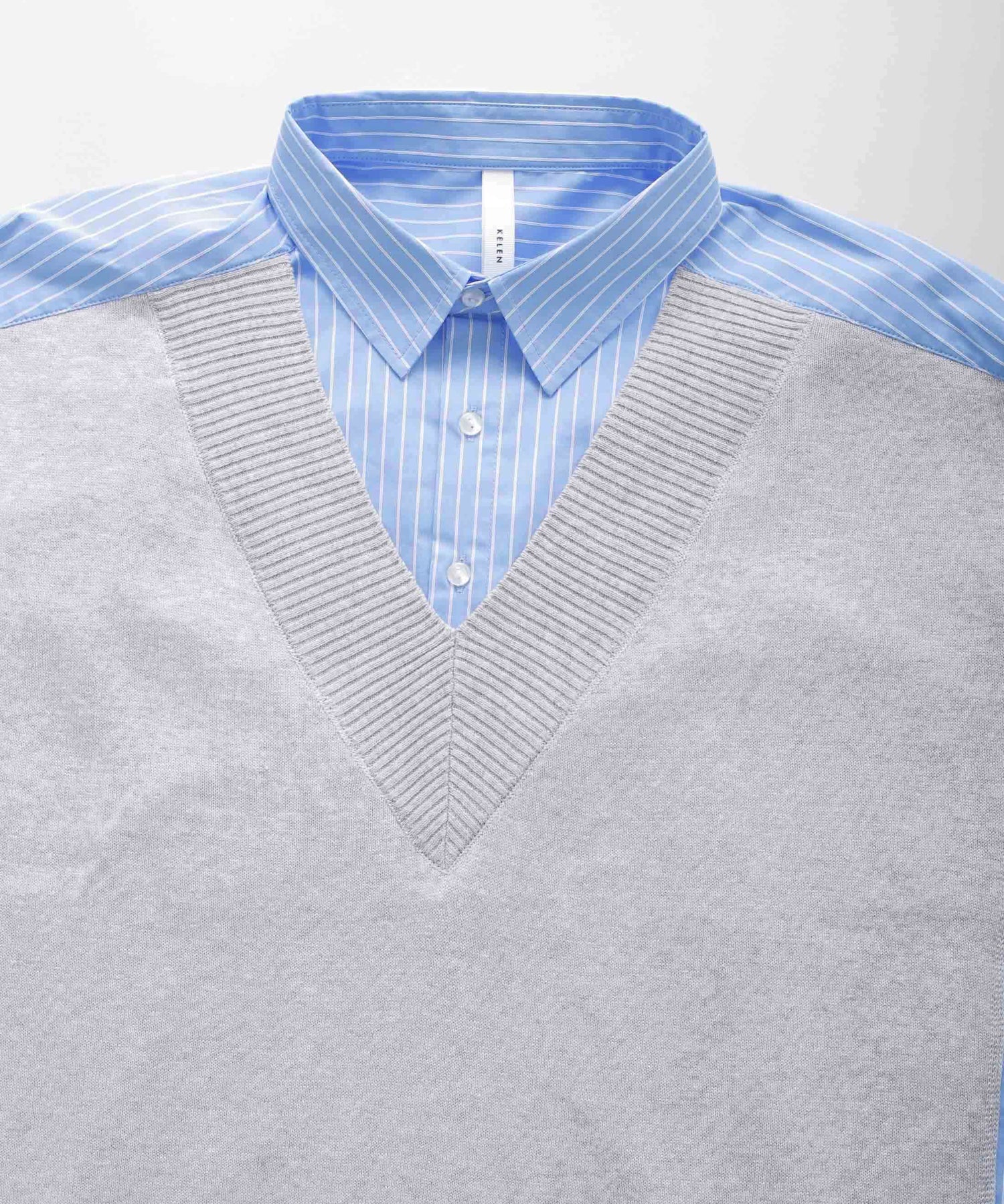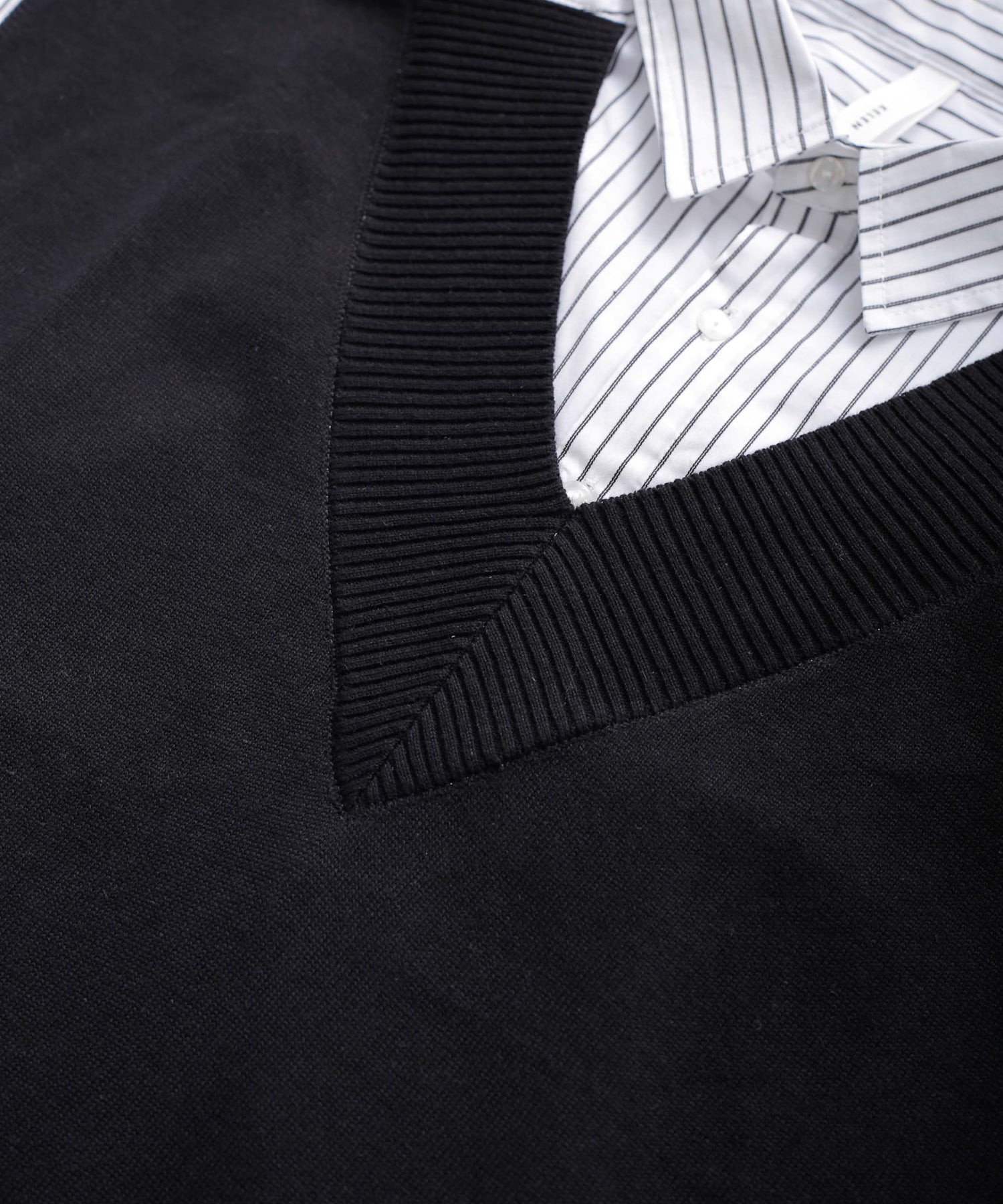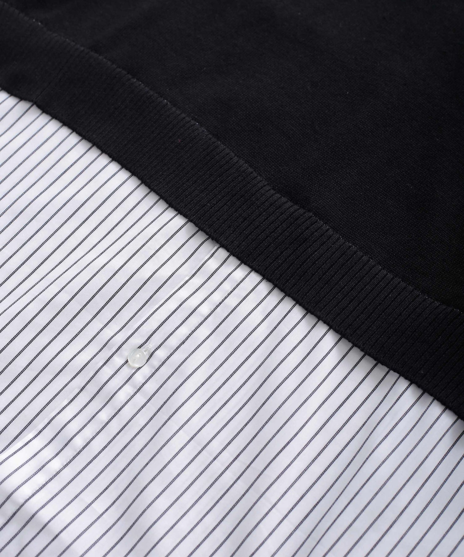 シャツ部分はストレッチ混の程良いハリ感のある素材を使用し、ニット部分は涼しげなコットン素材を使用。