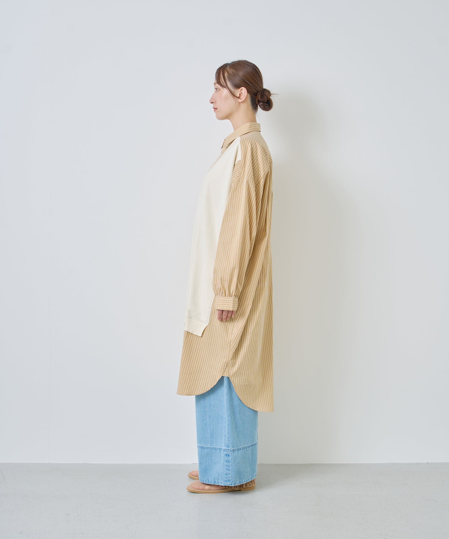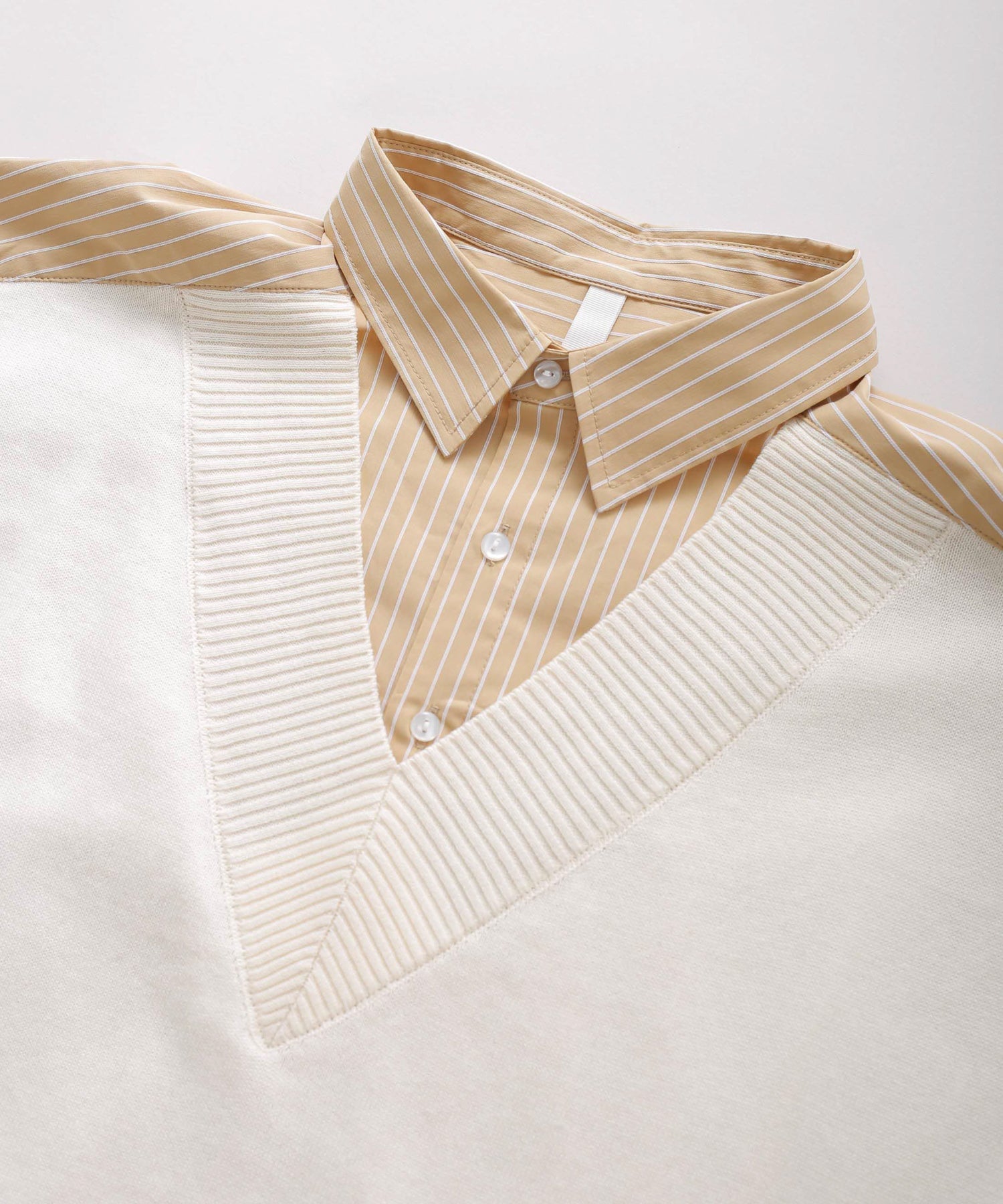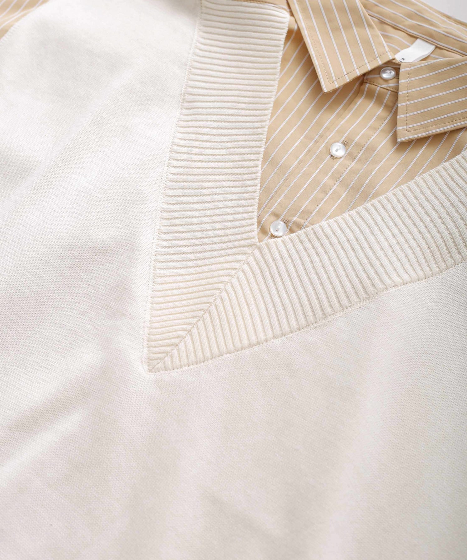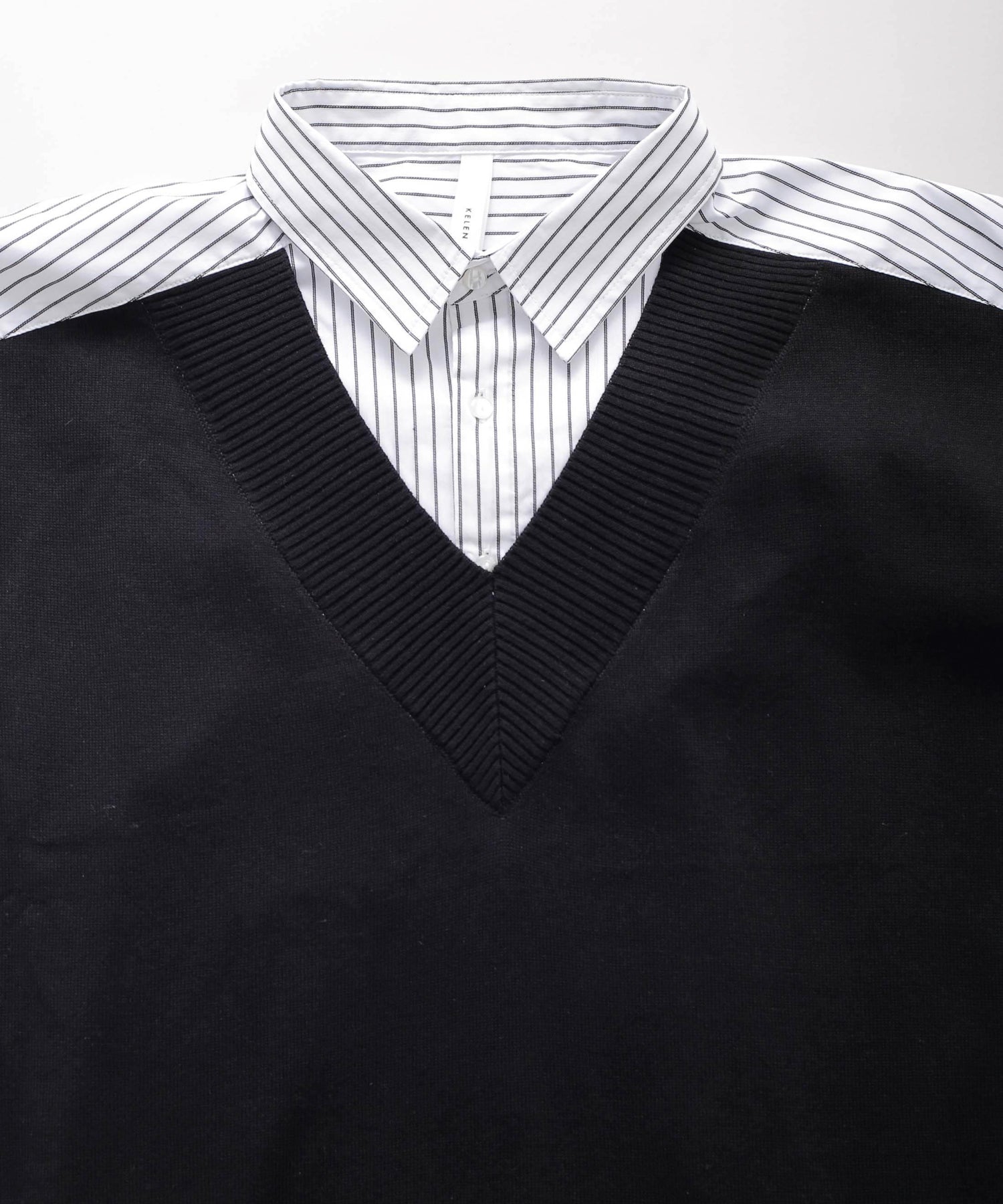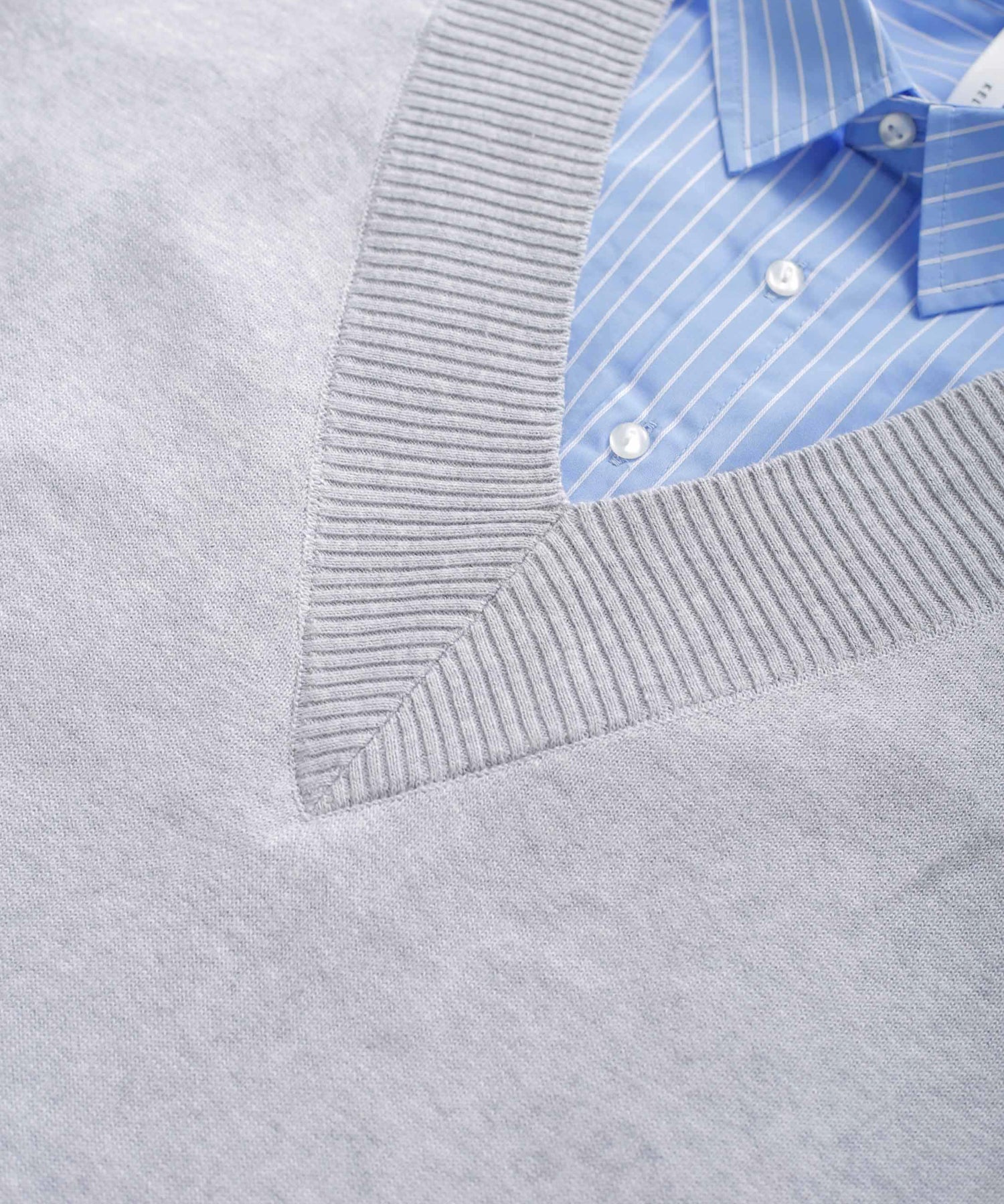 シャツ部分はストレッチ混の程良いハリ感のある素材を使用し、ニット部分は涼しげなコットン素材を使用。