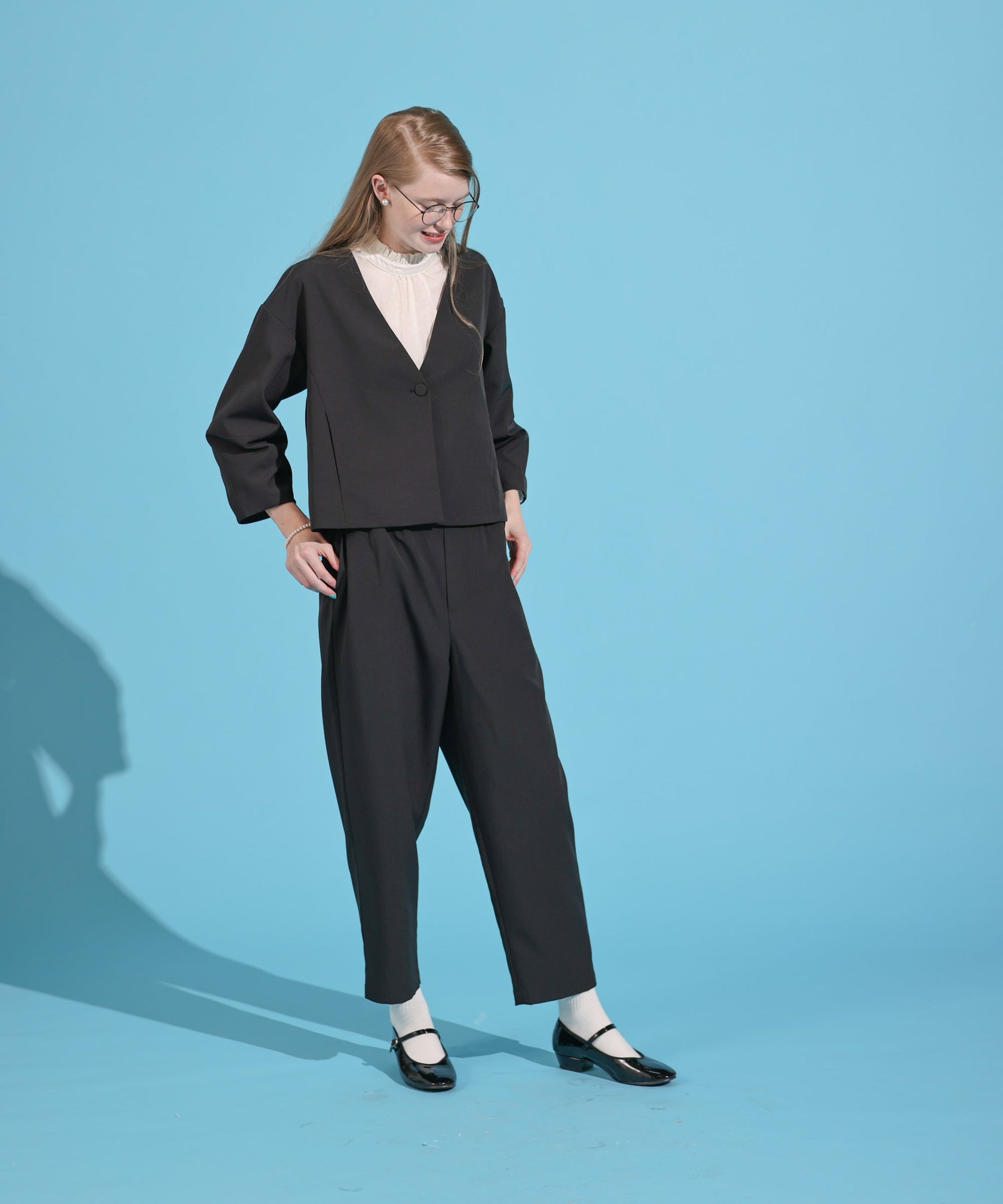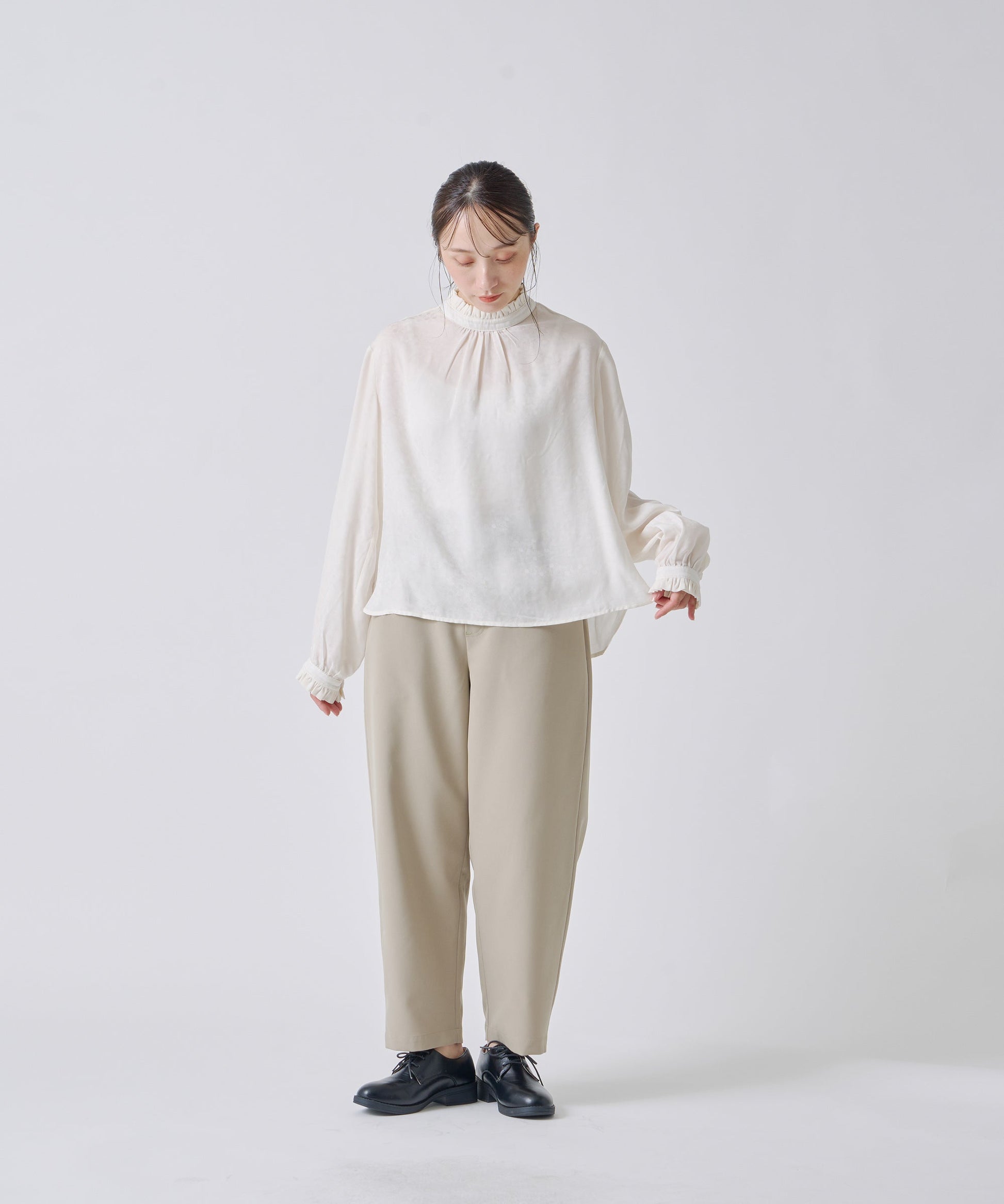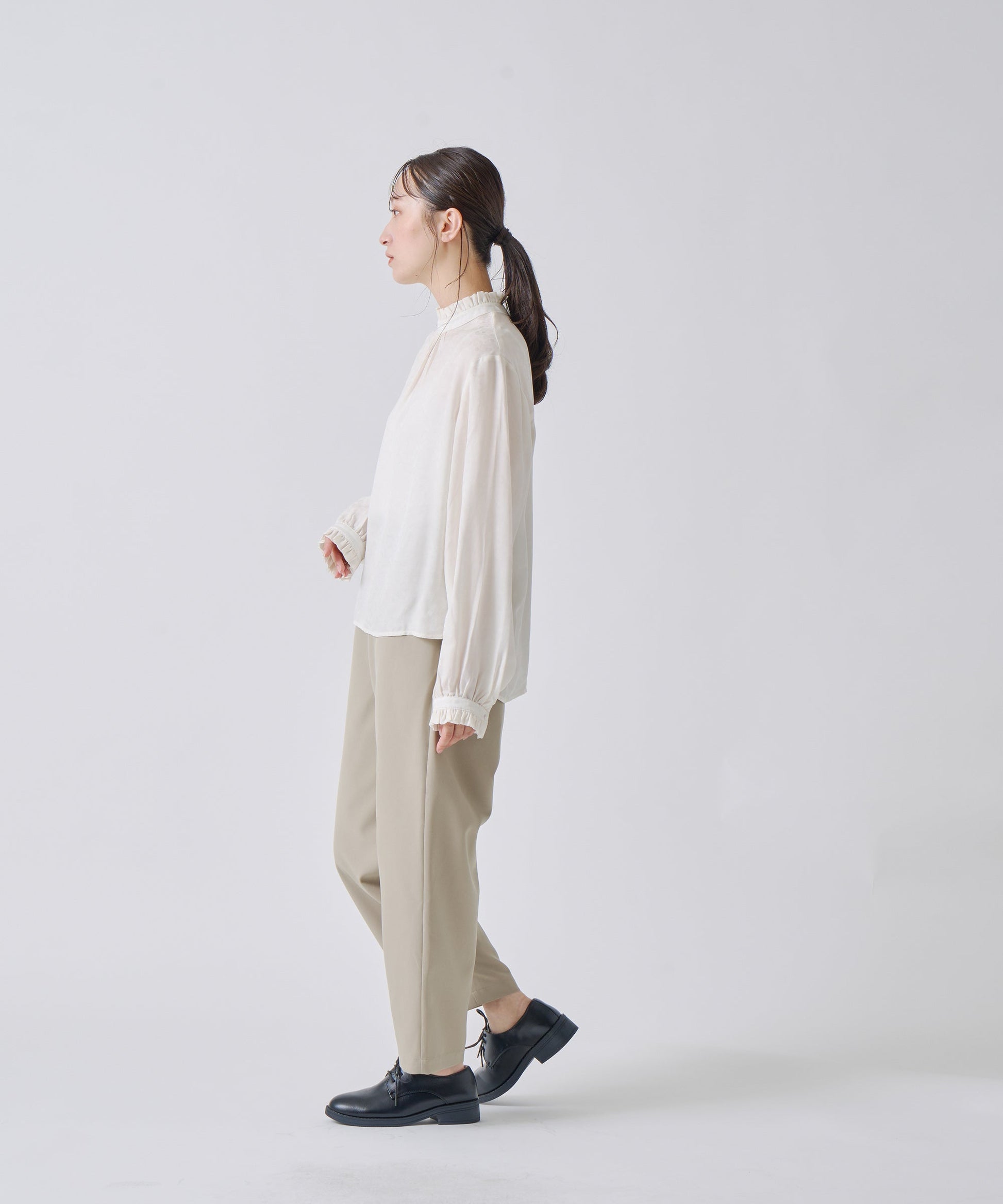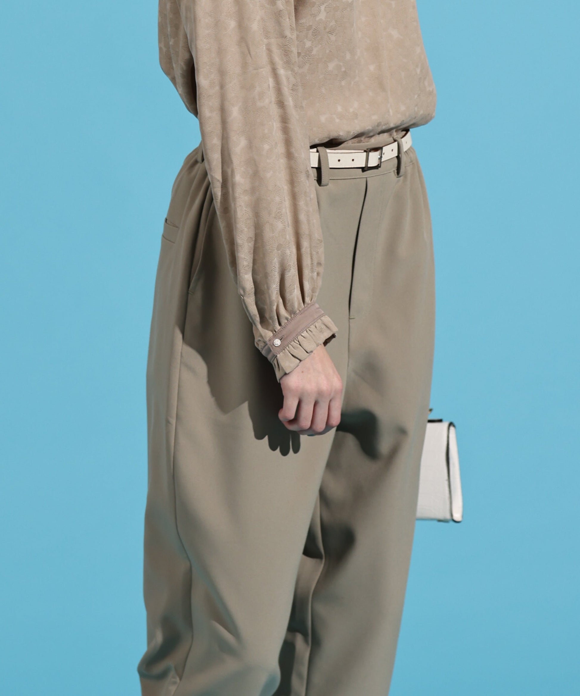 同素材のジャケットやプルオーバートップスに合わせてオケージョンシーンにはもちろんのこと、オフィスコーデや、デイリー使いにも重宝します。