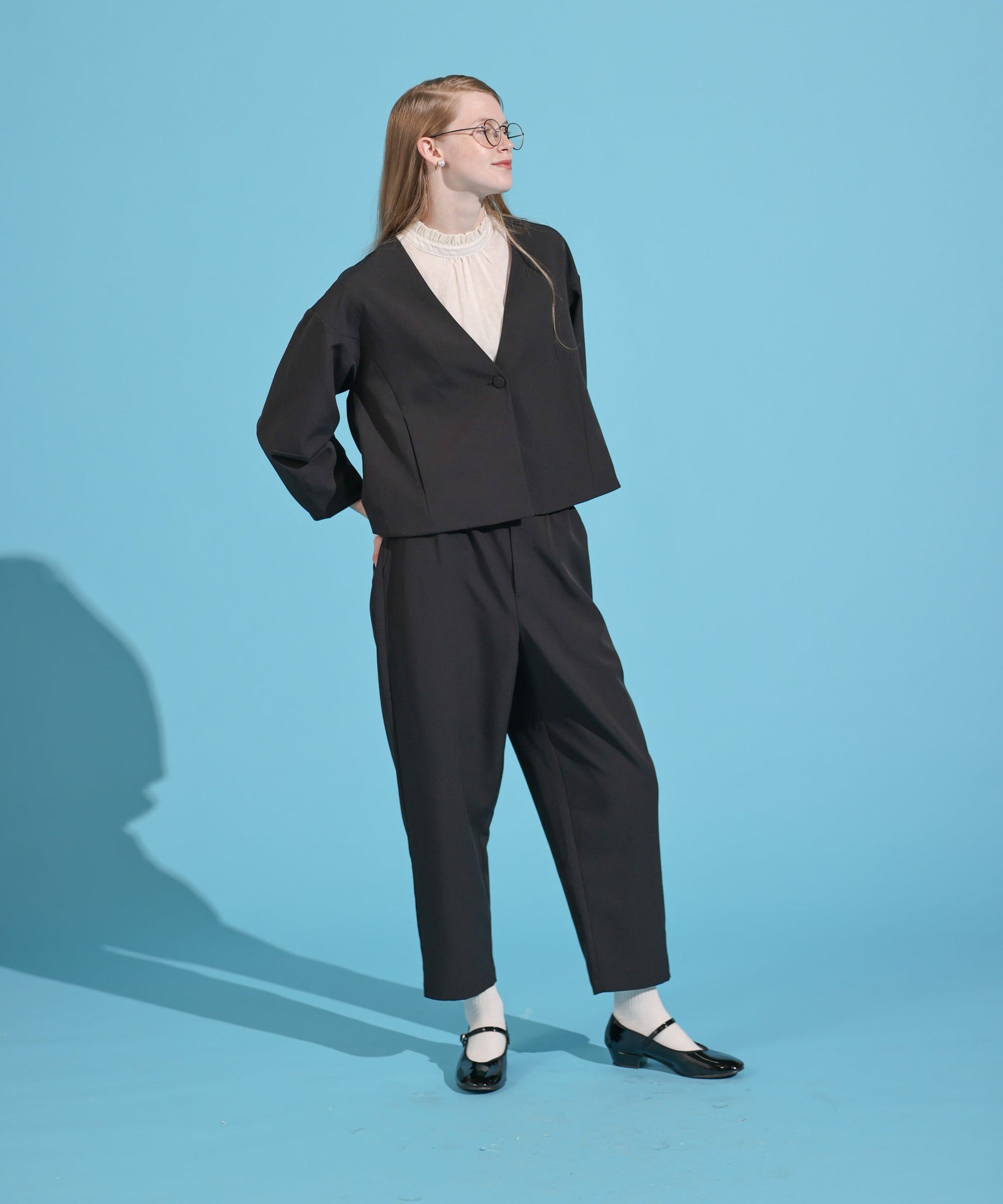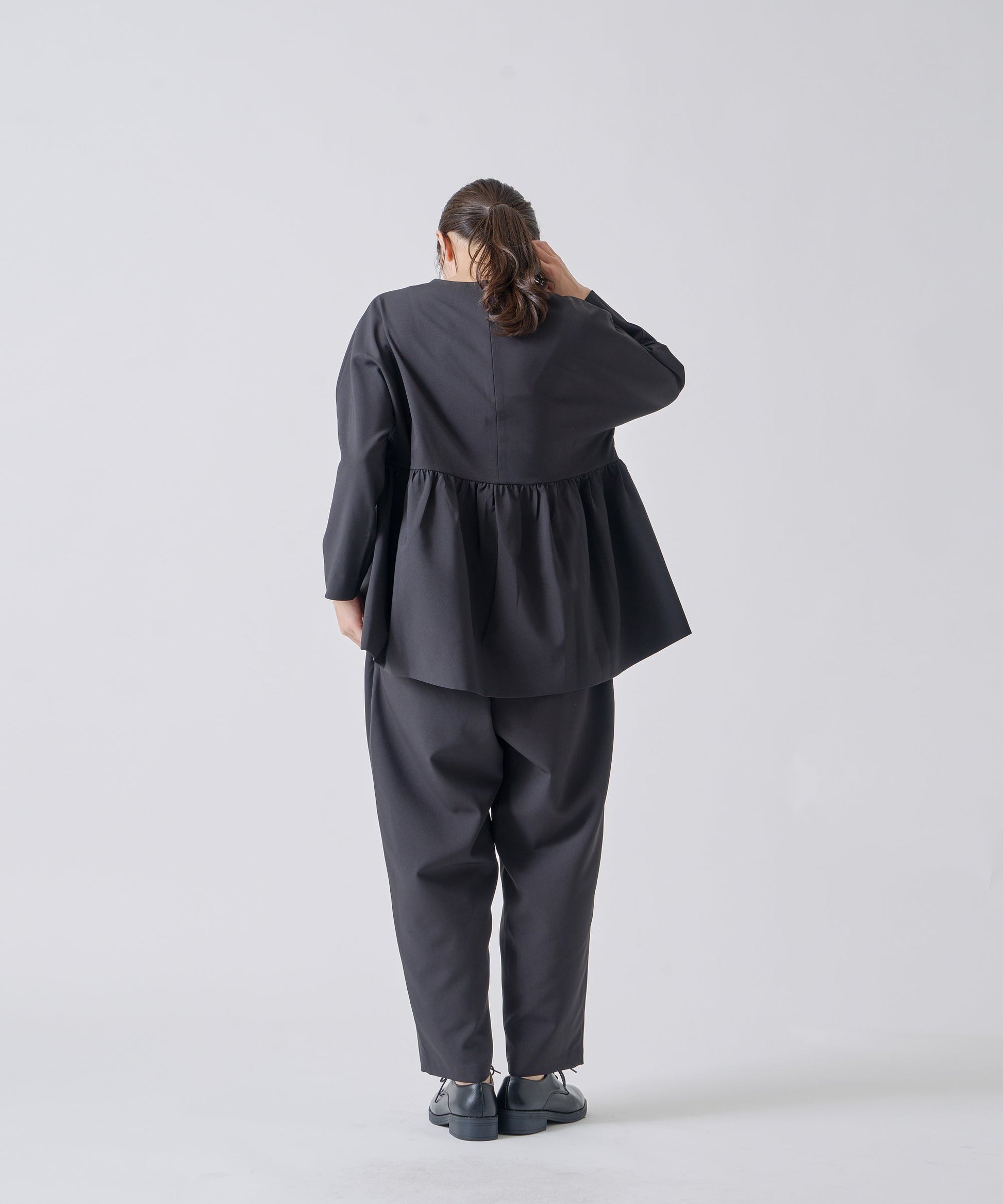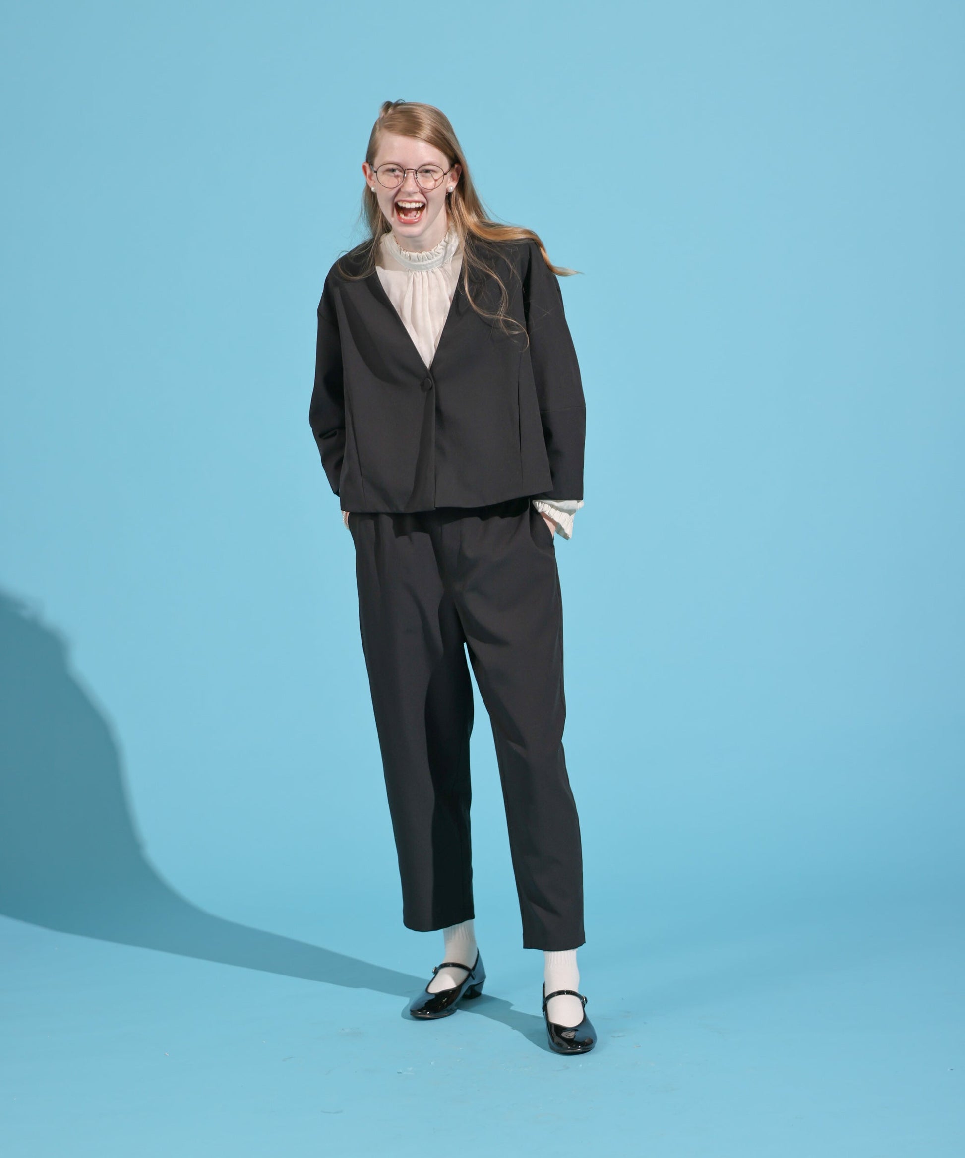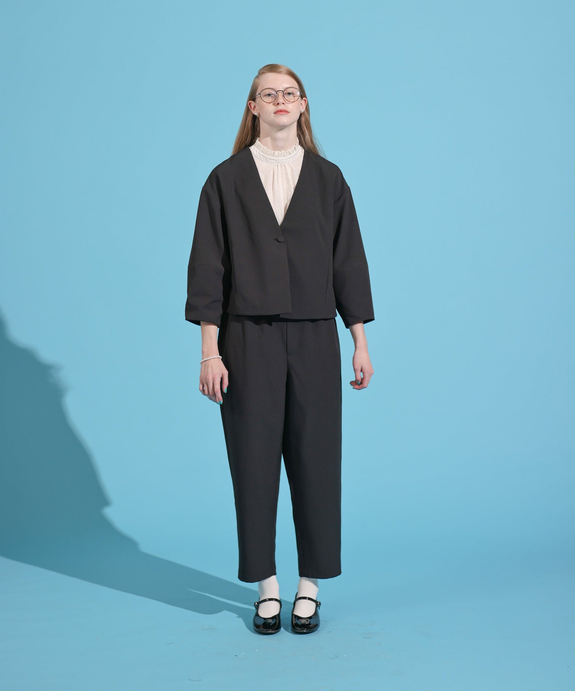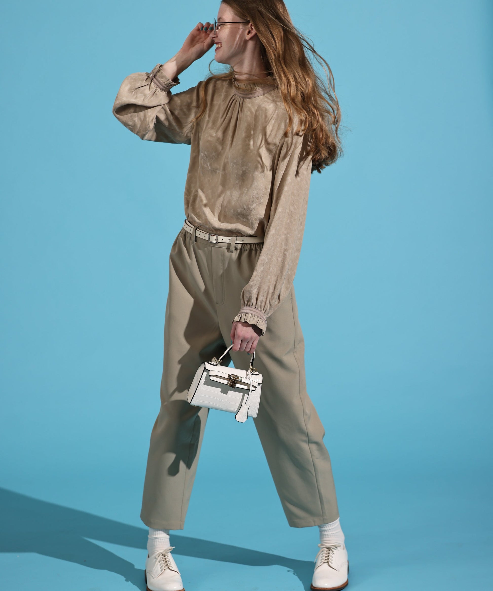 同素材のジャケットやプルオーバートップスに合わせてオケージョンシーンにはもちろんのこと、オフィスコーデや、デイリー使いにも重宝します。