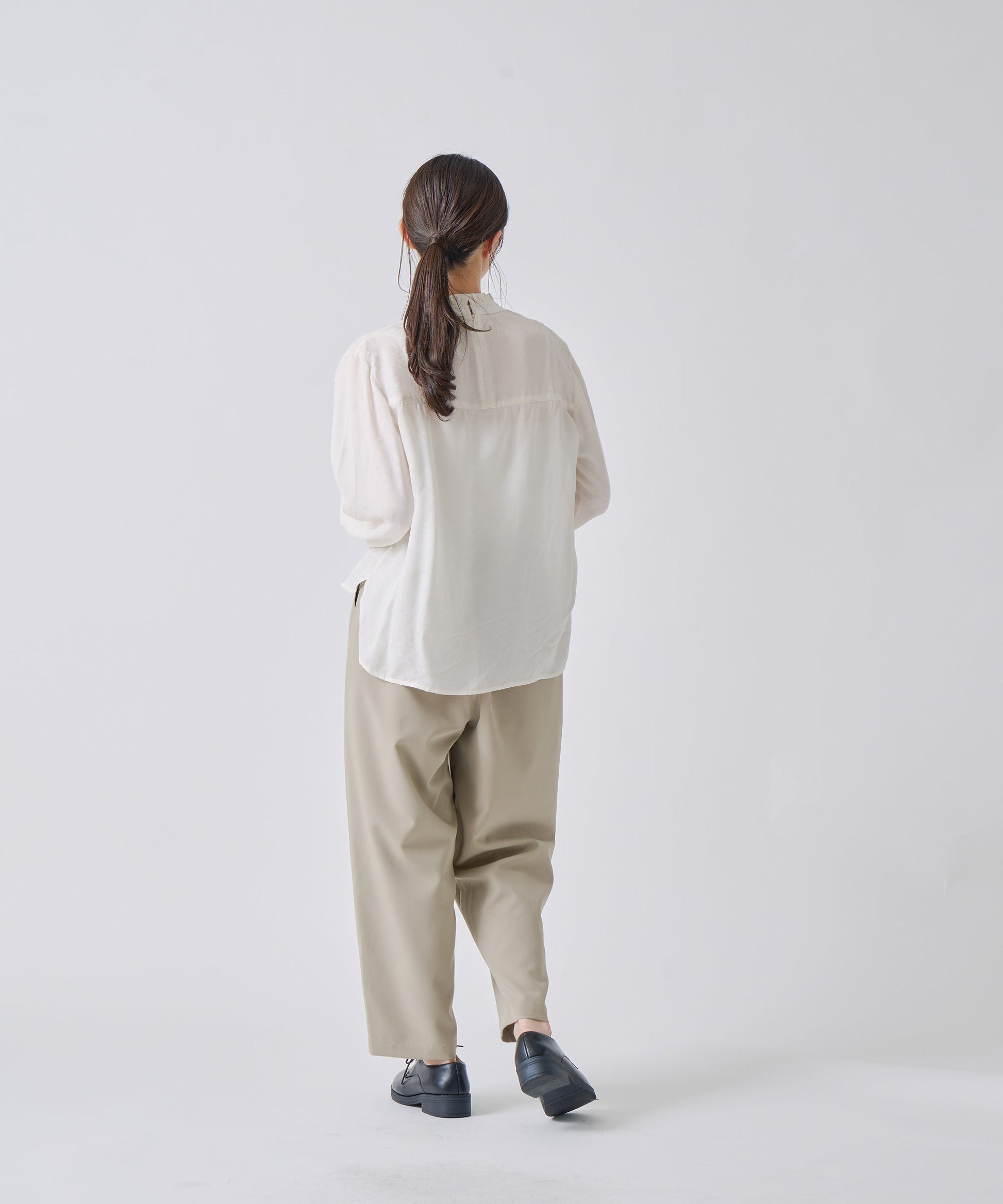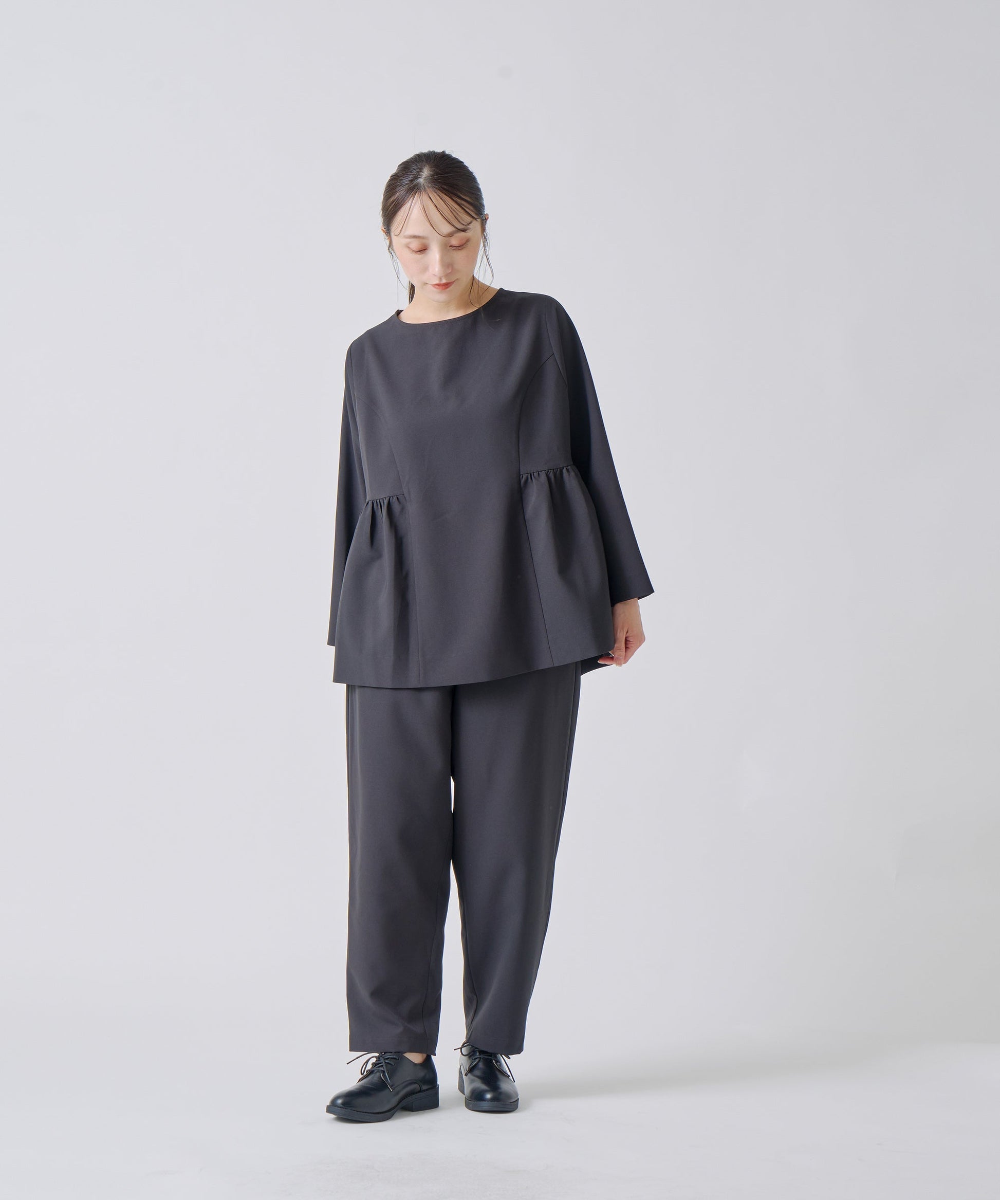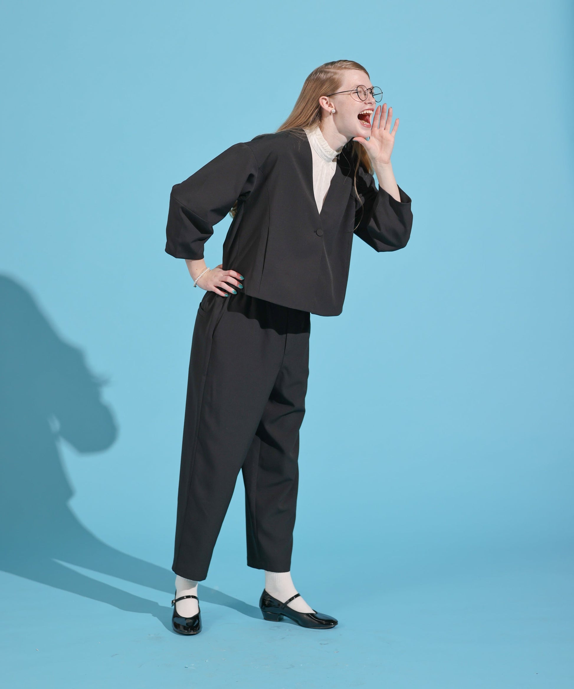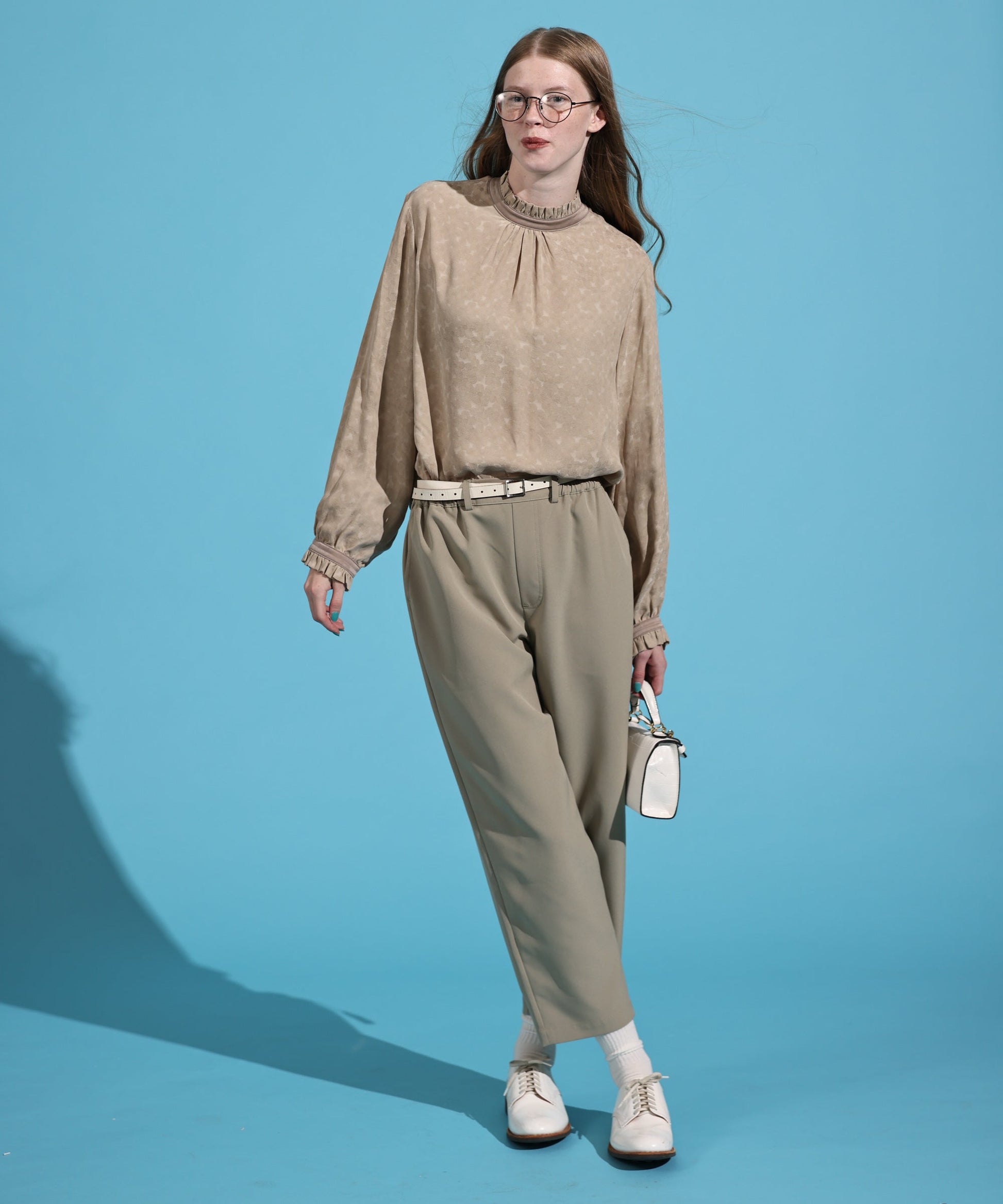 同素材のジャケットやプルオーバートップスに合わせてオケージョンシーンにはもちろんのこと、オフィスコーデや、デイリー使いにも重宝します。
