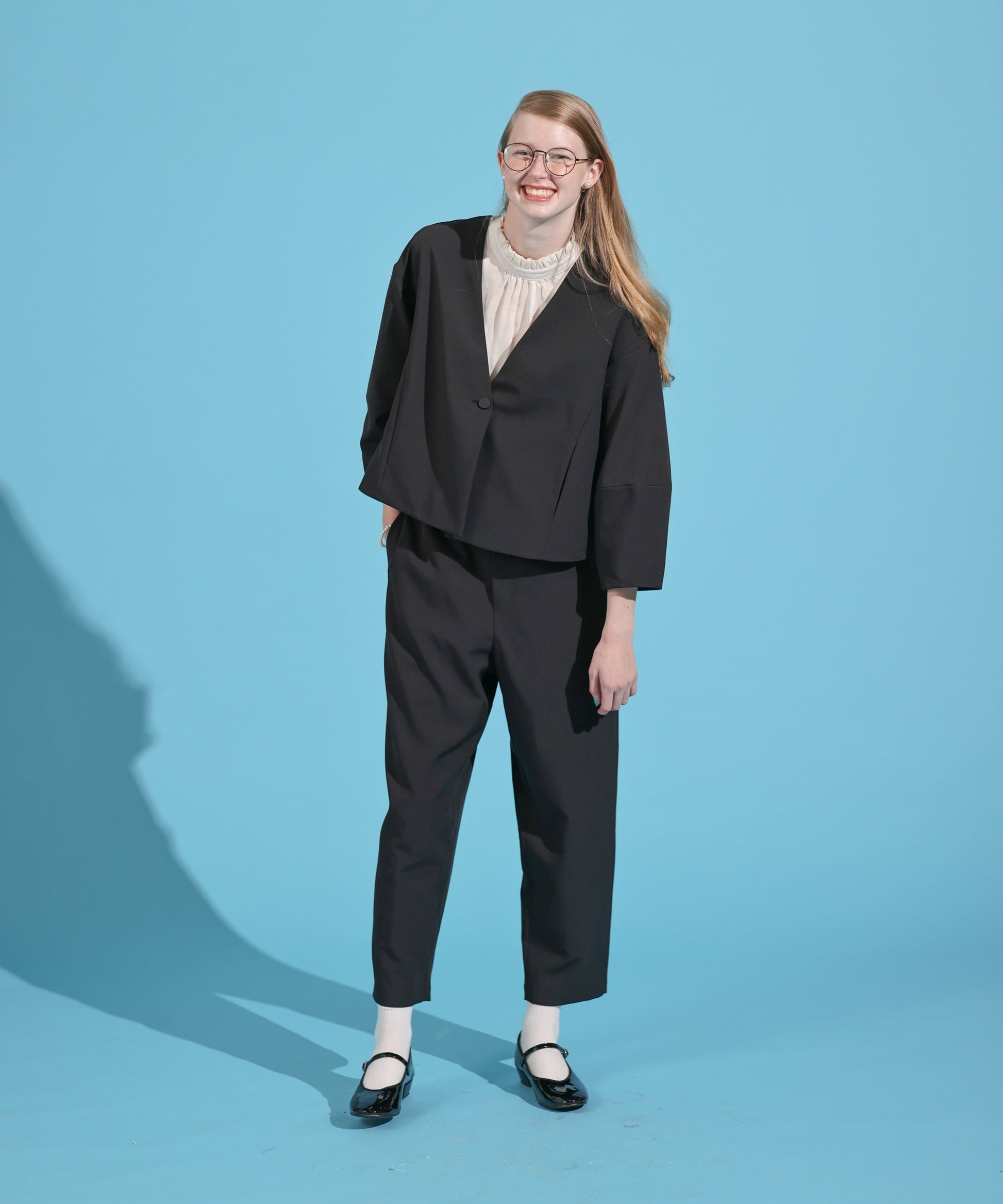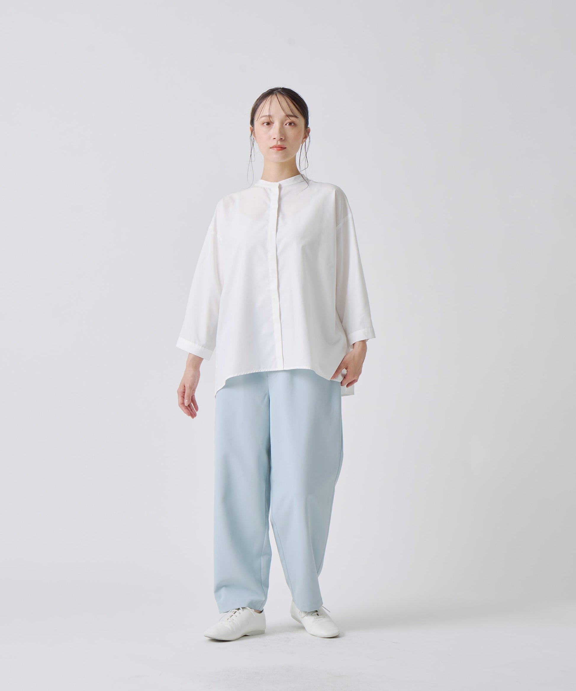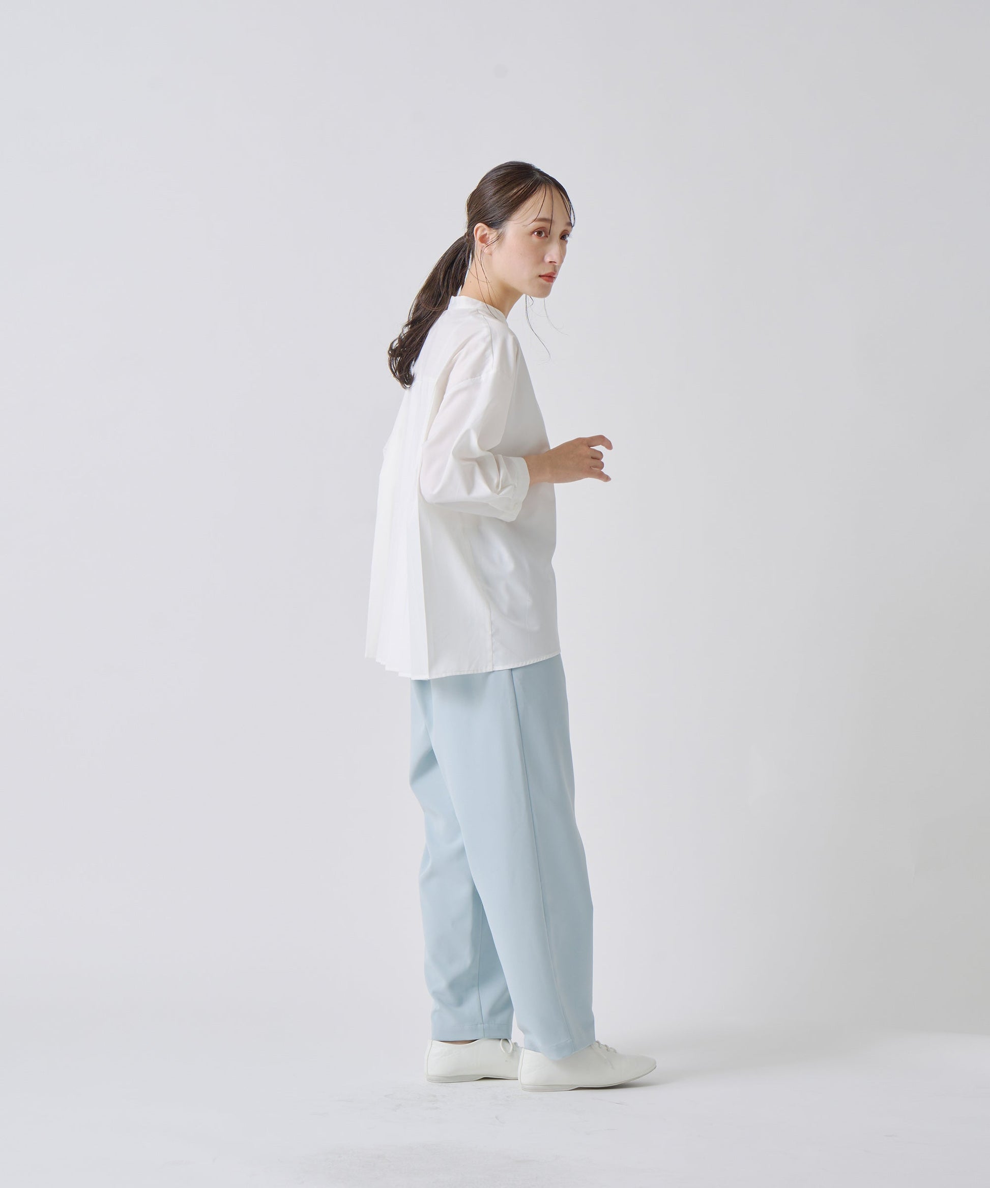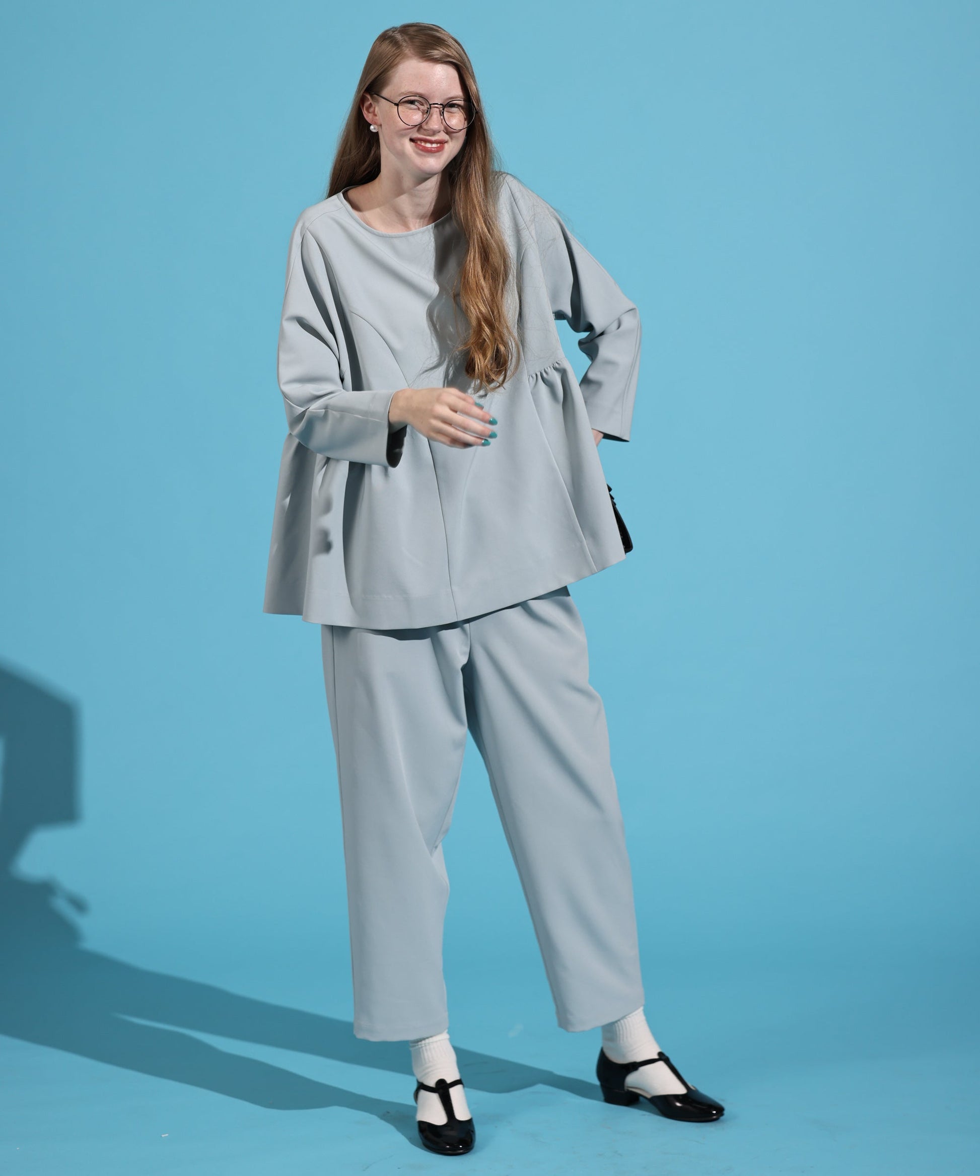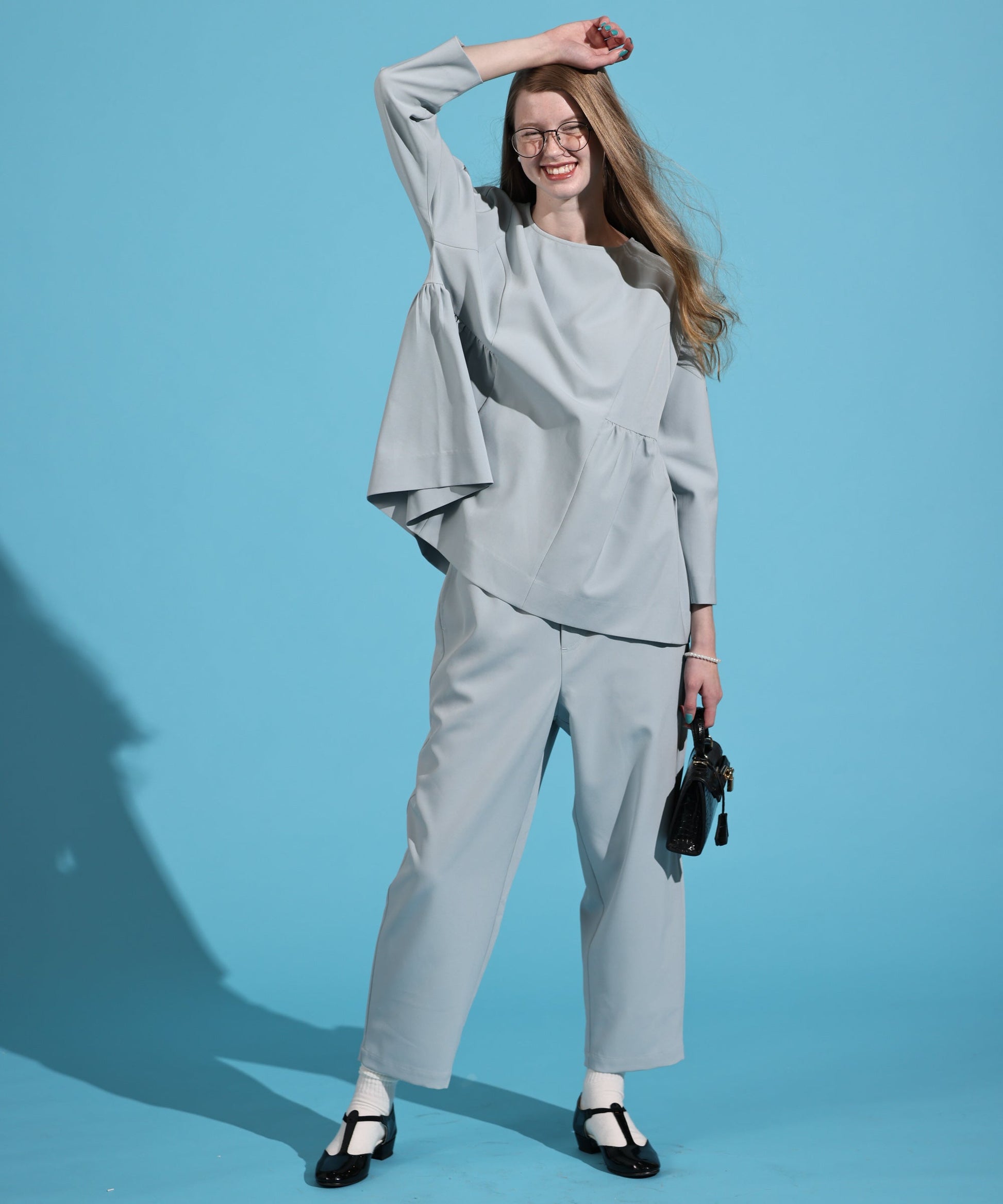 同素材のジャケットやプルオーバートップスに合わせてオケージョンシーンにはもちろんのこと、オフィスコーデや、デイリー使いにも重宝します。