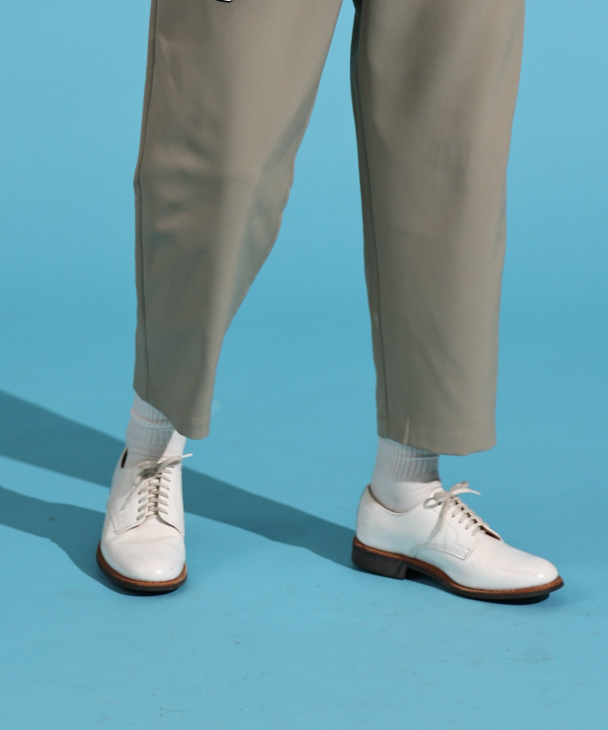 腿周りにゆとりを持たせながら、裾に向かって細くなるテーパードシルエットが美しいアイテムです。