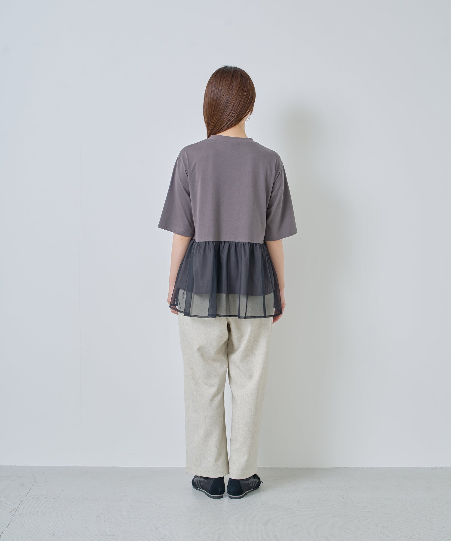 ウエストはオールゴムなので、イージーな着心地が嬉しい1枚です。