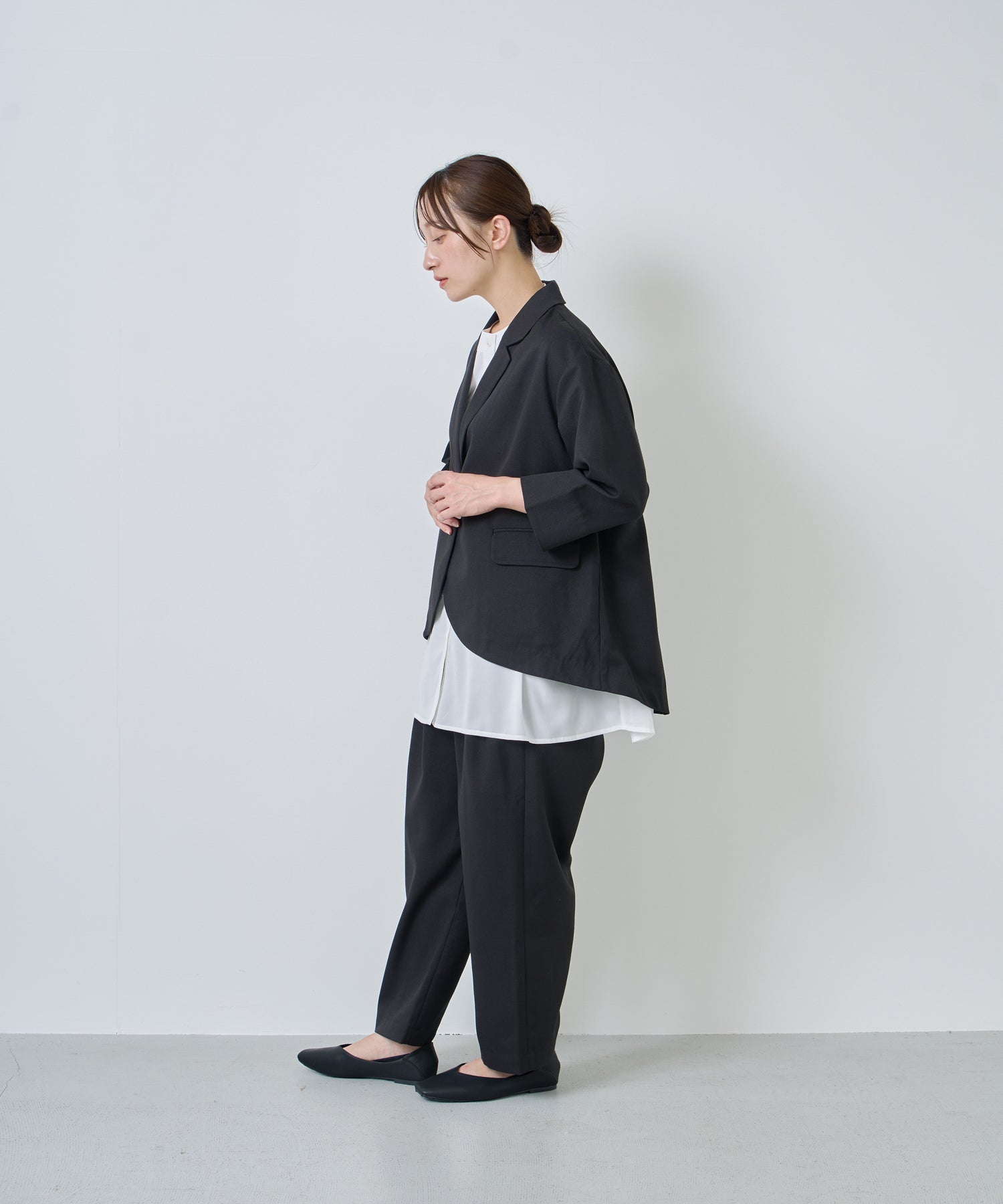 共通素材のジャケット(LKL26HJK2087)と合わせて、オフィスシーンやオケージョンでも着用いただけます。