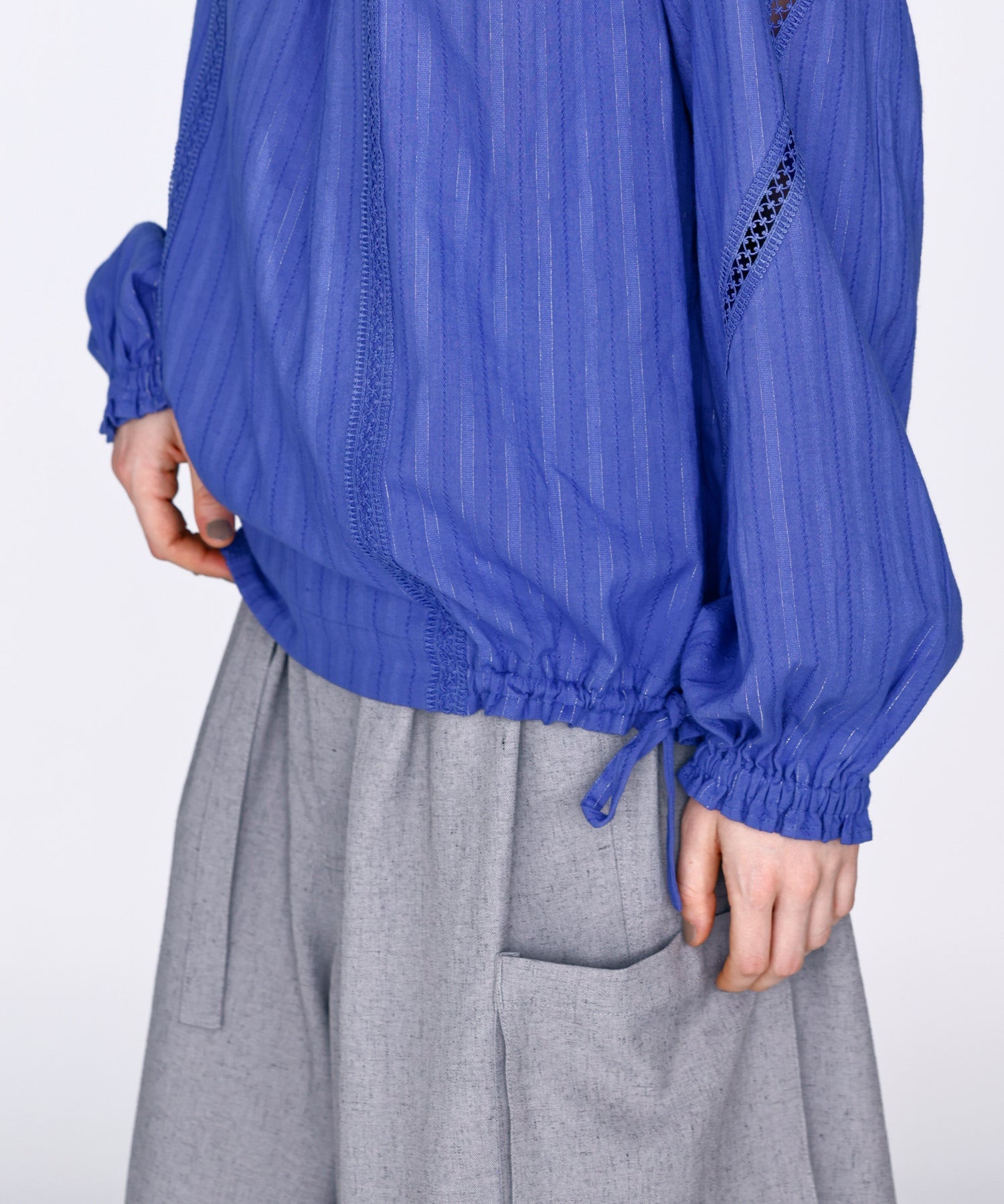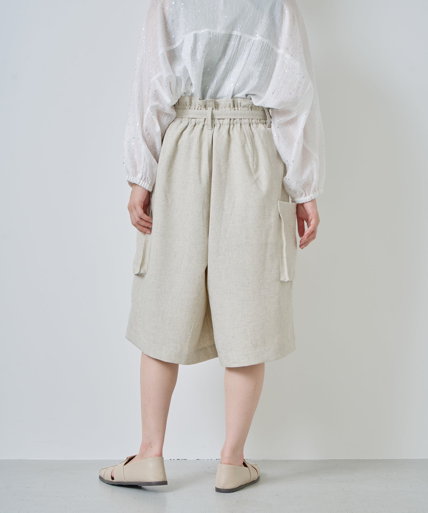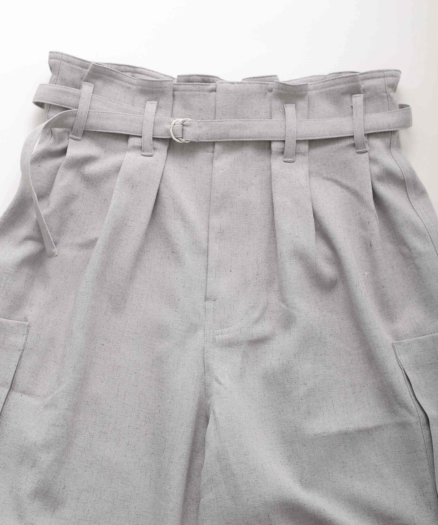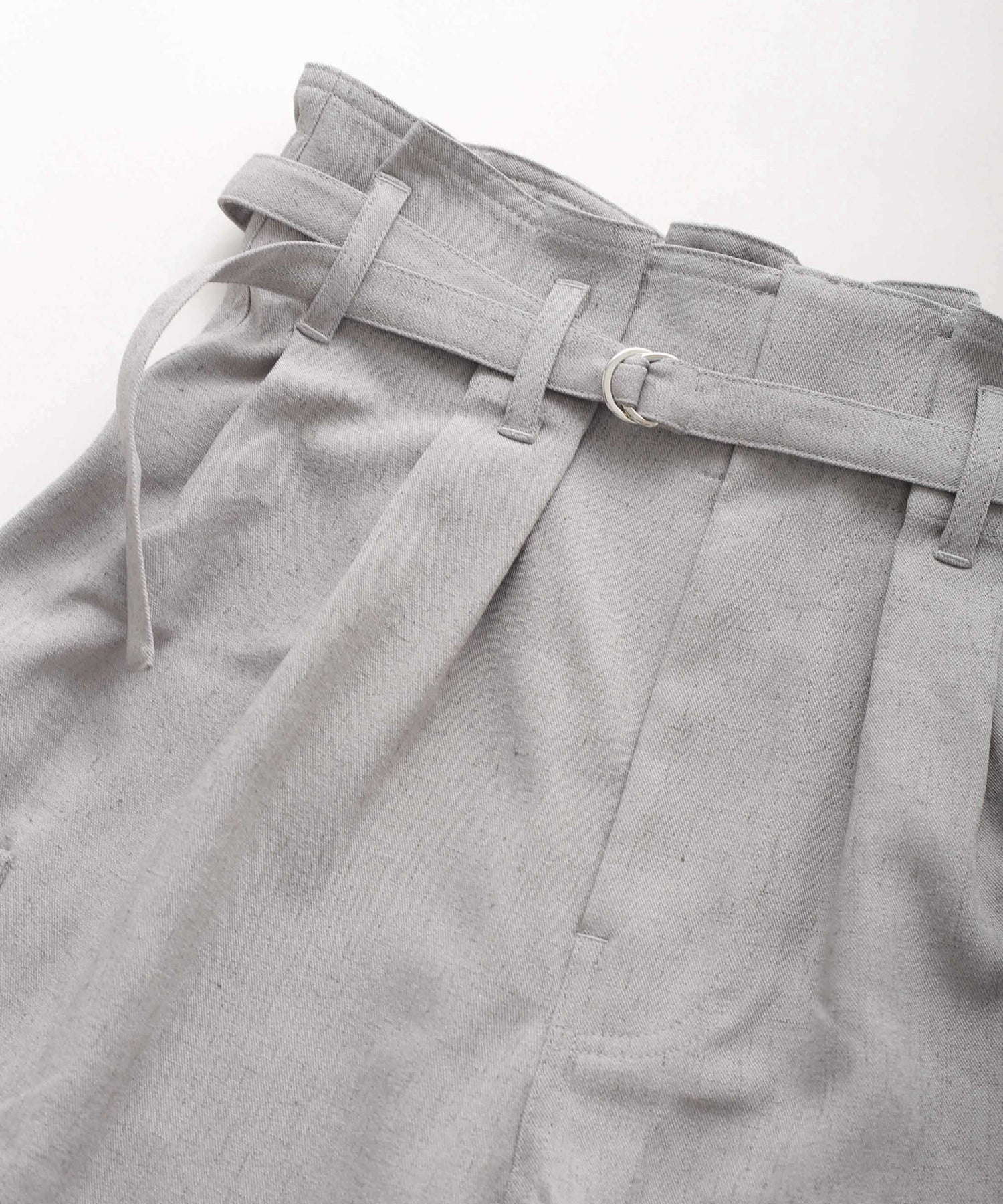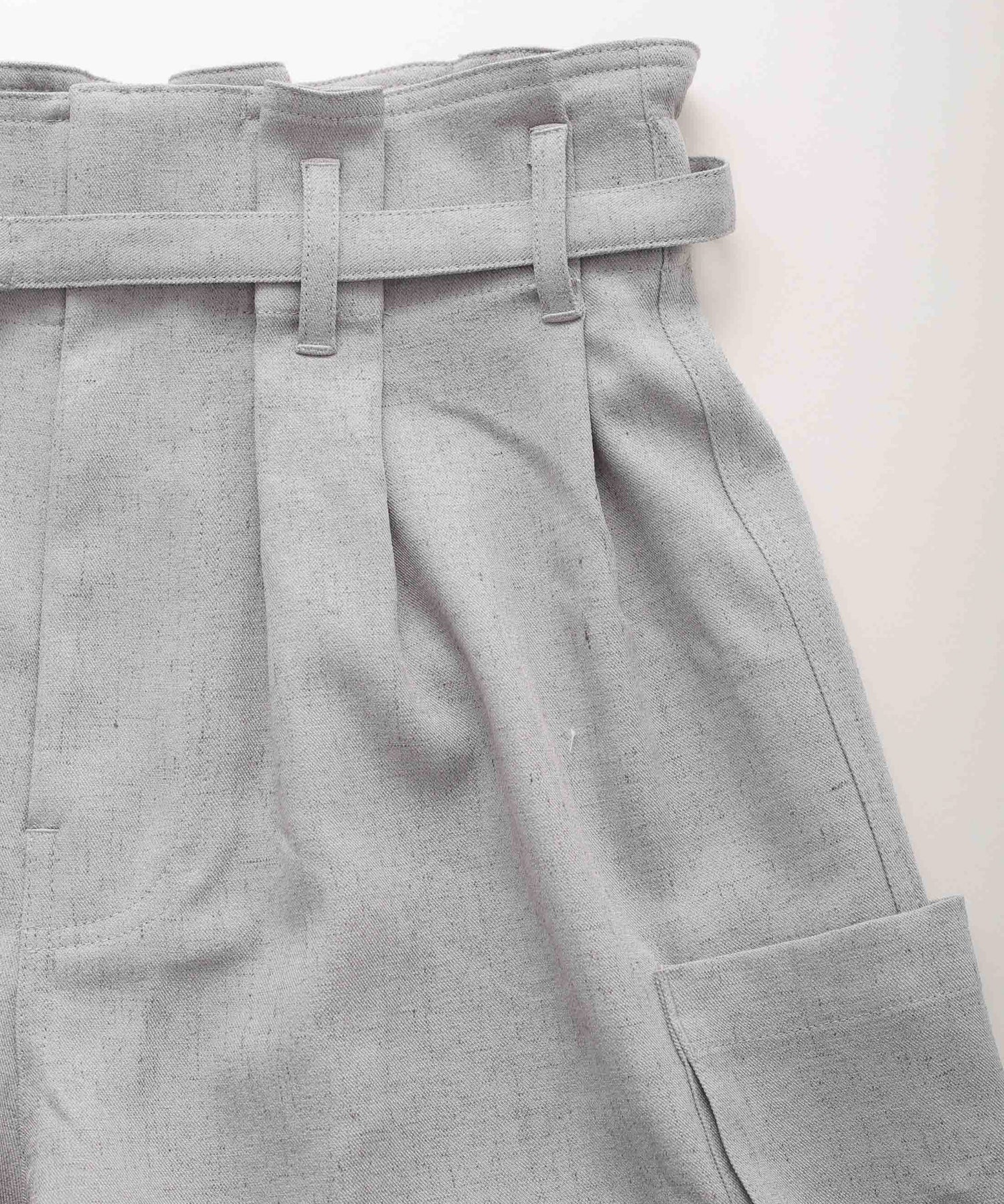 フロントはタック、後ろはゴムで仕上たデザインのあるウエストがポイント。