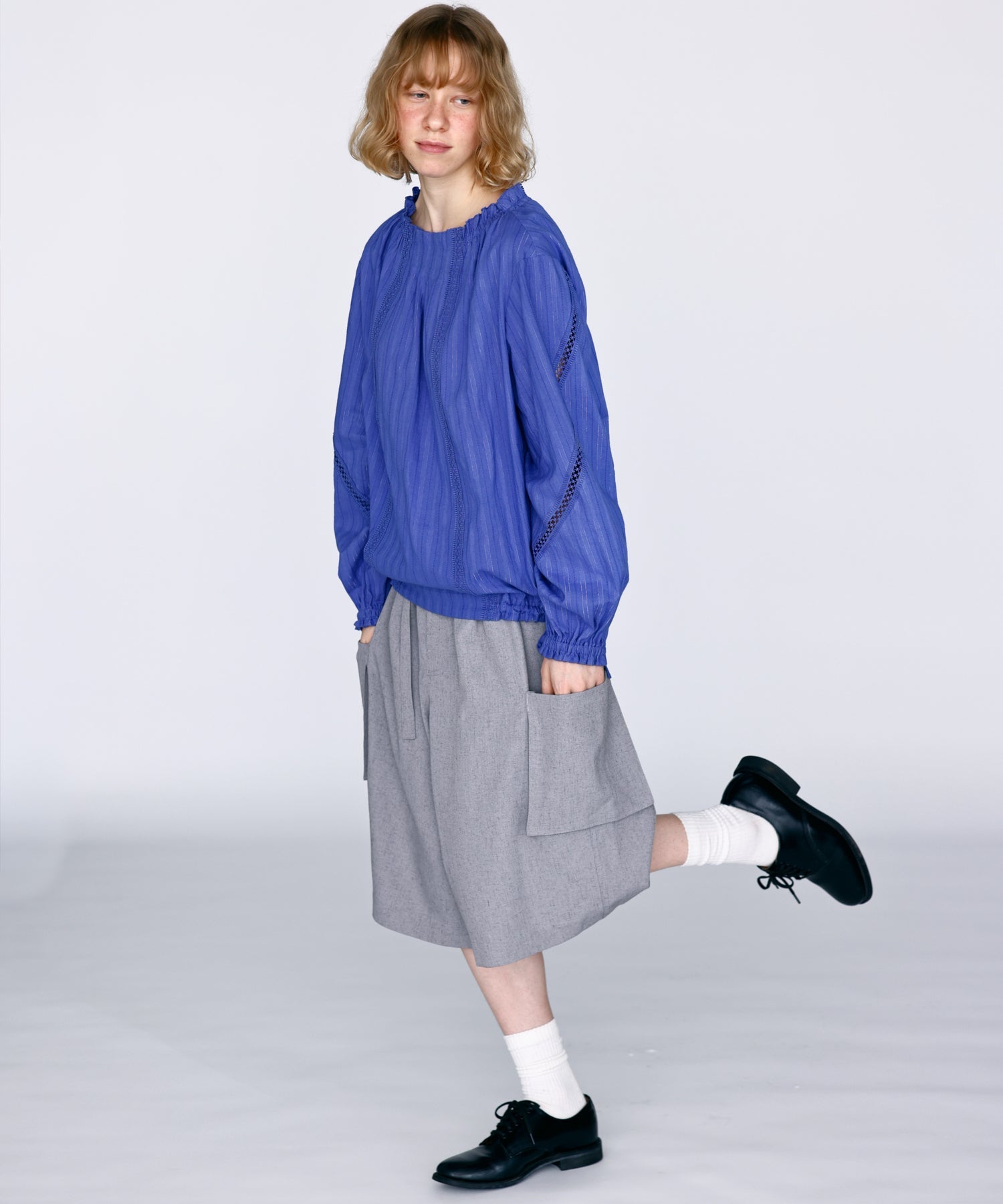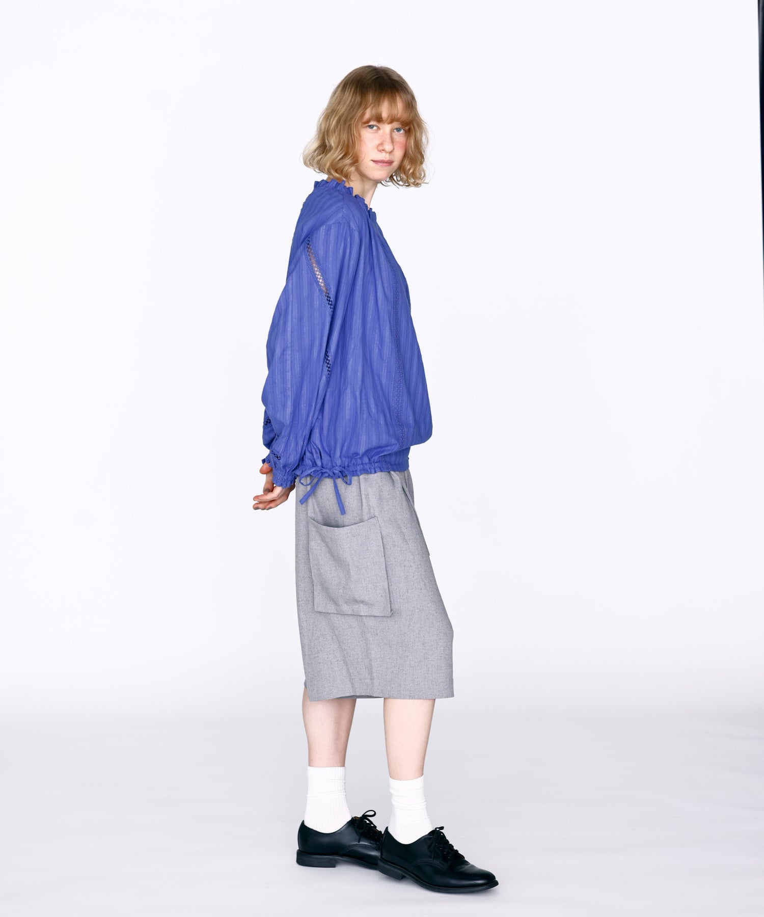ミドル丈のジャケットや落ち感のあるブラウスと合わせるとカジュアルダウンし、大人なスタイリングが完成します。