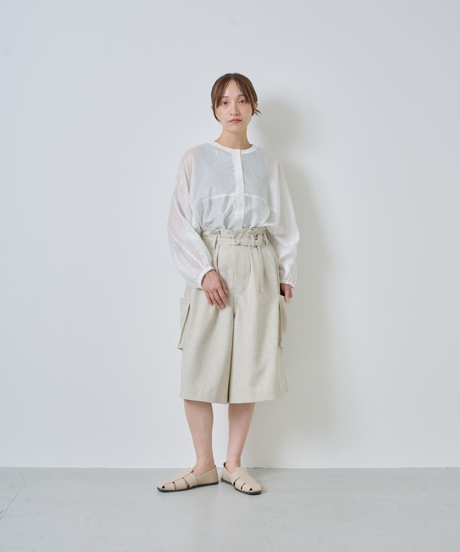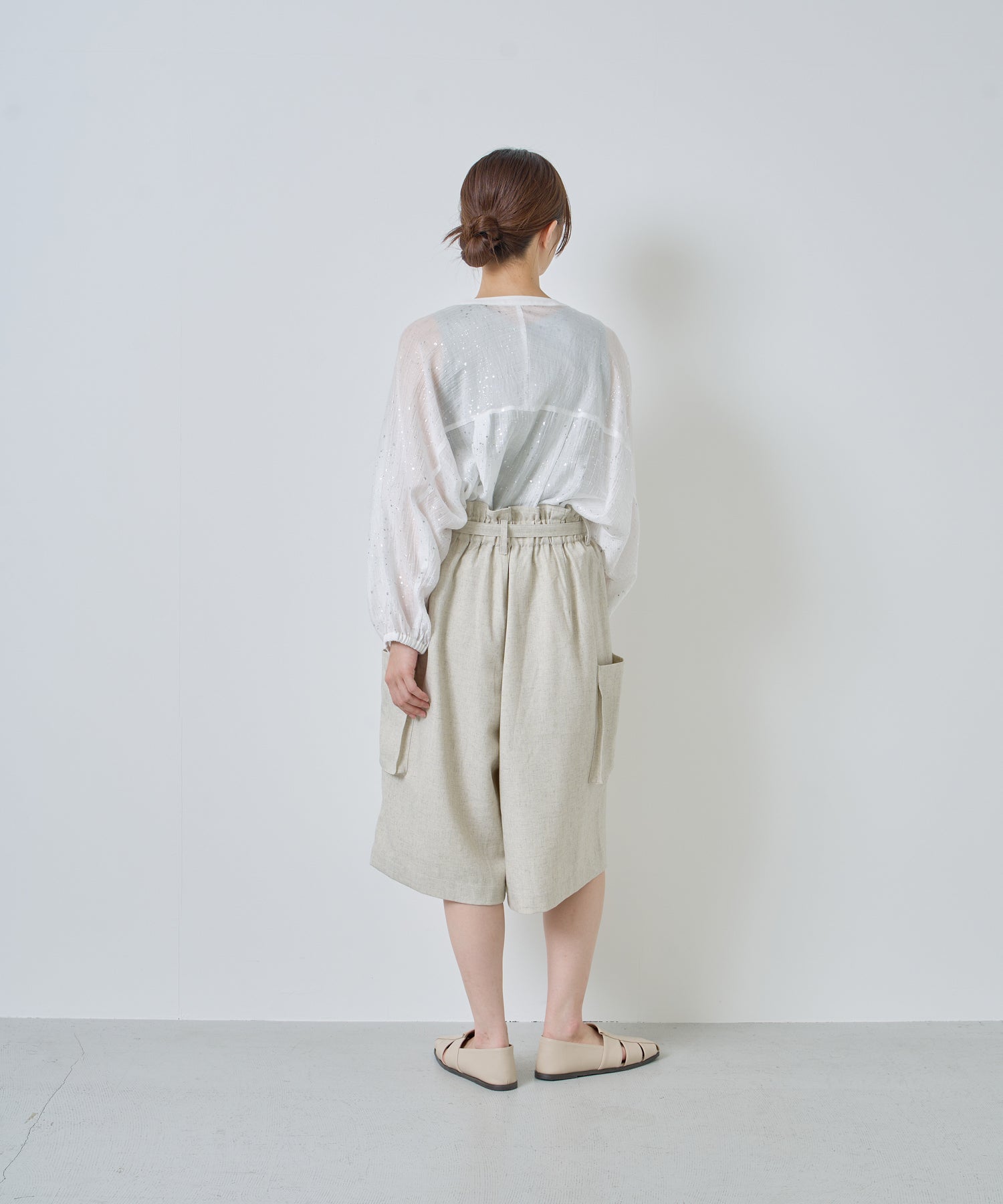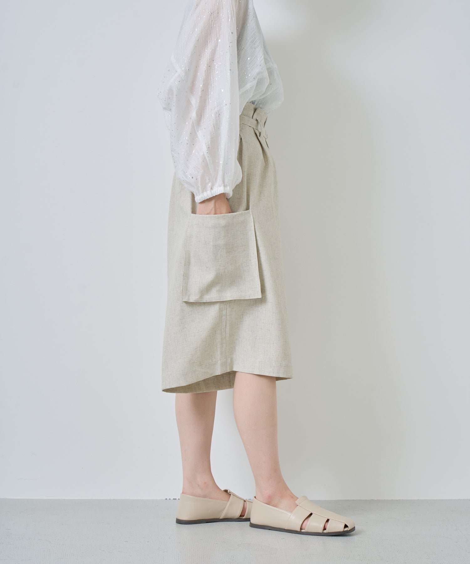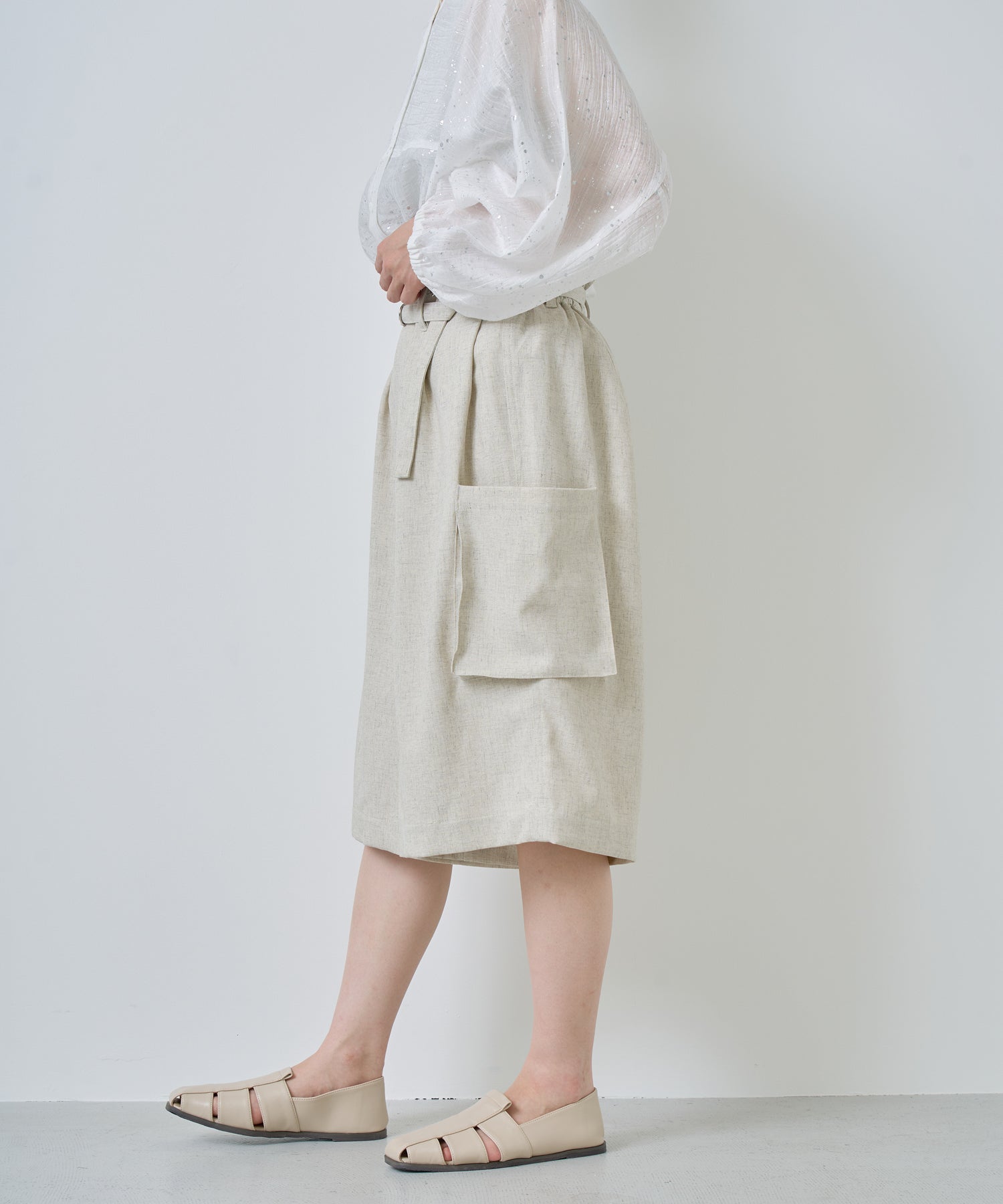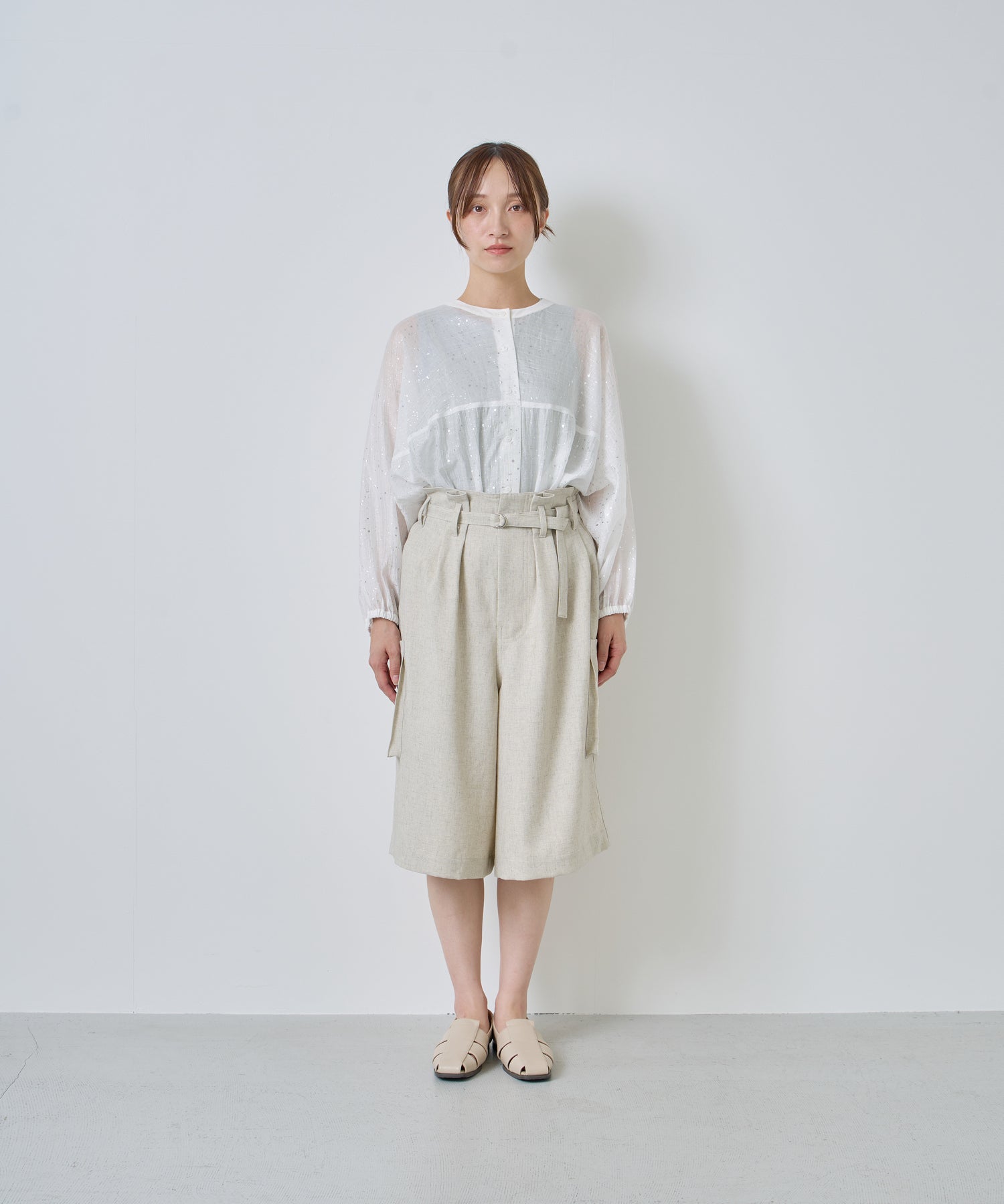 落ち感があり、シワになりにくいリネン混の素材を使用。