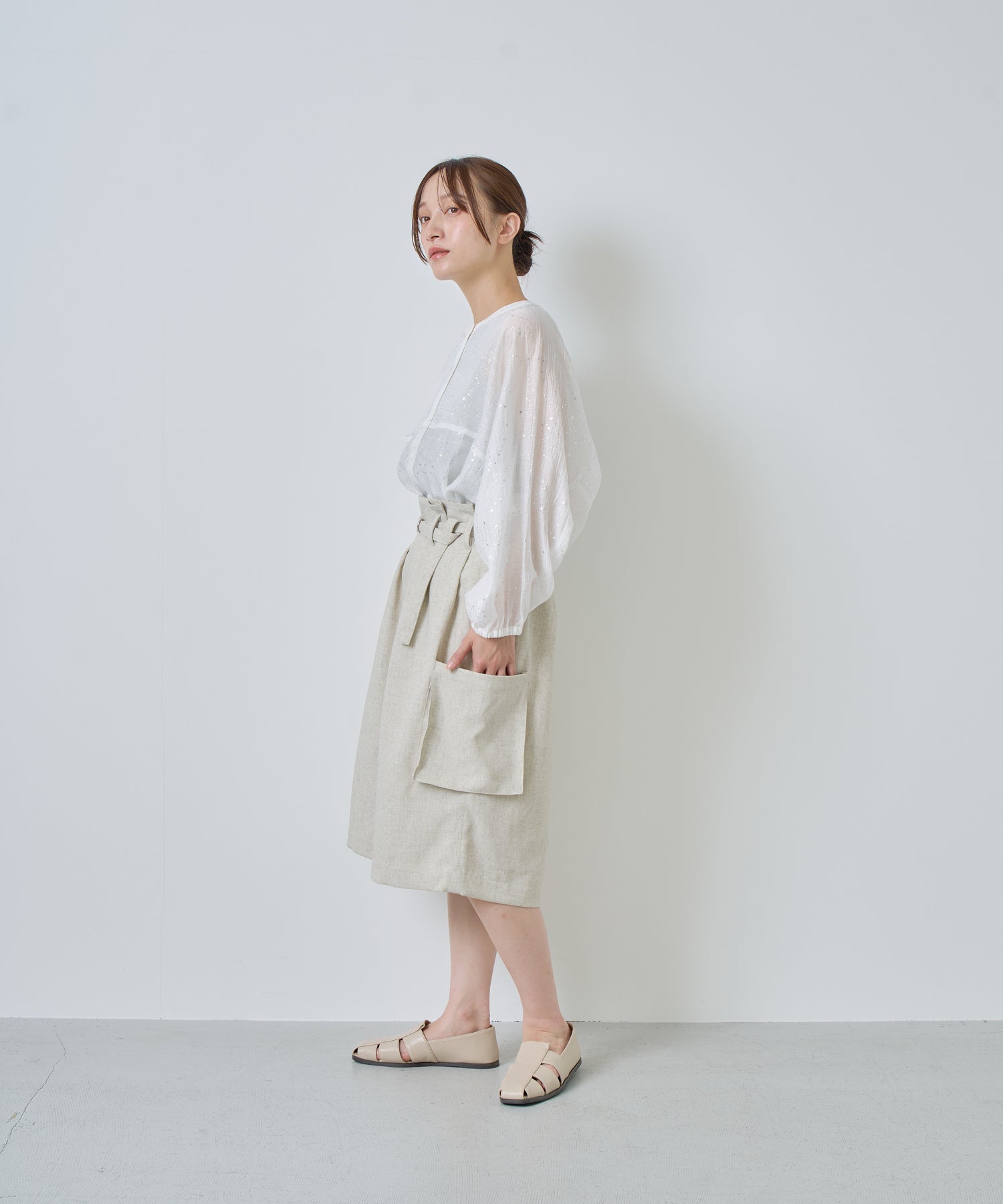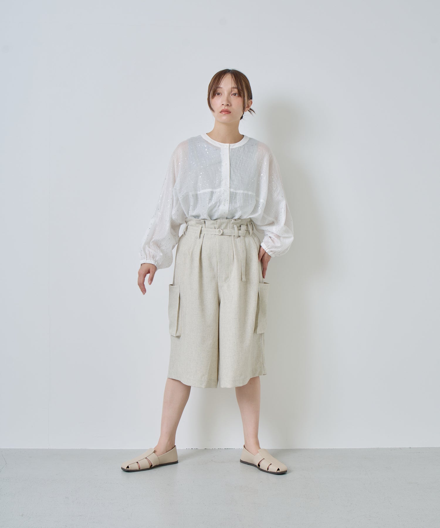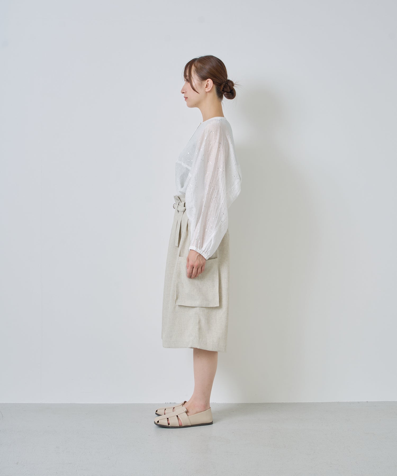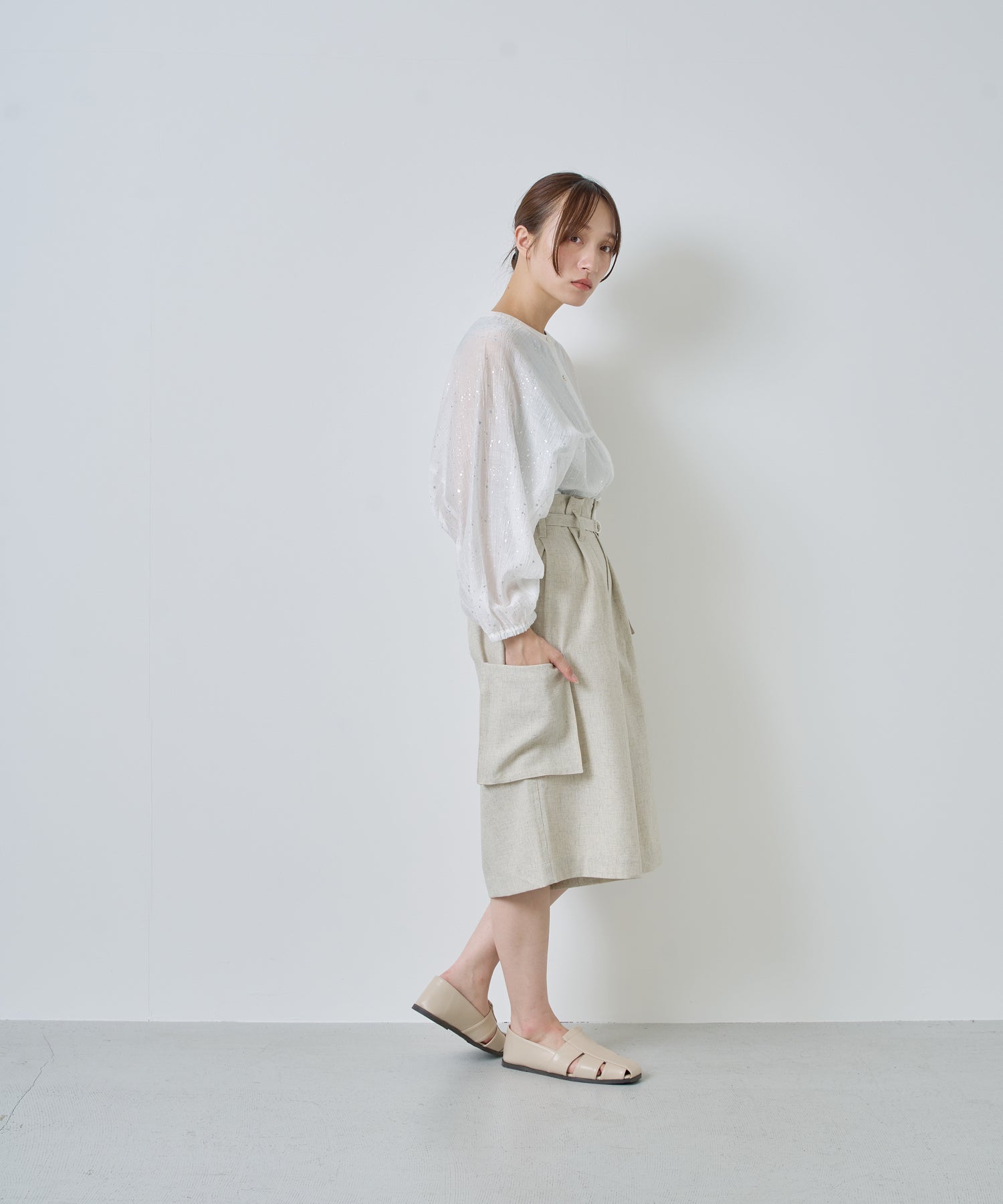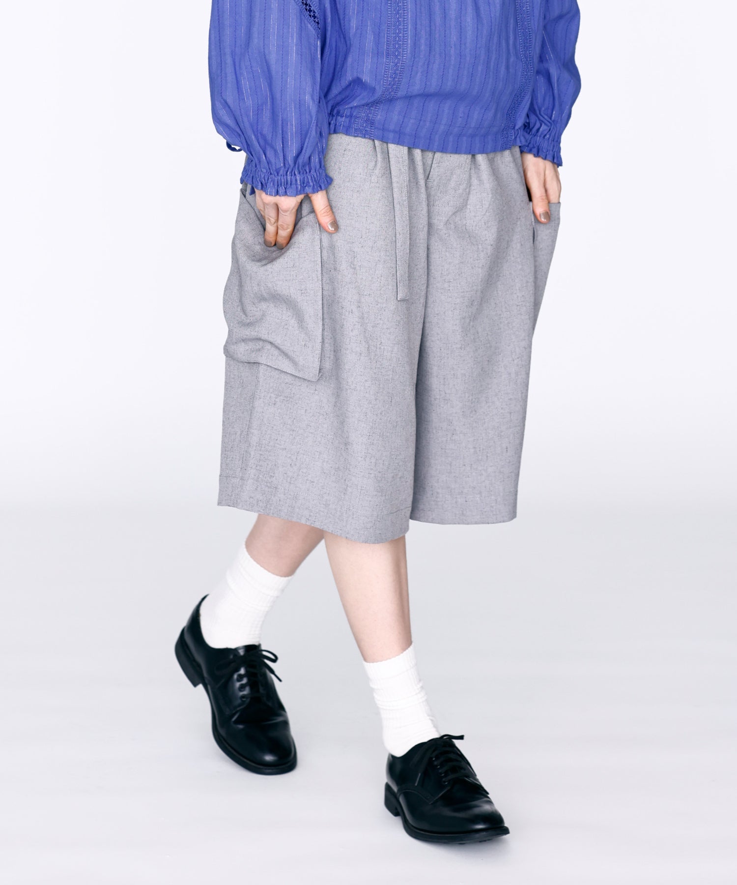 落ち感があり、シワになりにくいリネン混の素材を使用。