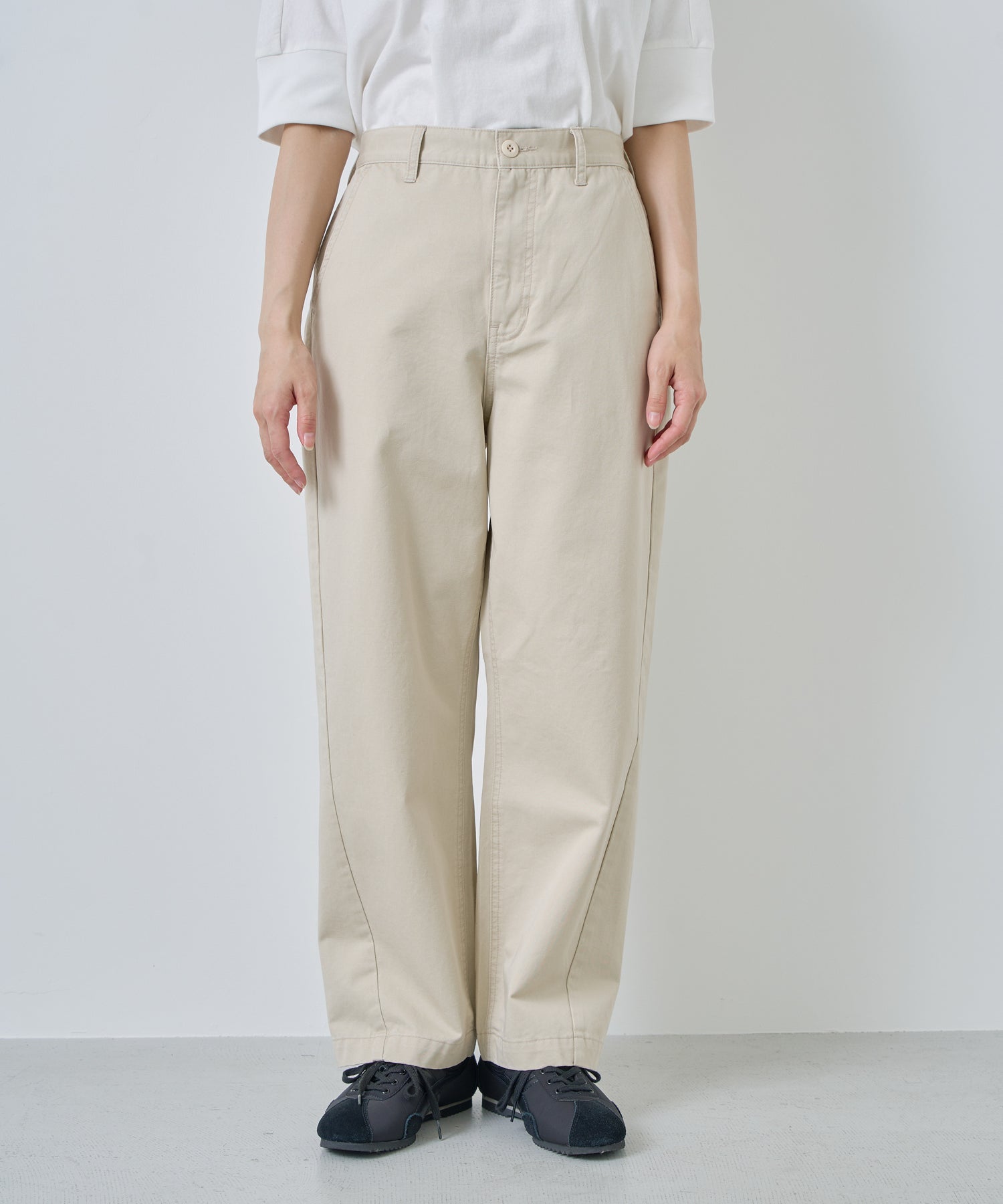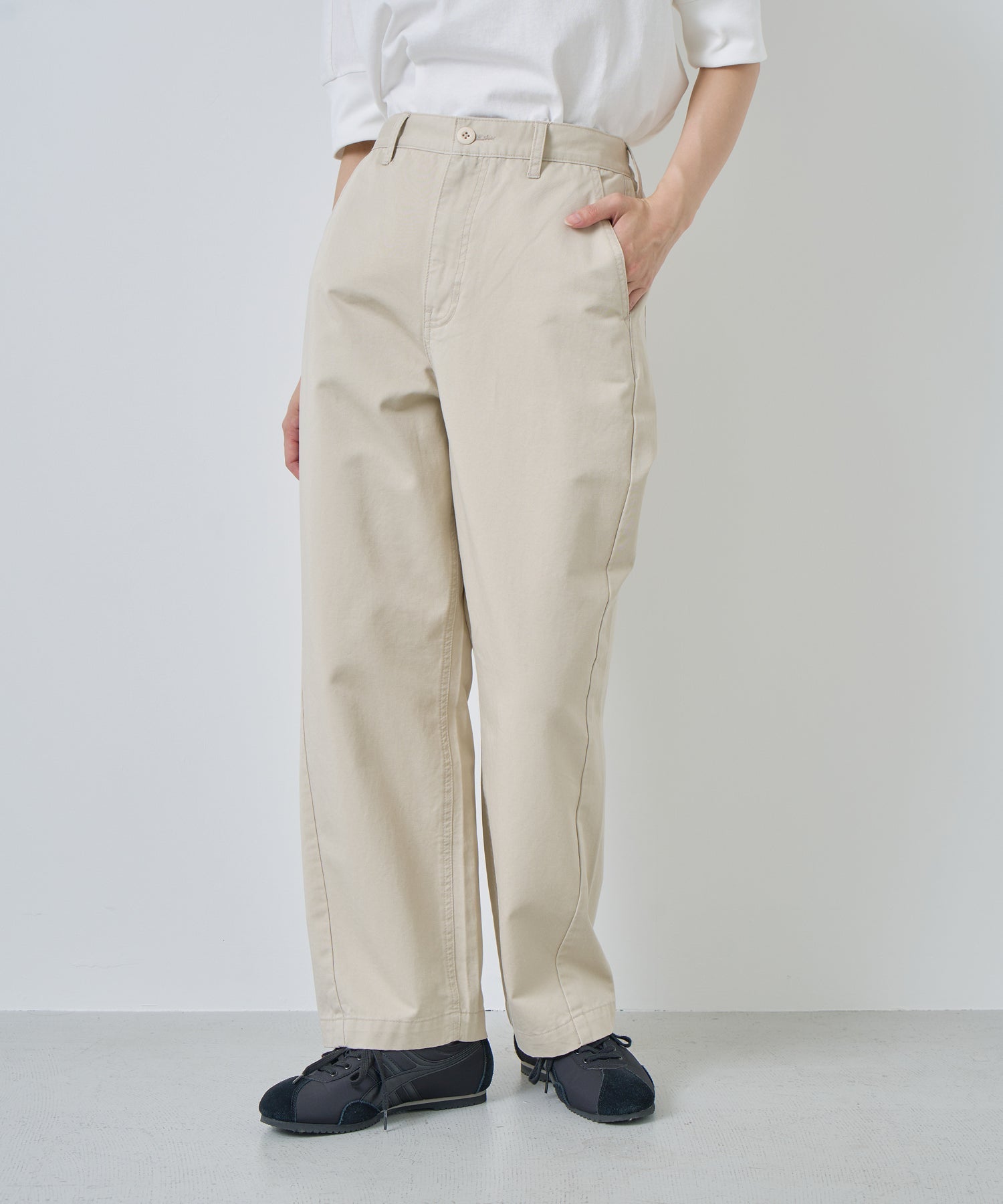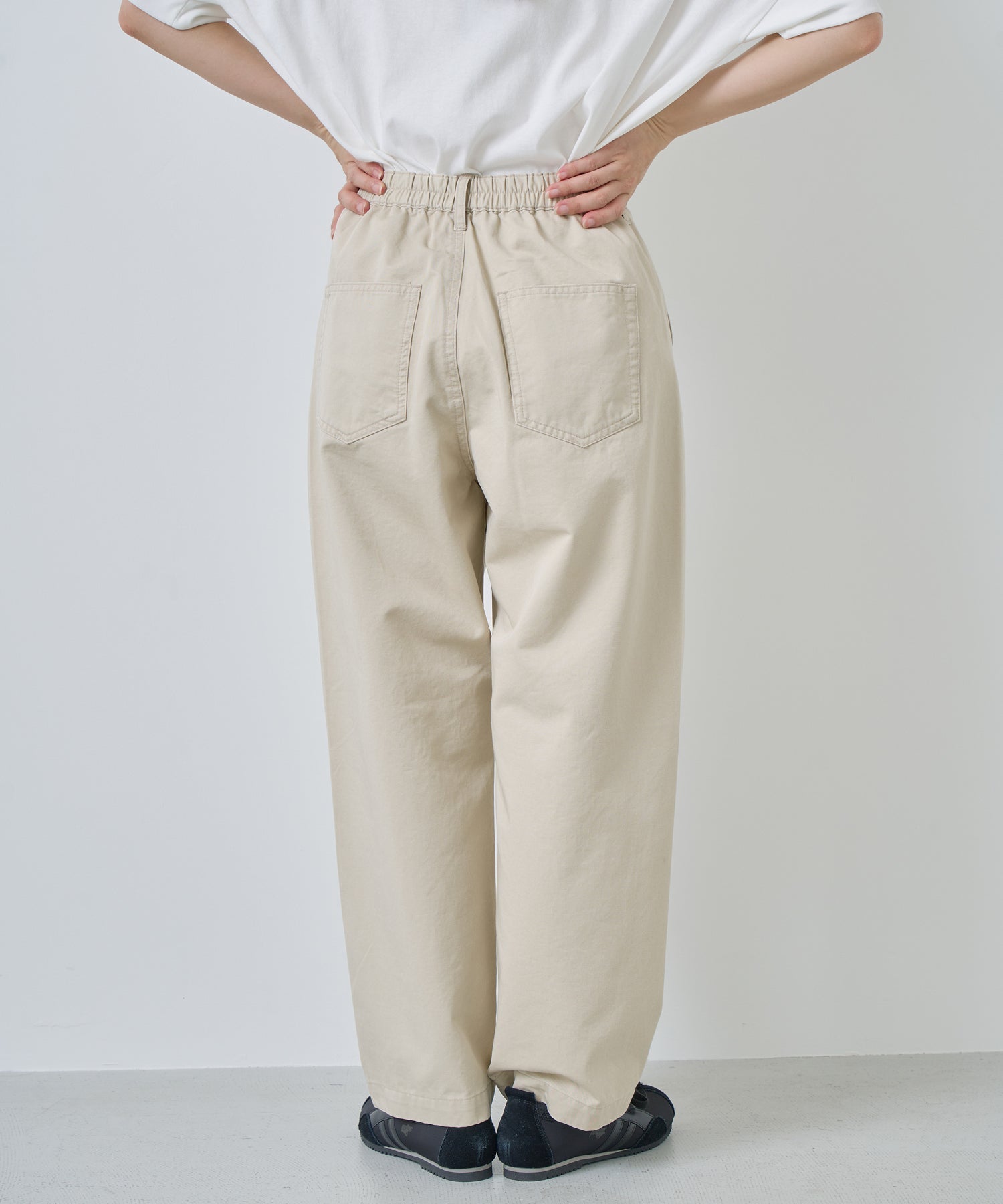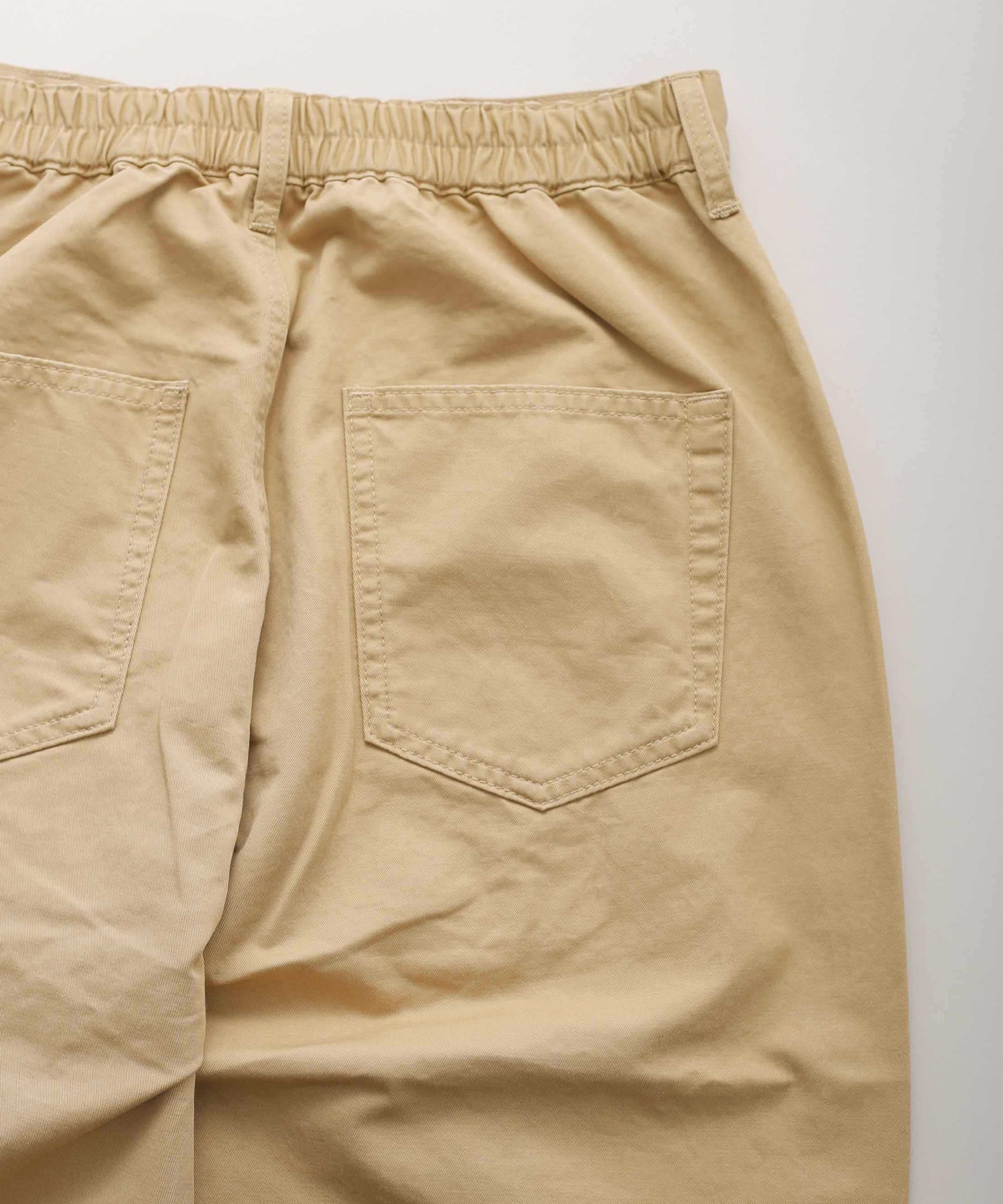 すっきりとしたシルエットですが、サイジングはゆとりを持たせ、後ろウエストはゴムで、イージーな履き心地を実現。