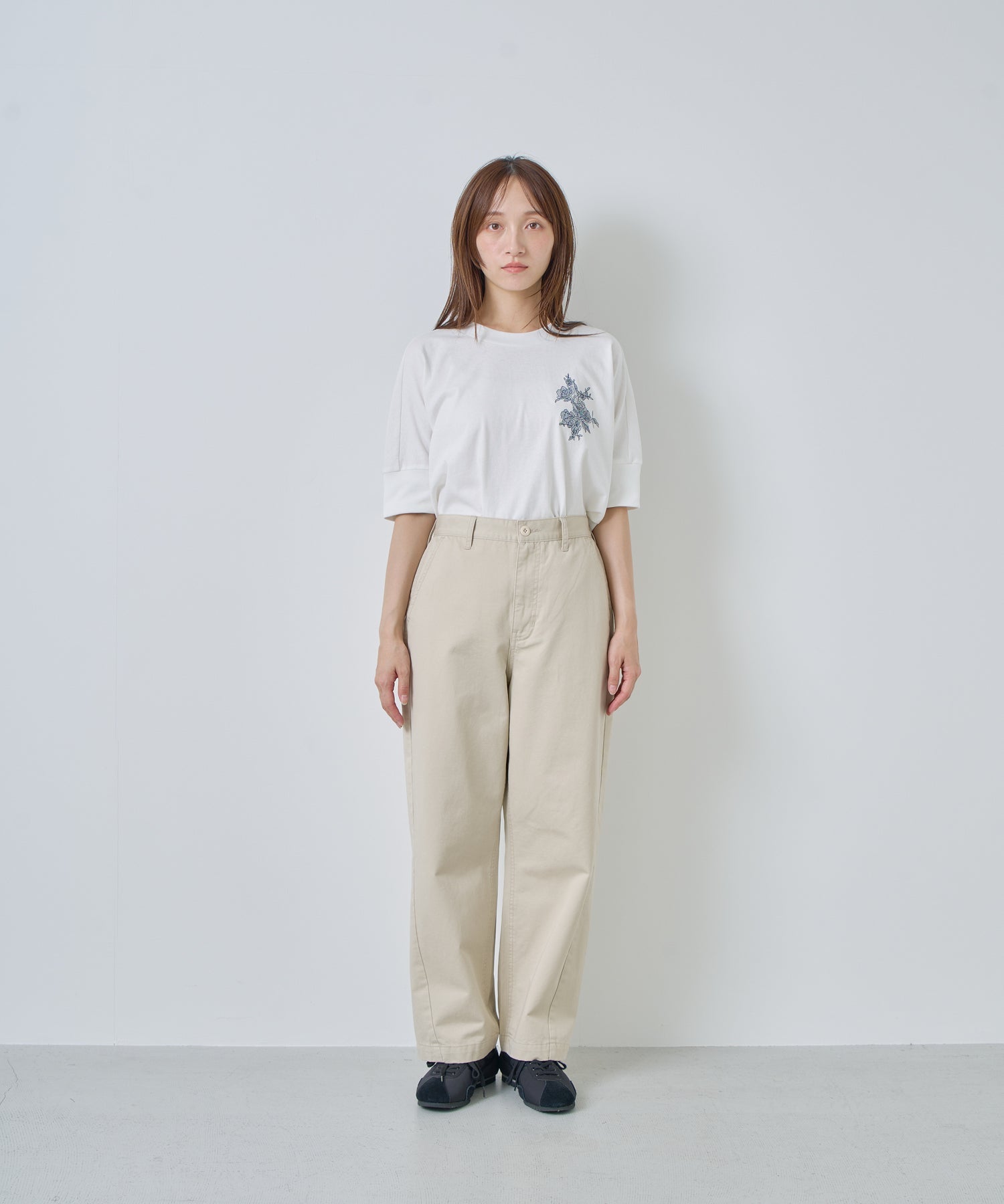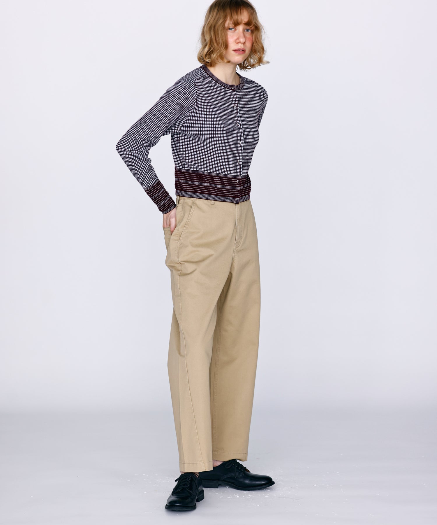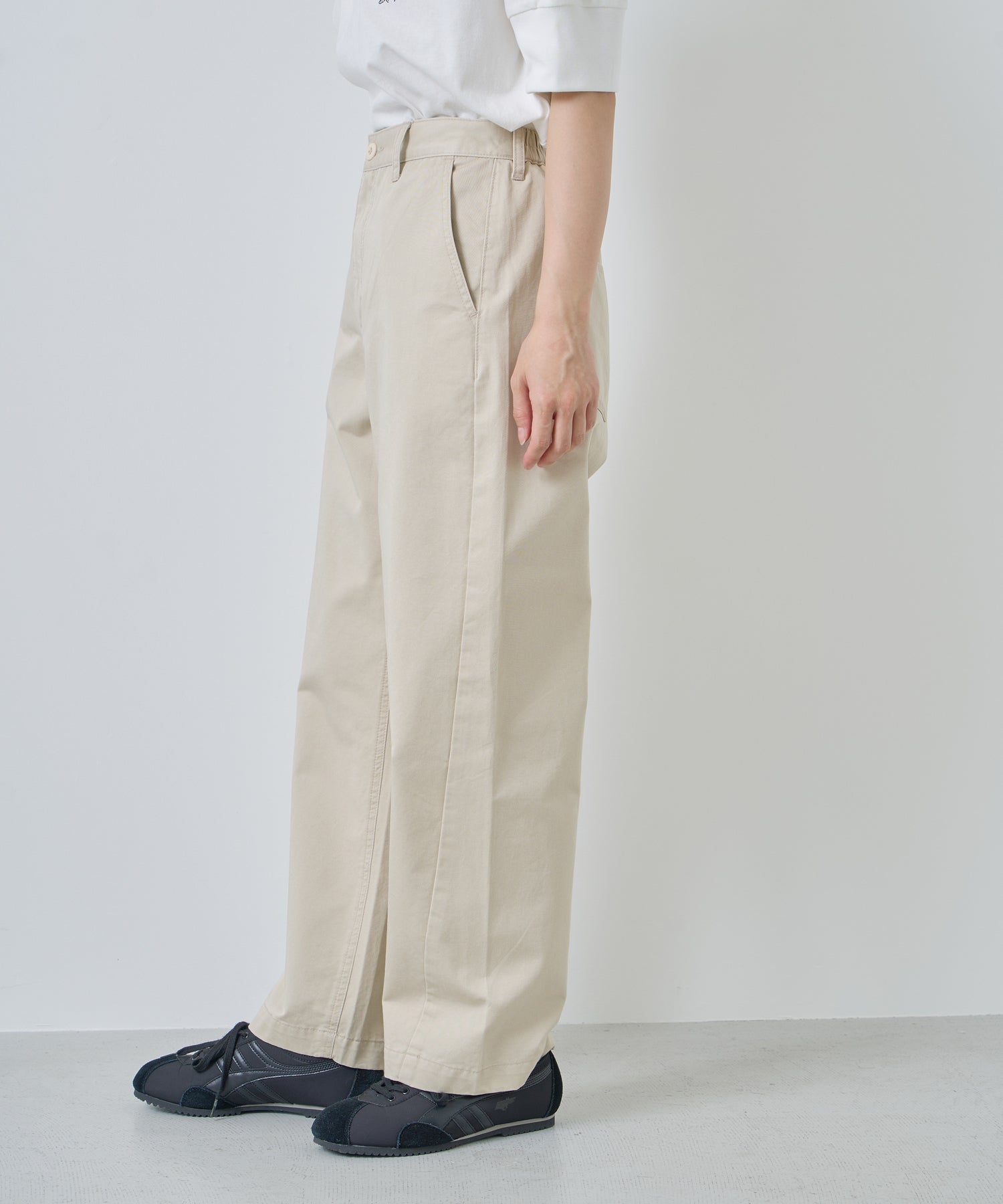 すっきりとしたシルエットですが、サイジングはゆとりを持たせ、後ろウエストはゴムで、イージーな履き心地を実現。