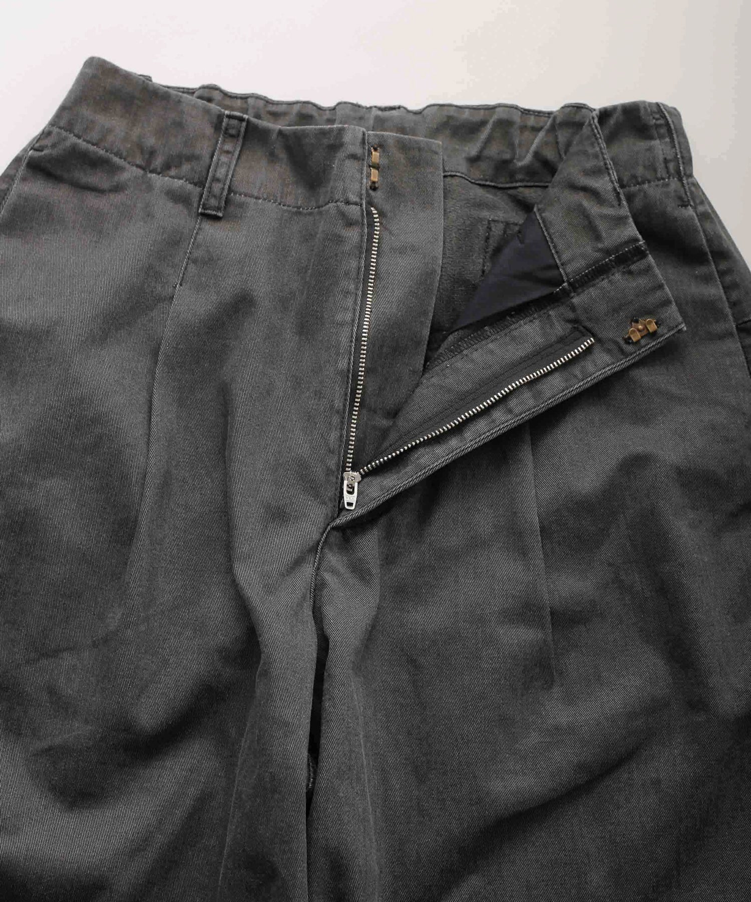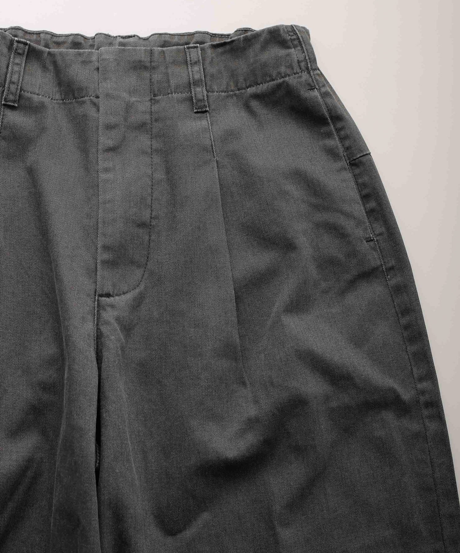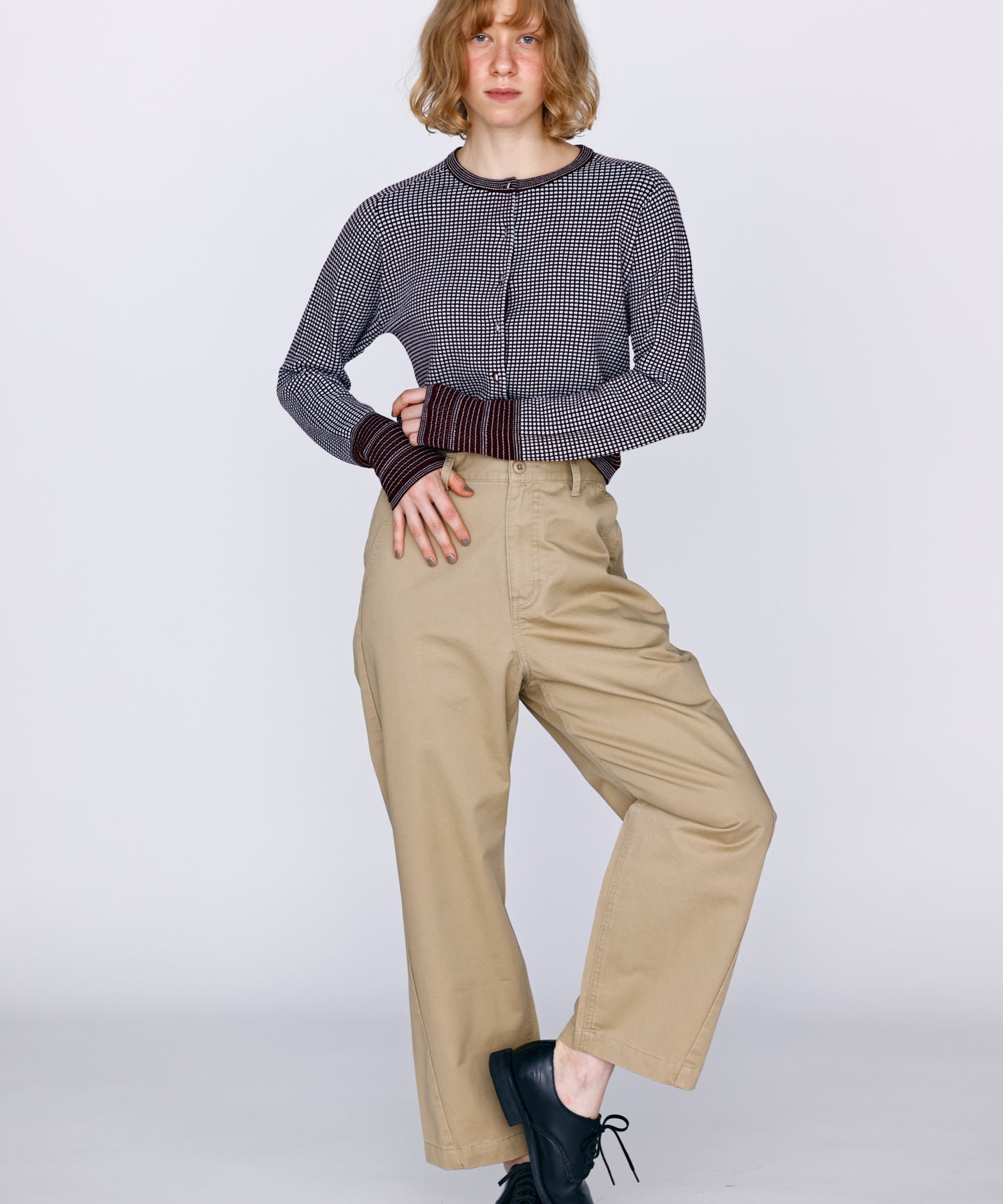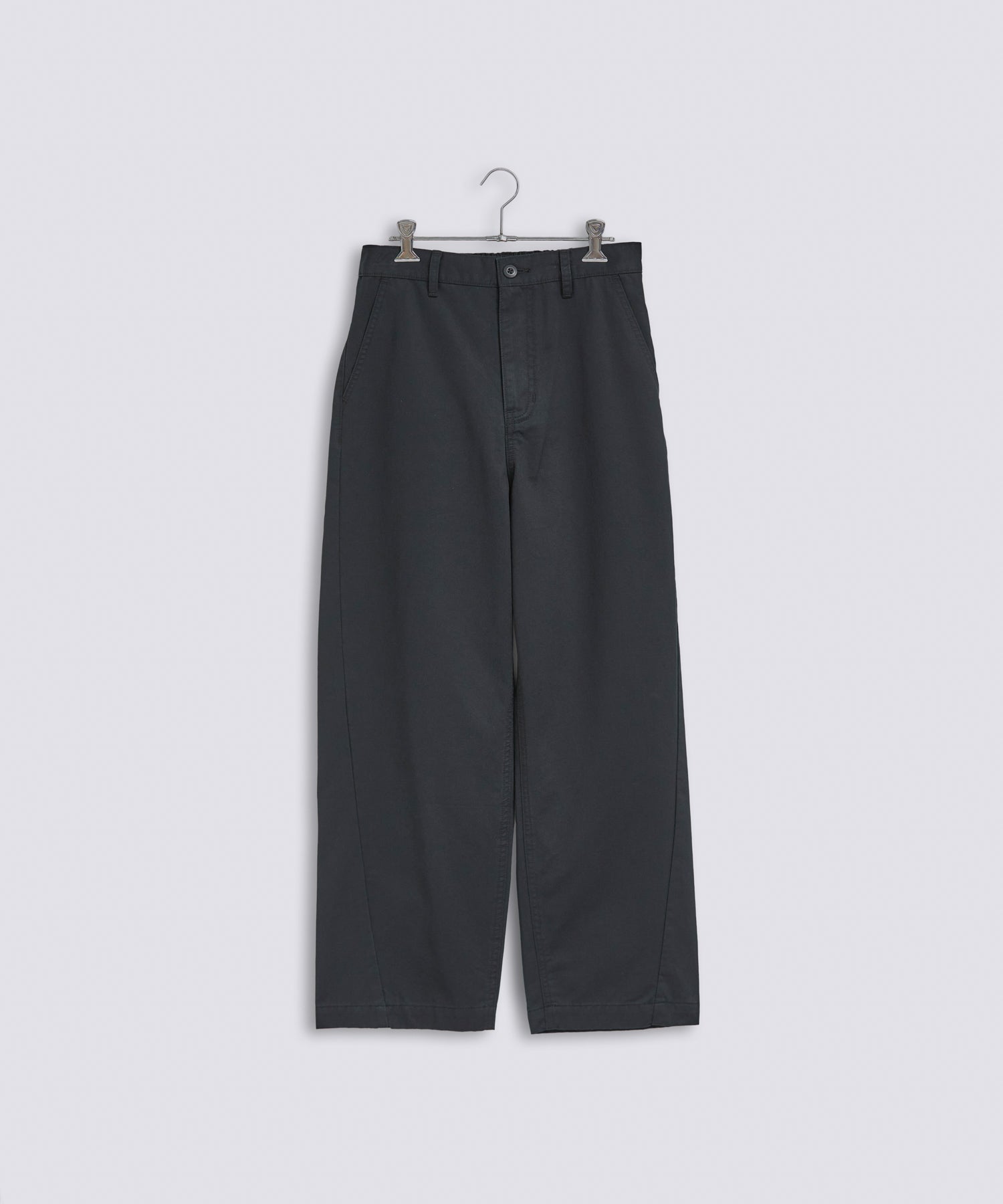すっきりとしたシルエットですが、サイジングはゆとりを持たせ、後ろウエストはゴムで、イージーな履き心地を実現。